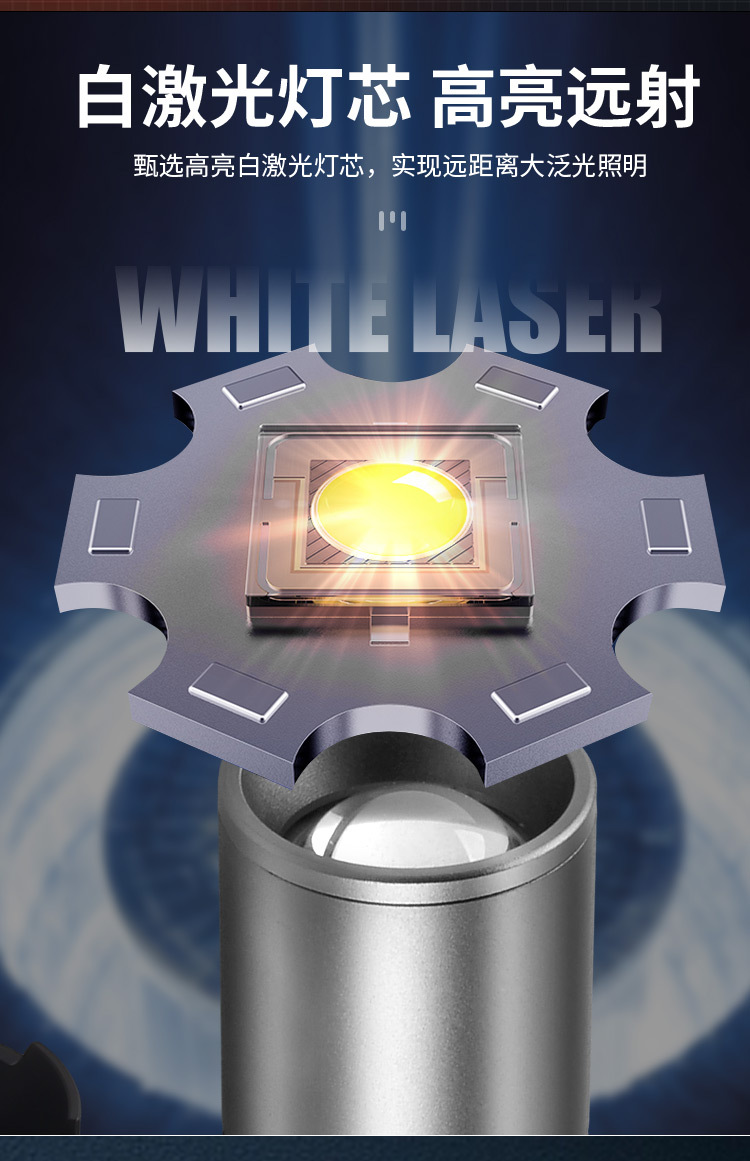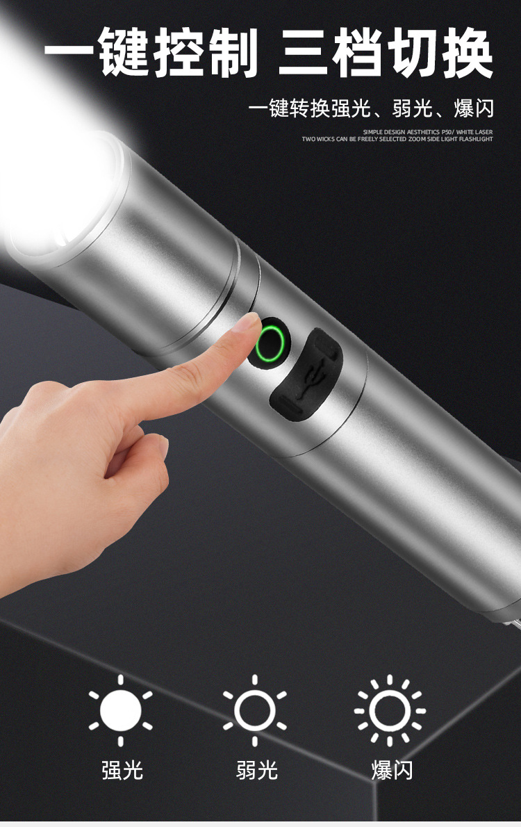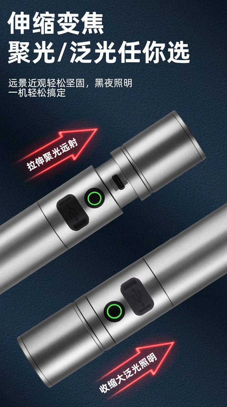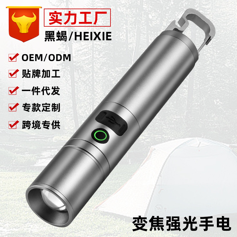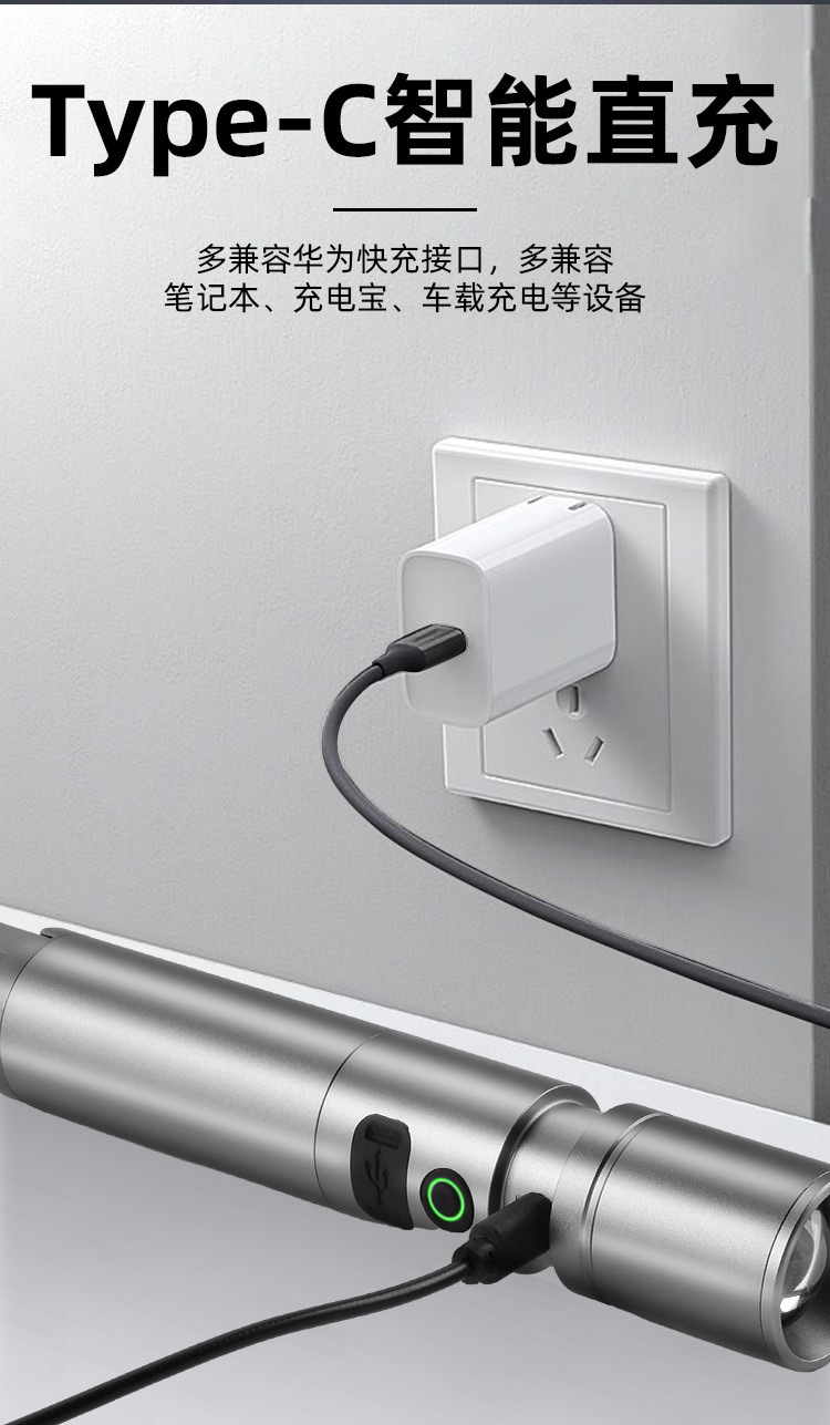 국경을 넘는 신제품 LED 화이트 집광 손전등 타입-C 충전 알루미늄 합금 텔레스코픽 줌 기능 인기 야외 손전등스토어 가기