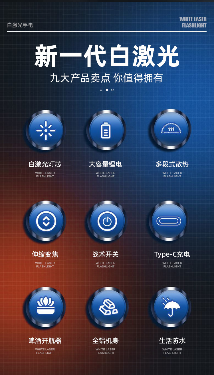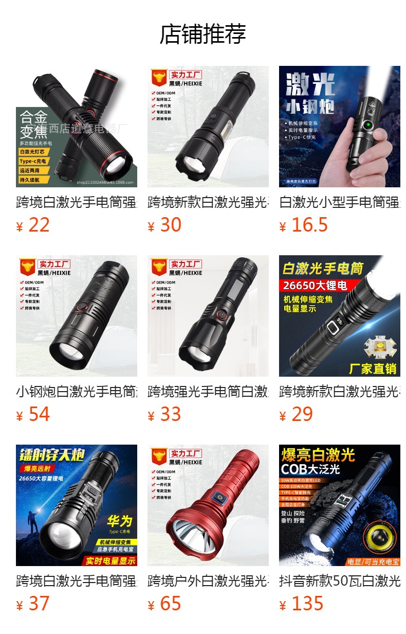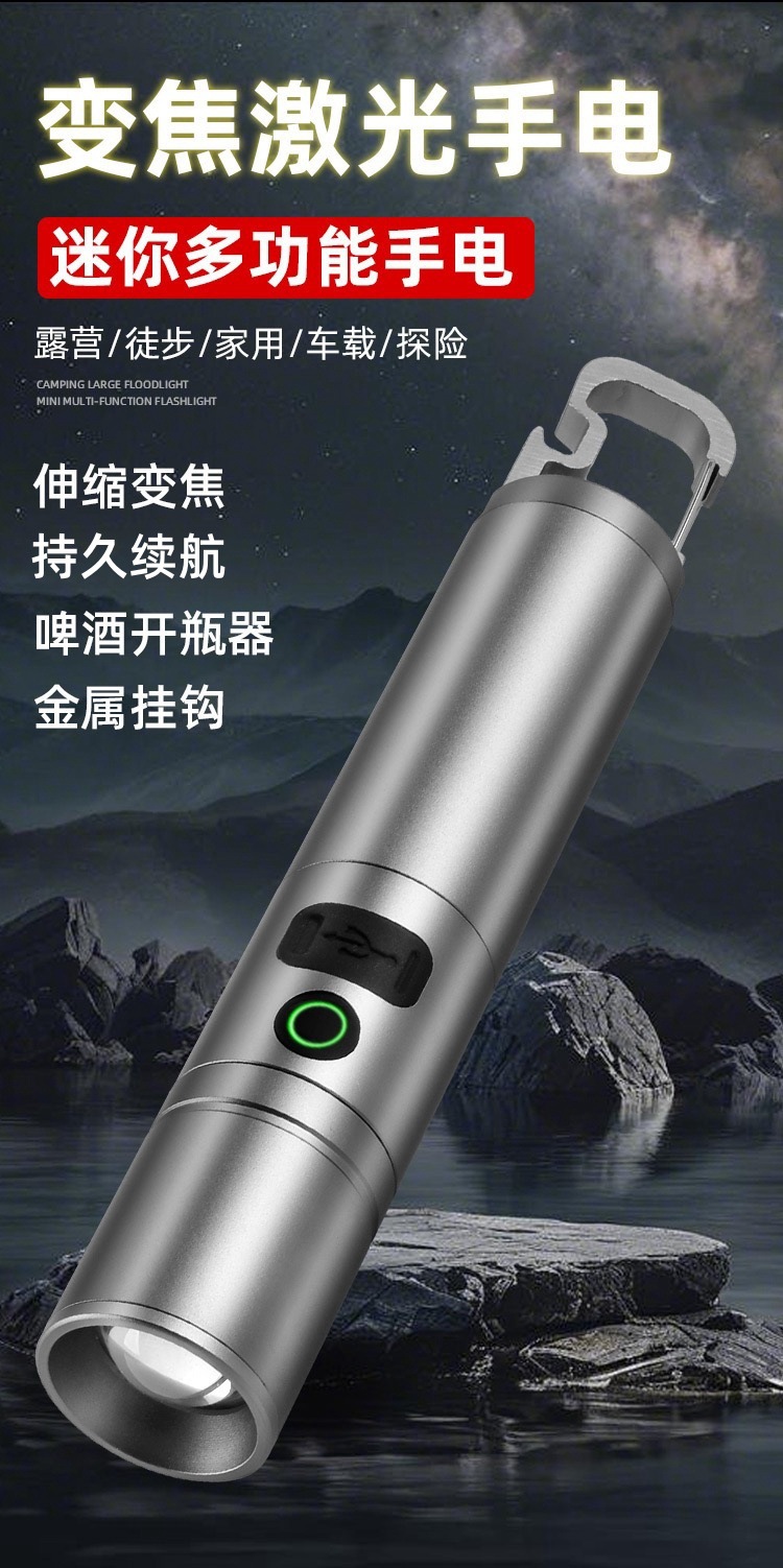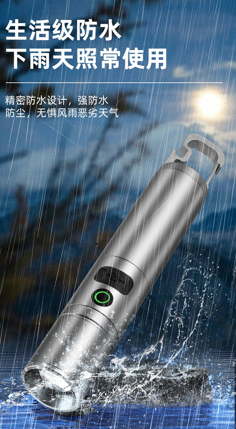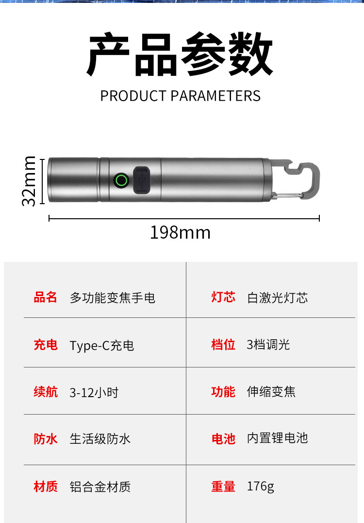 국경을 넘는 신제품 LED 화이트 집광 손전등 타입-C 충전 알루미늄 합금 텔레스코픽 줌 기능 인기 야외 손전등스토어 가기