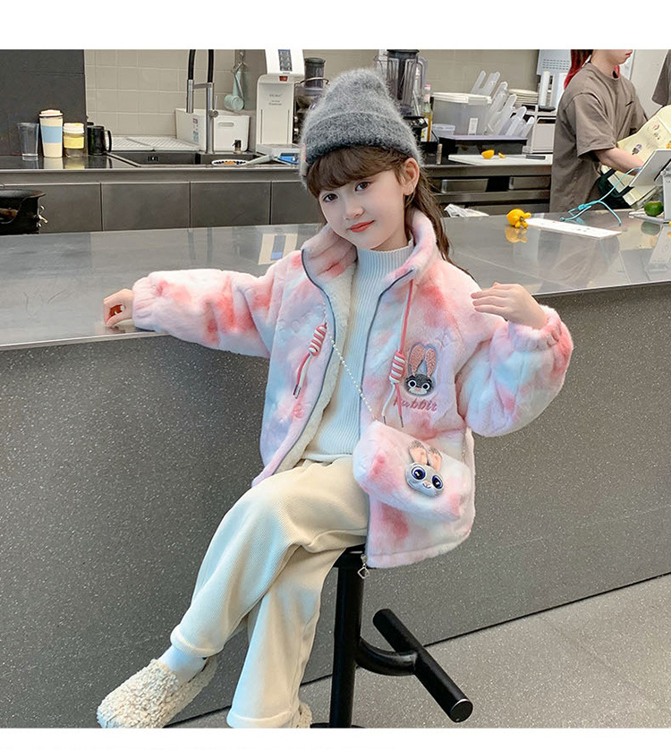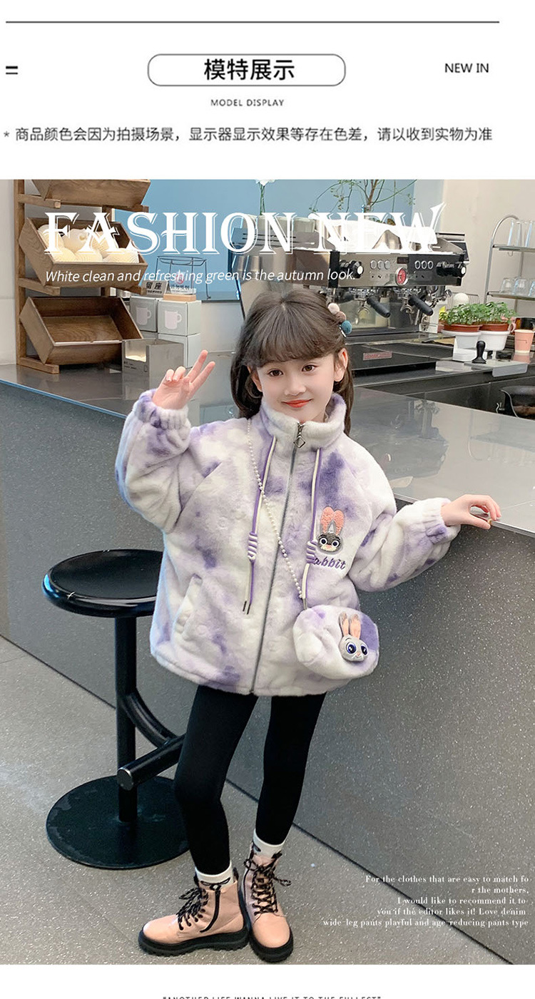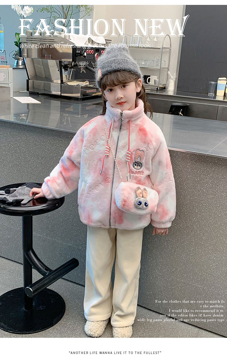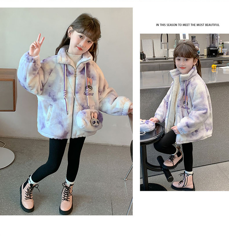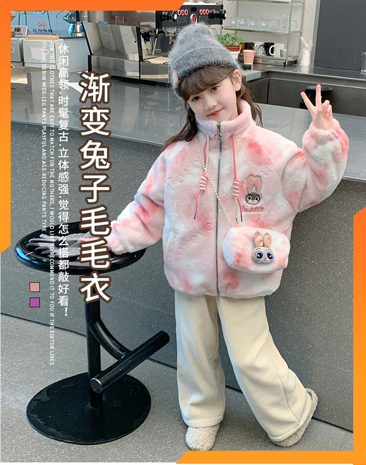 소녀 겨울 코트 2024 새로운 어린이 서양식 기모 두꺼운 모직 스웨터 소녀의 가을과 겨울 그라디언트 탑스토어 가기