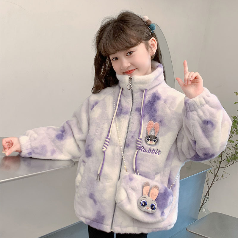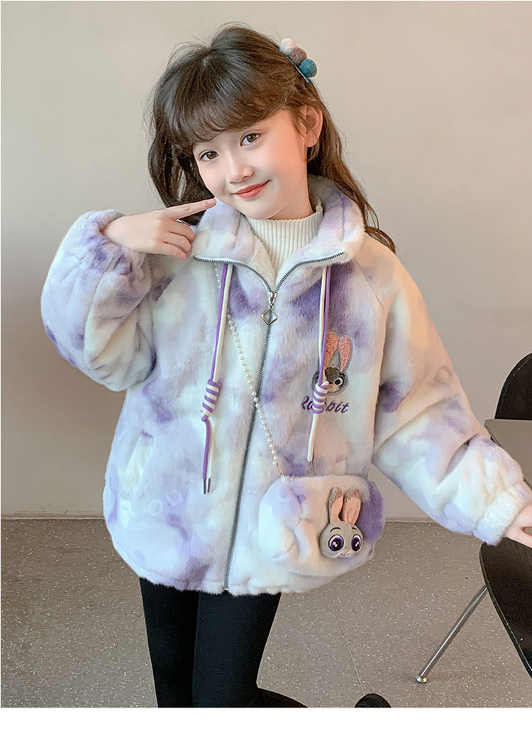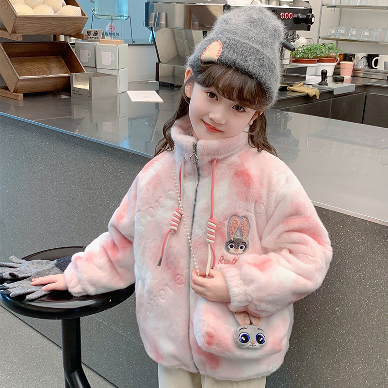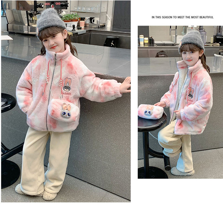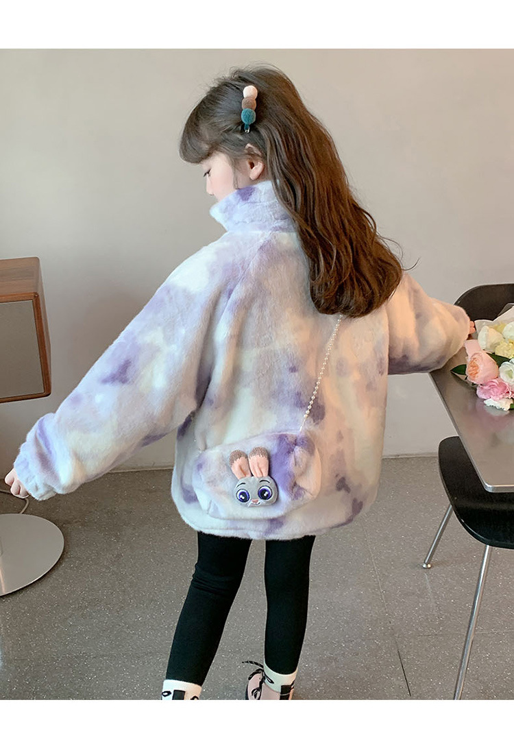 소녀 겨울 코트 2024 새로운 어린이 서양식 기모 두꺼운 모직 스웨터 소녀의 가을과 겨울 그라디언트 탑스토어 가기