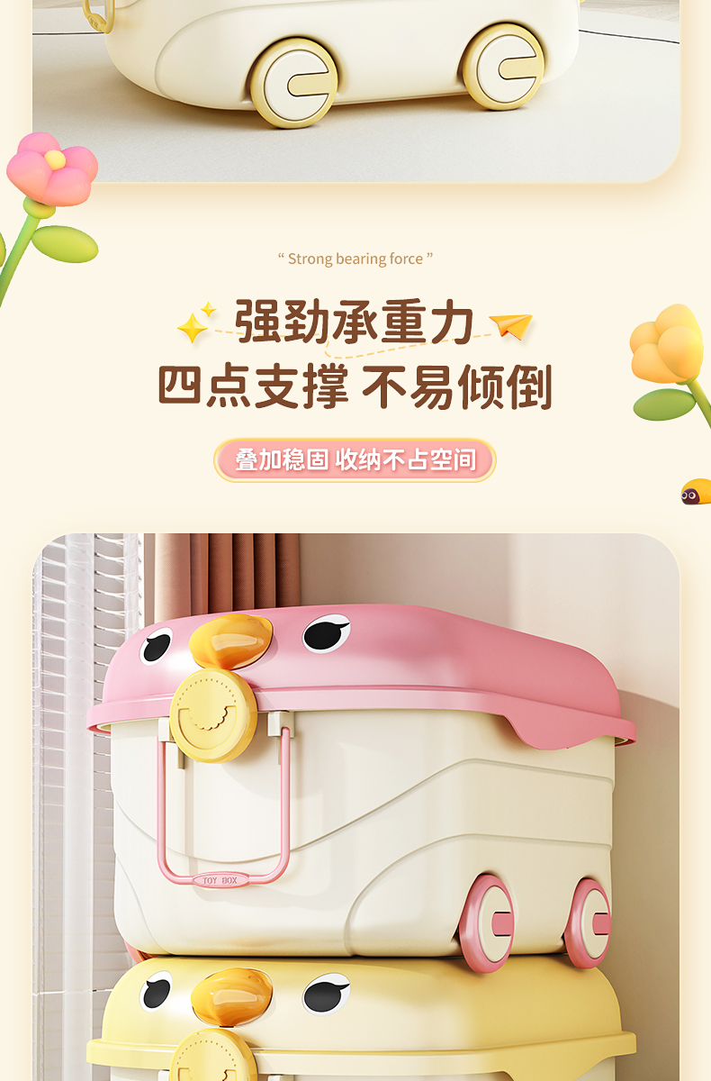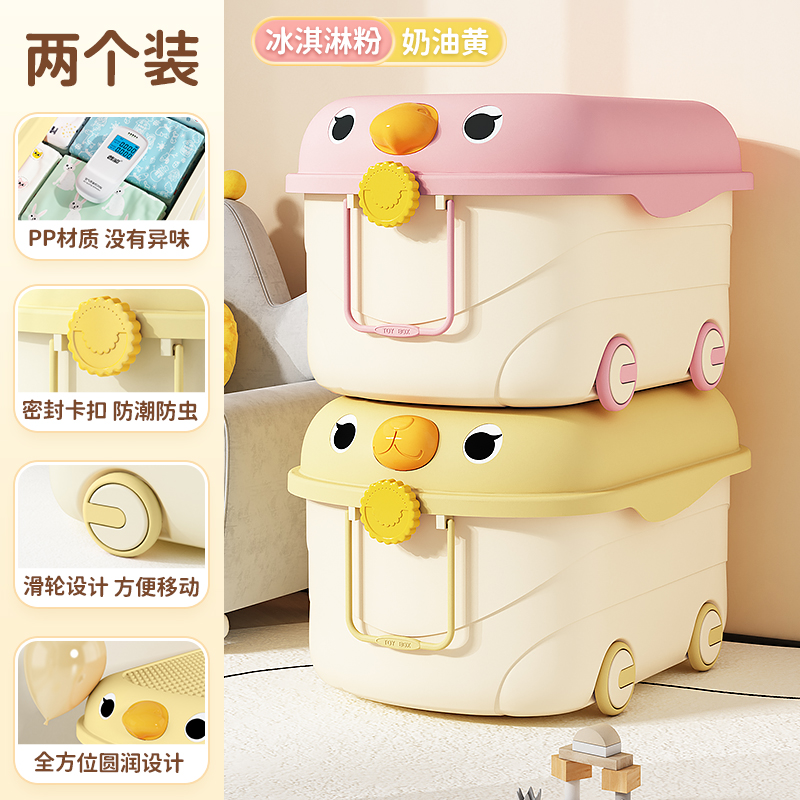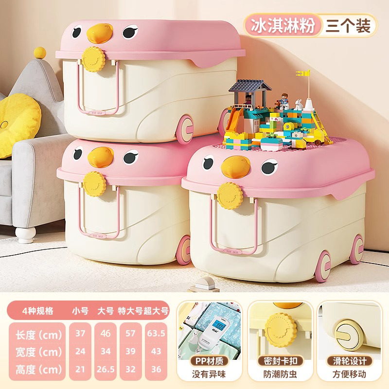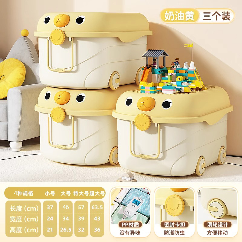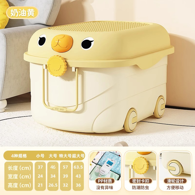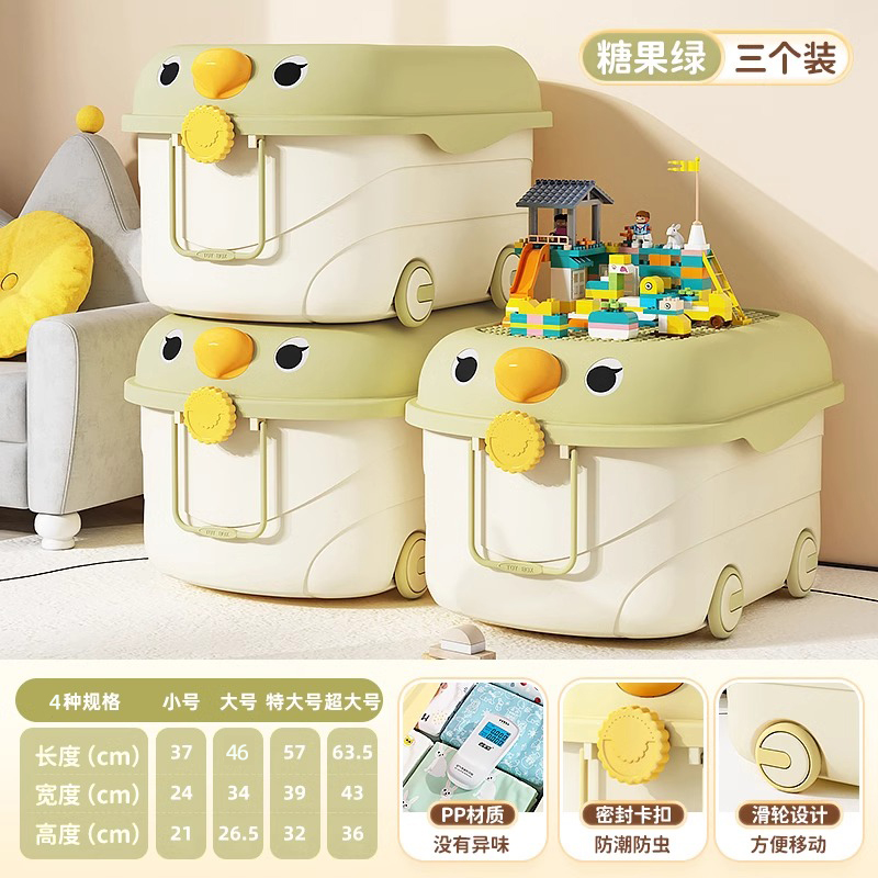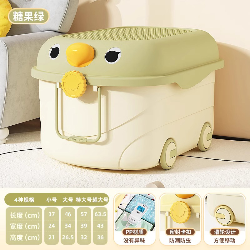 어린이 장난감 보관 상자 가정용 대용량 아기 옷 스낵 도서 보관 상자 슬라이드 휠 포함