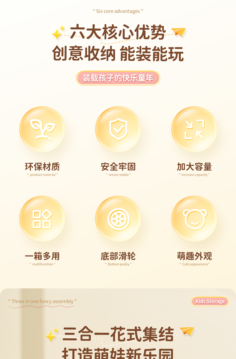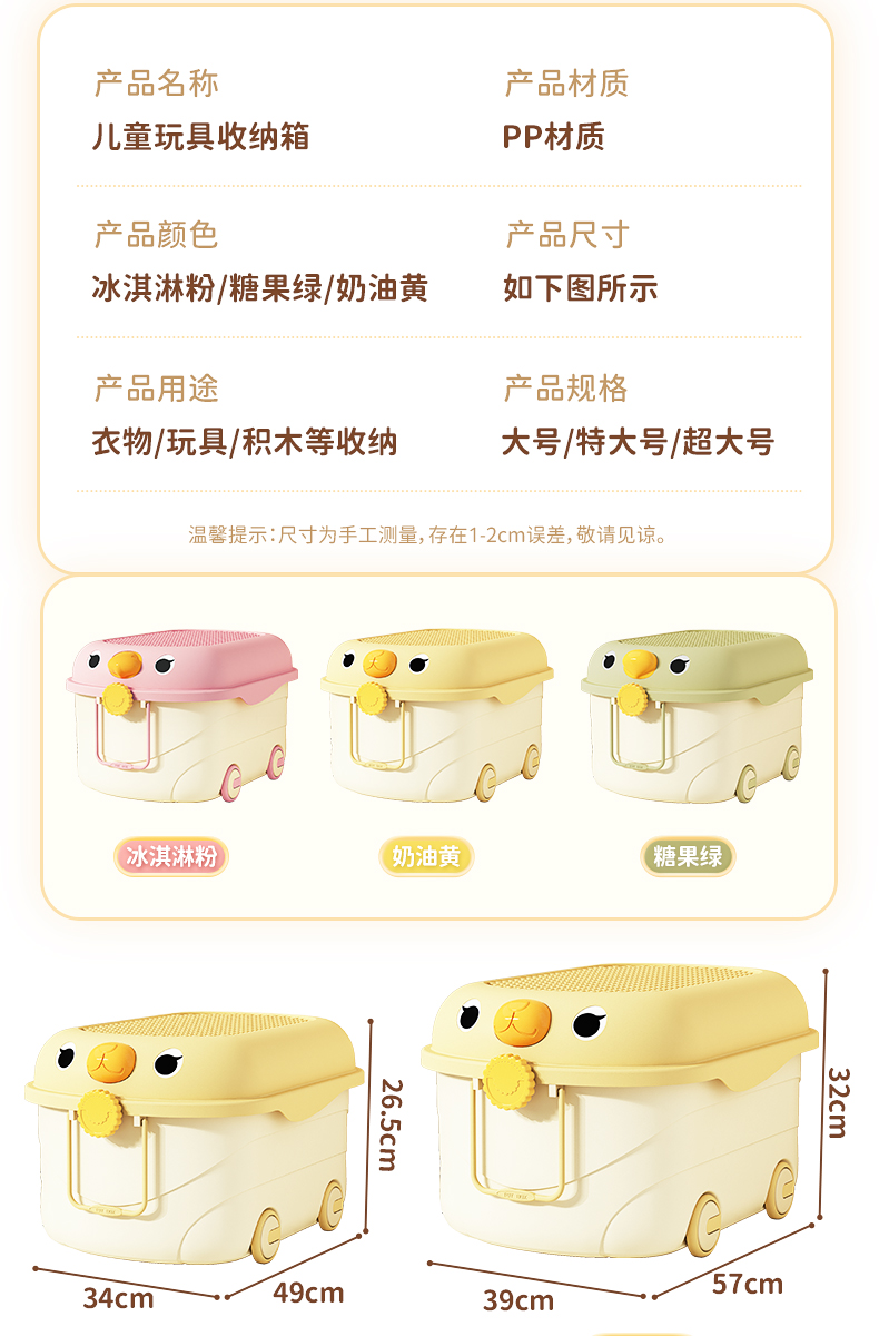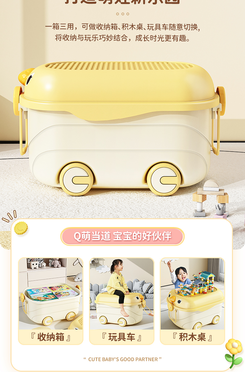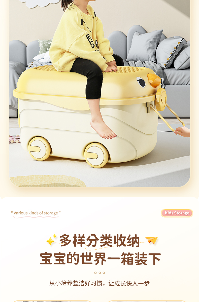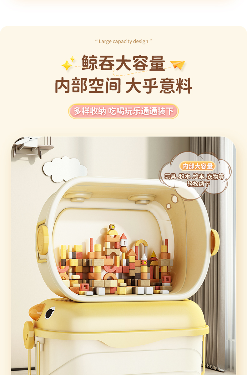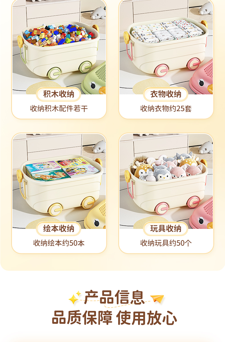 어린이 장난감 보관 상자 가정용 대용량 아기 옷 스낵 도서 보관 상자 슬라이드 휠 포함