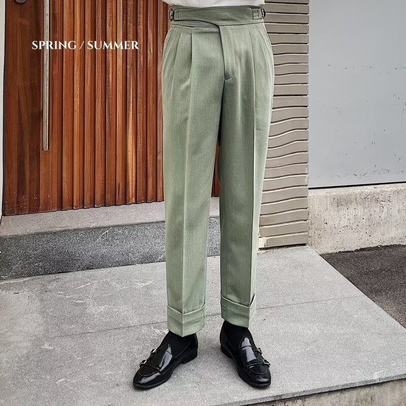 버클 웨이스트와 함께 이탈리아 남자 나폴리 바지 파리 직선 바지