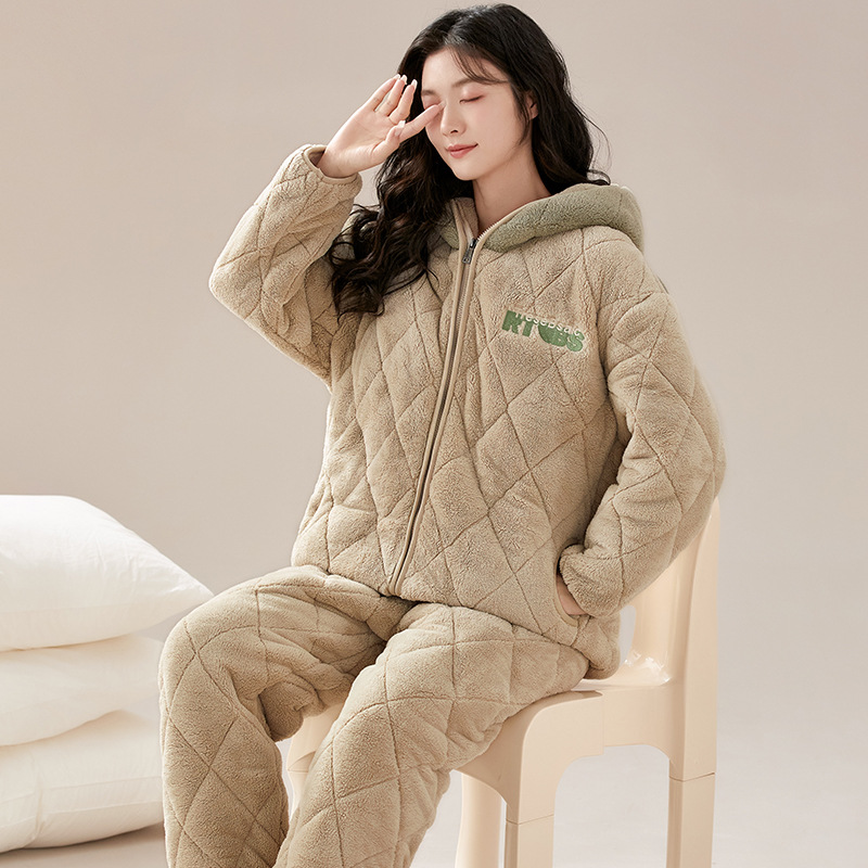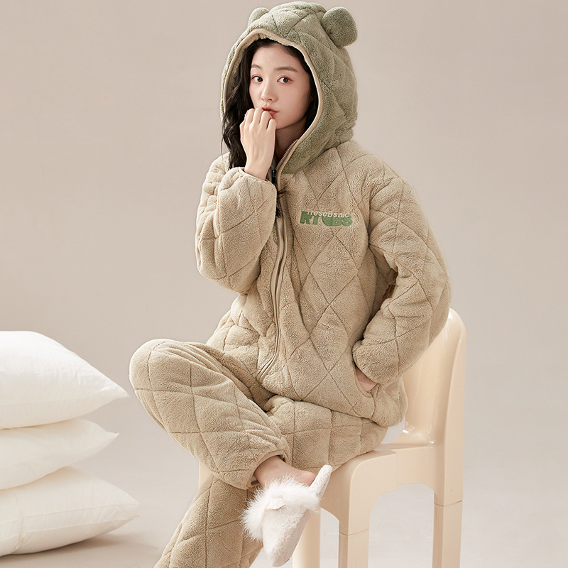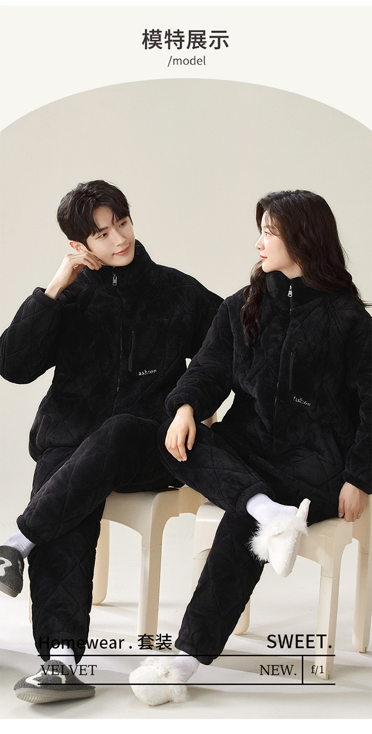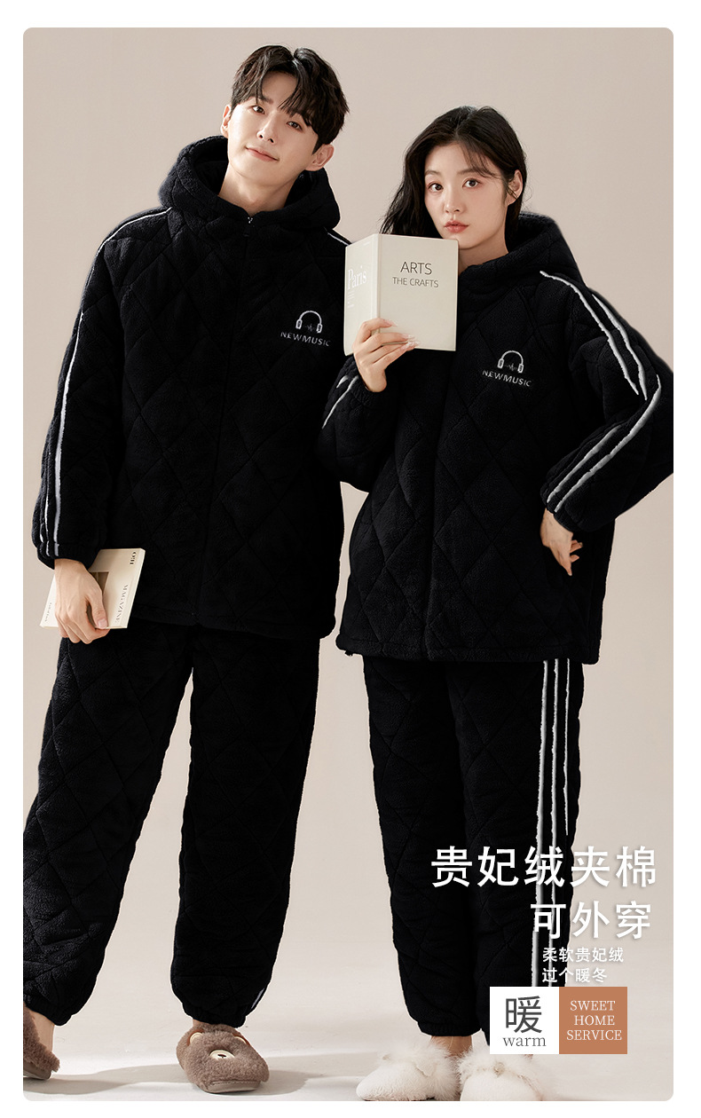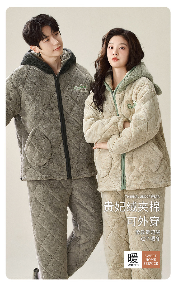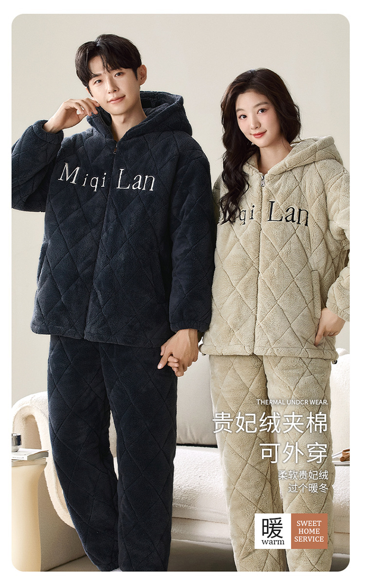 잠옷 여자 겨울 산호 양털 재킷 남자 3 층 두꺼운 기모 후드 따뜻한 커플의 홈 옷 세트스토어 가기