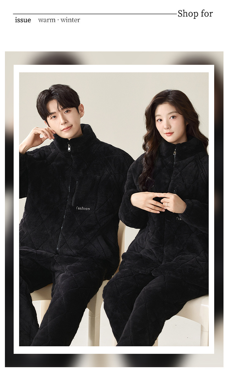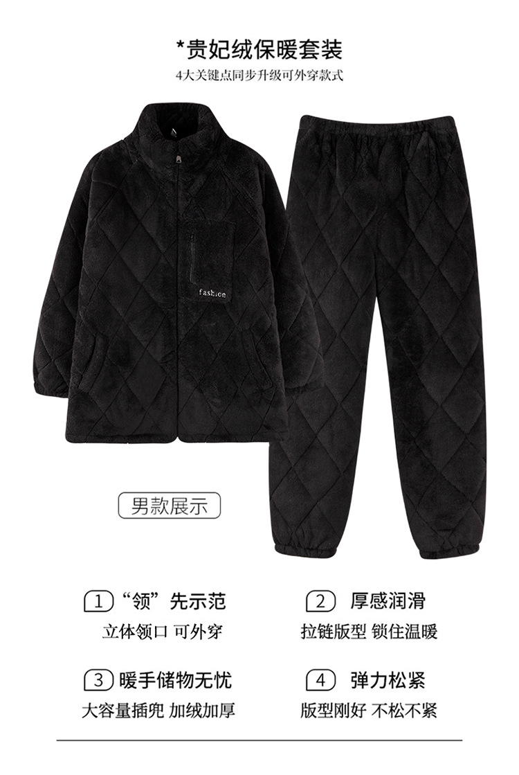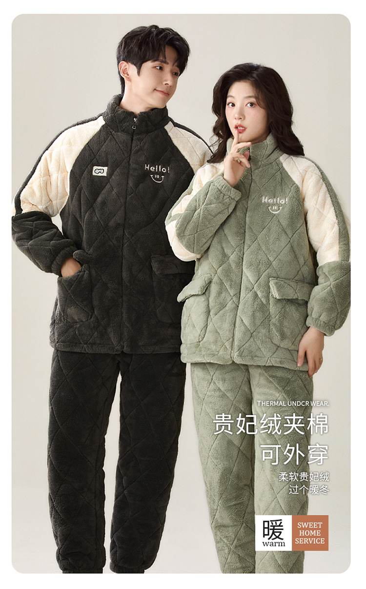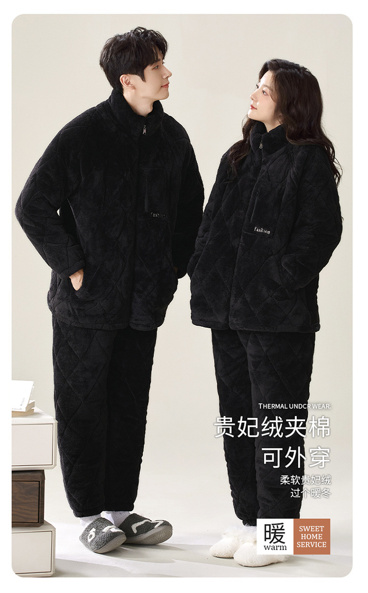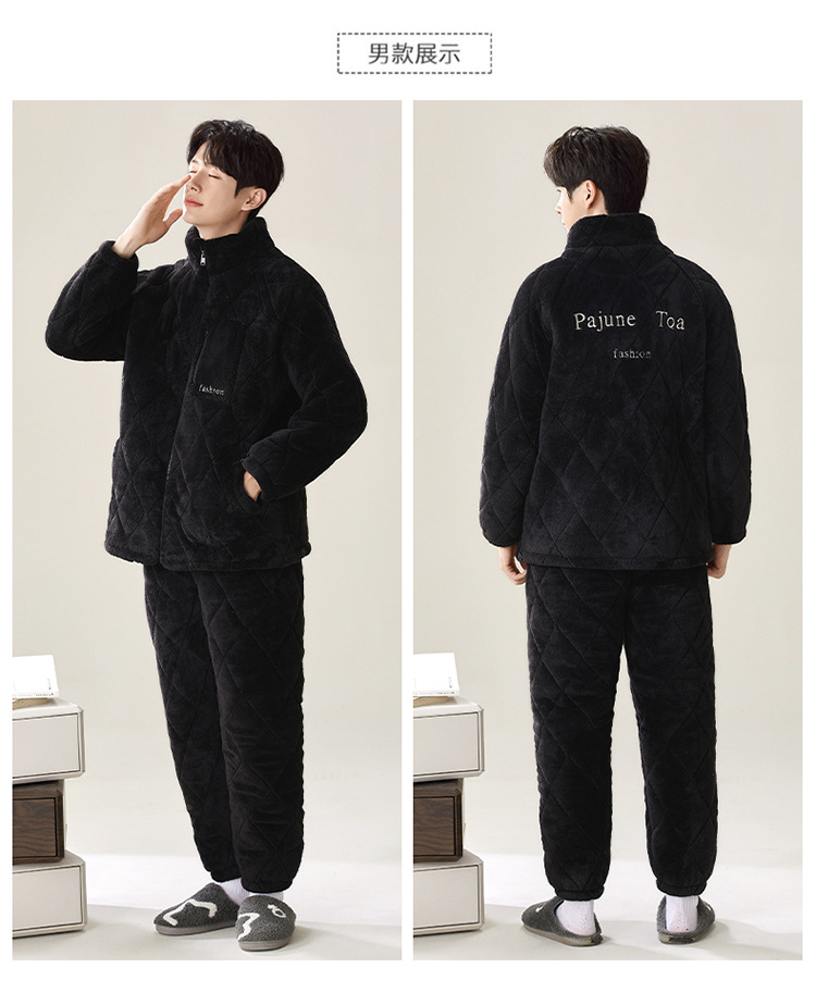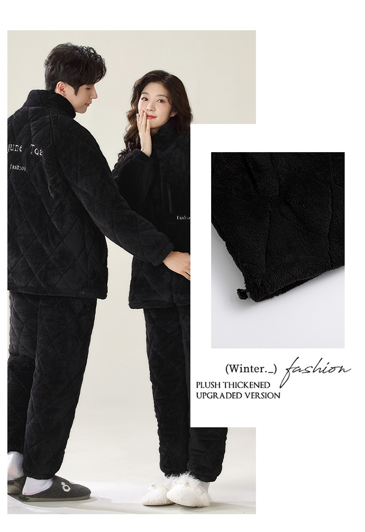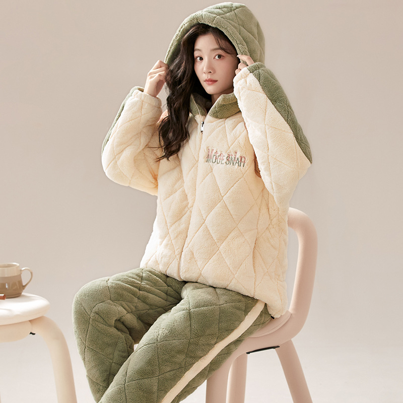 잠옷 여자 겨울 산호 양털 재킷 남자 3 층 두꺼운 기모 후드 따뜻한 커플의 홈 옷 세트스토어 가기