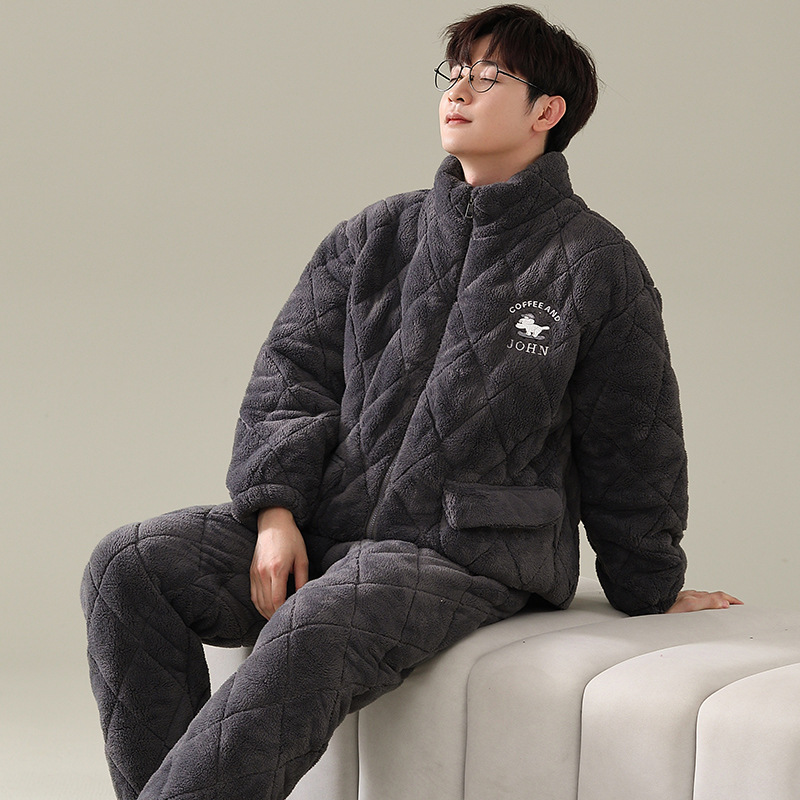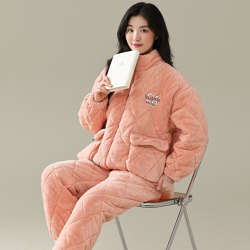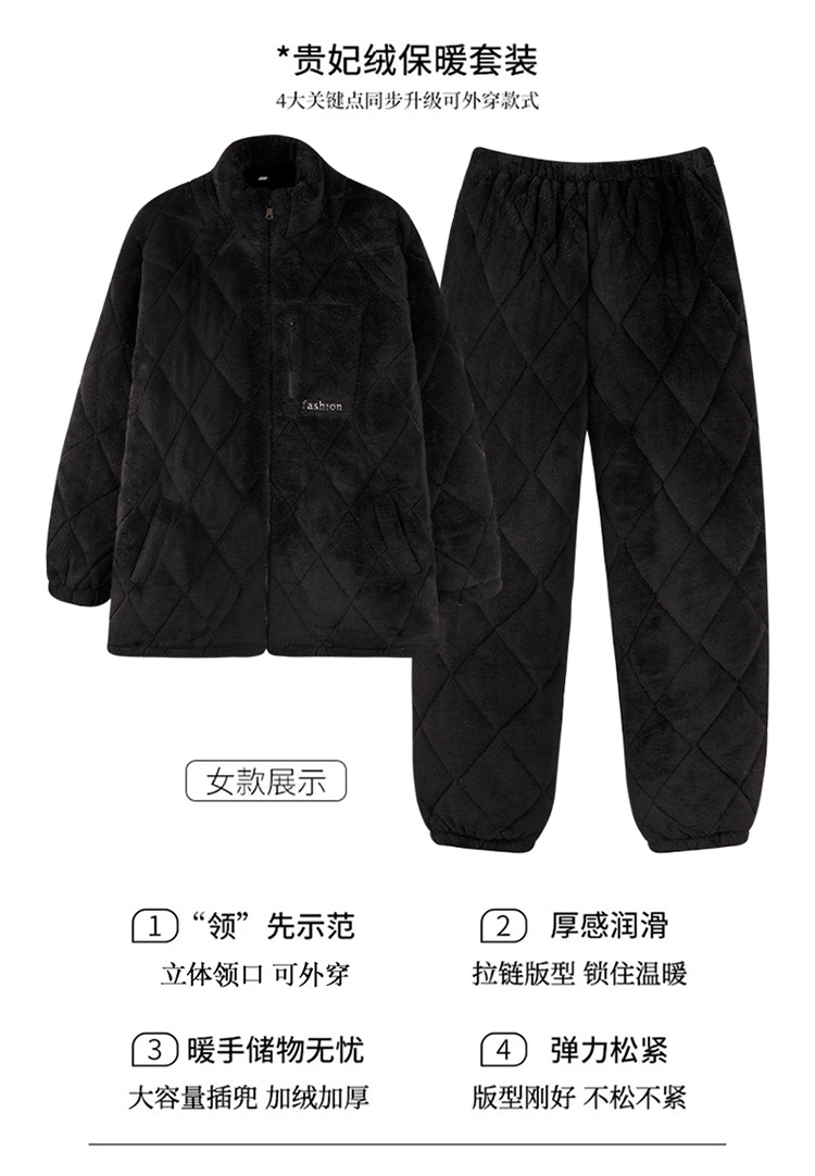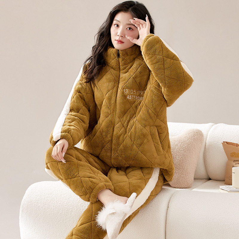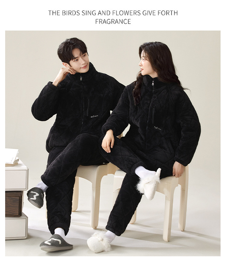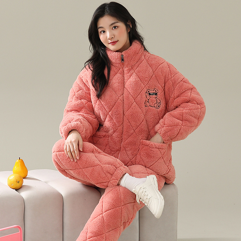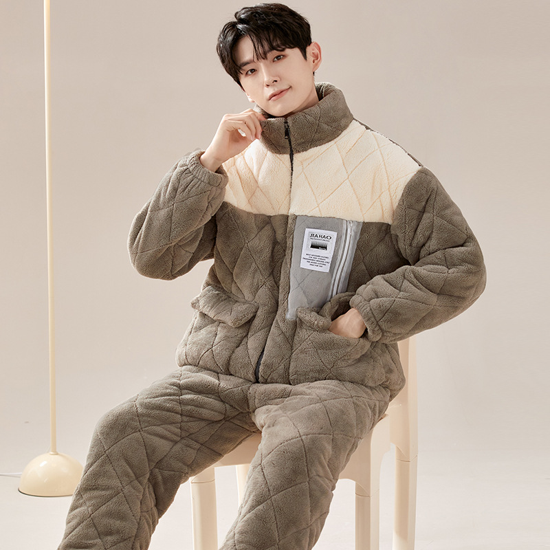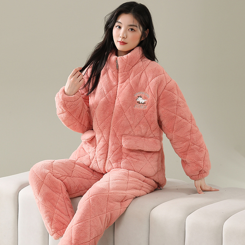 잠옷 여자 겨울 산호 양털 재킷 남자 3 층 두꺼운 기모 후드 따뜻한 커플의 홈 옷 세트스토어 가기
