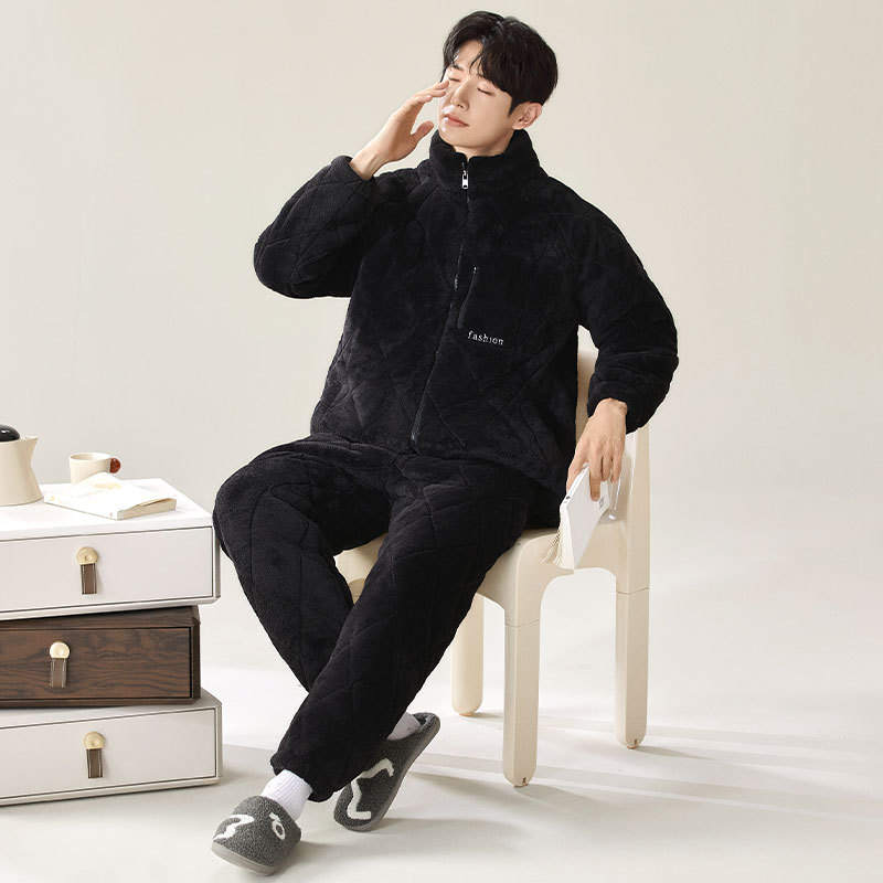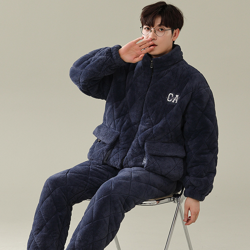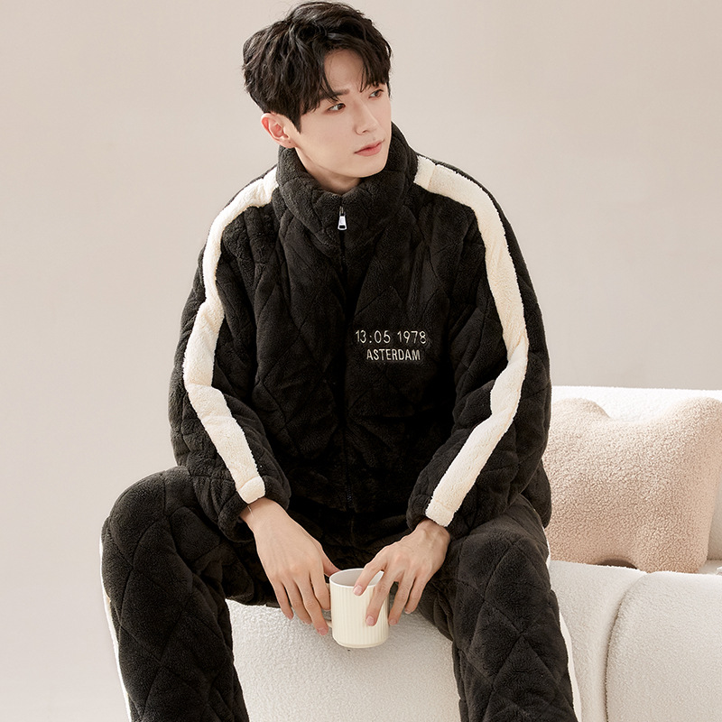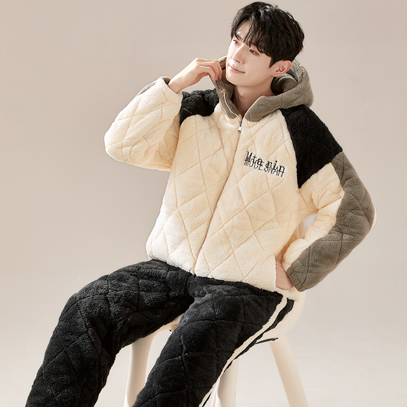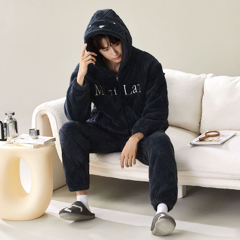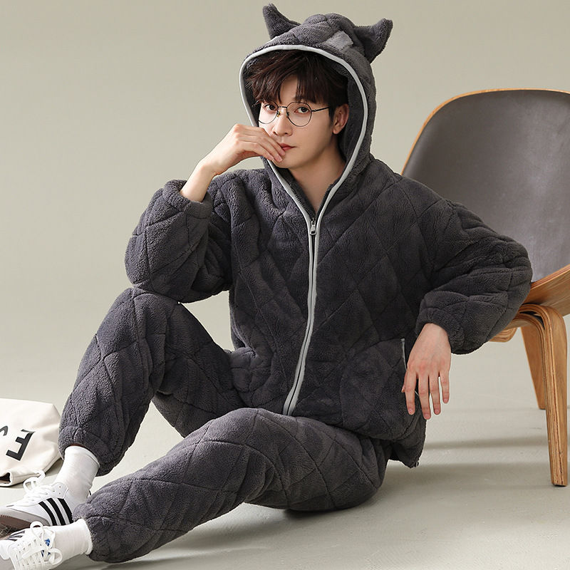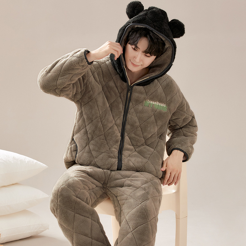 잠옷 여자 겨울 산호 양털 재킷 남자 3 층 두꺼운 기모 후드 따뜻한 커플의 홈 옷 세트