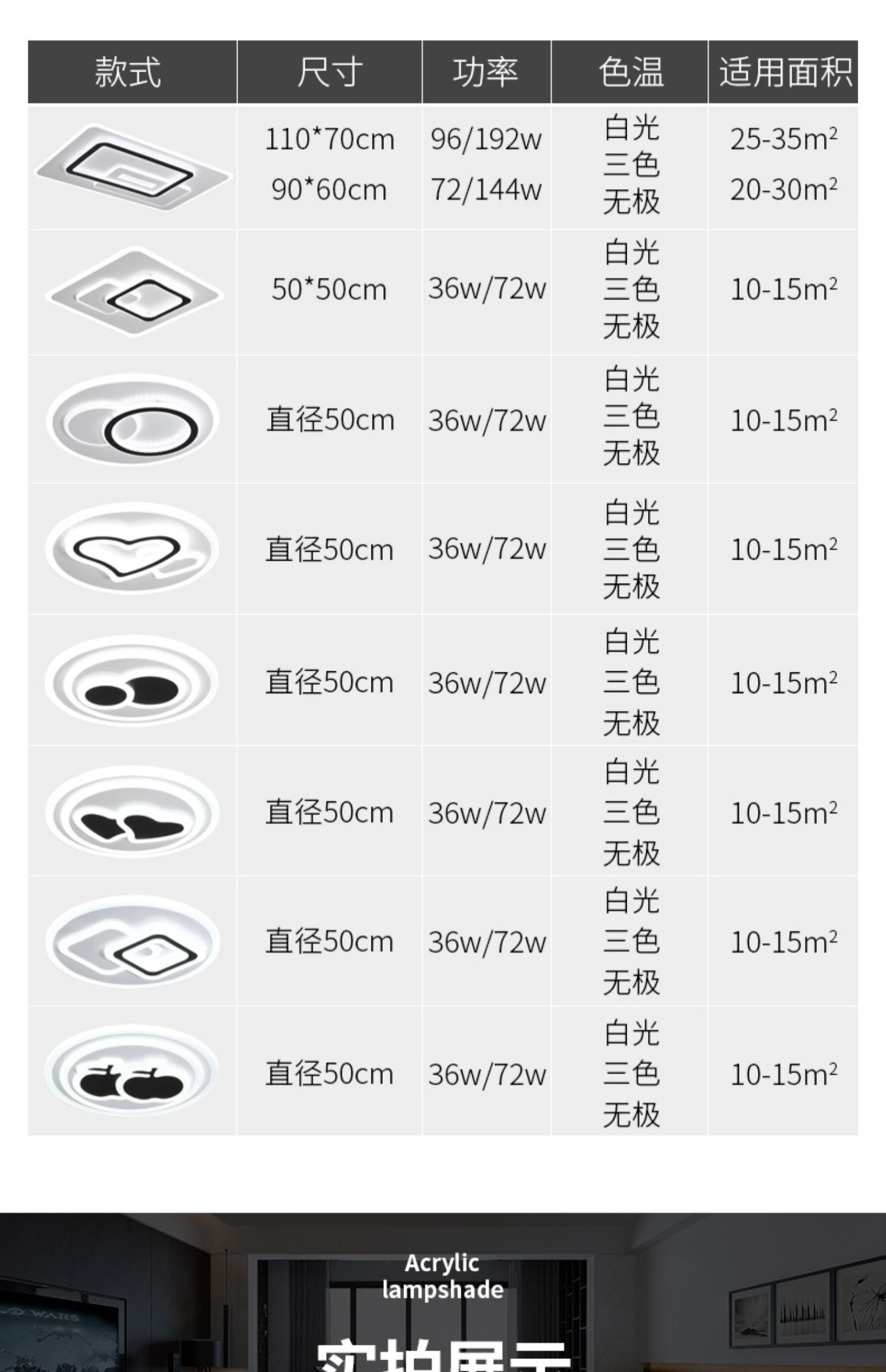 • 长菱形110*70cm三色变光✦