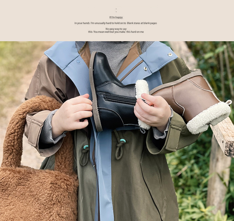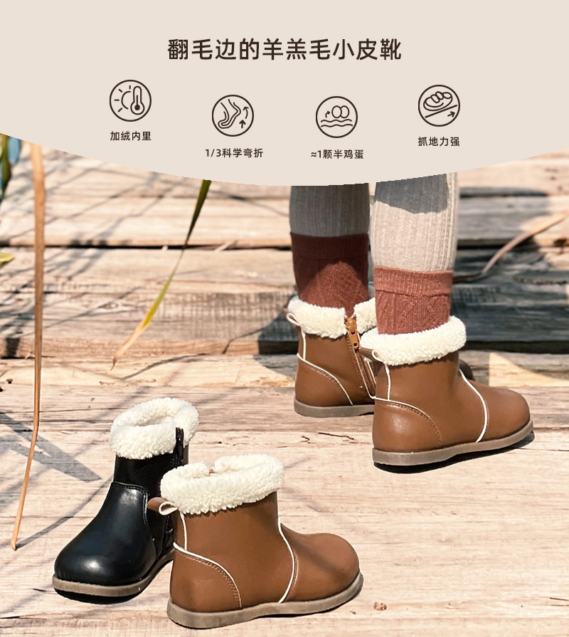 TS 정품 어린이 기모 마틴 부츠 겨울 코튼 부츠 부드러운 단독 아기 양고기 모피 가죽 부츠 1326