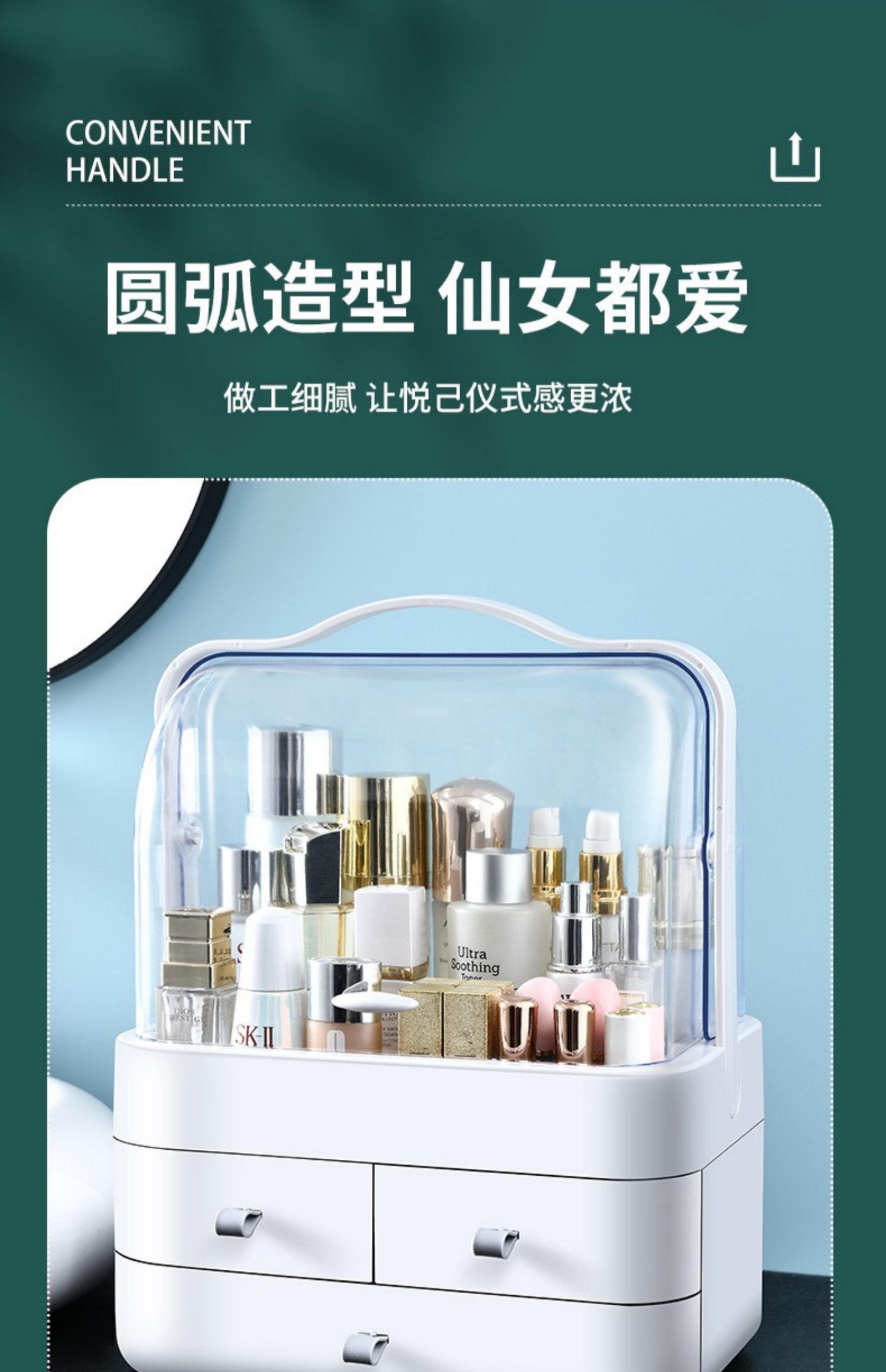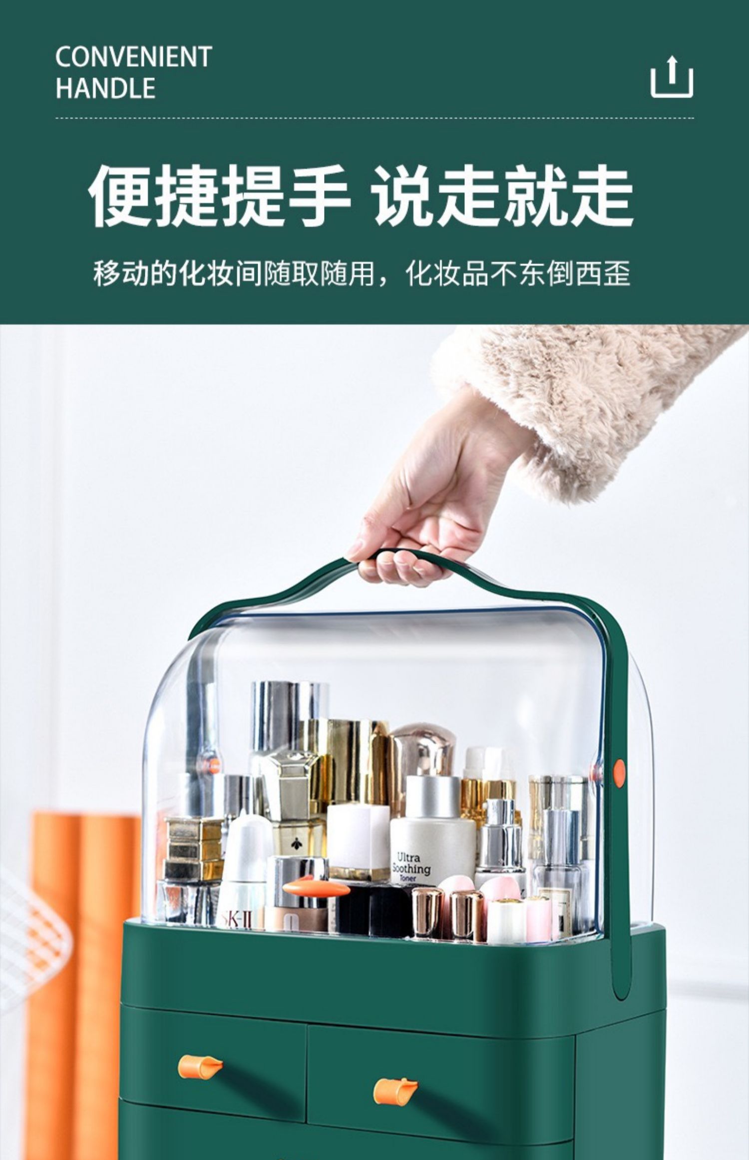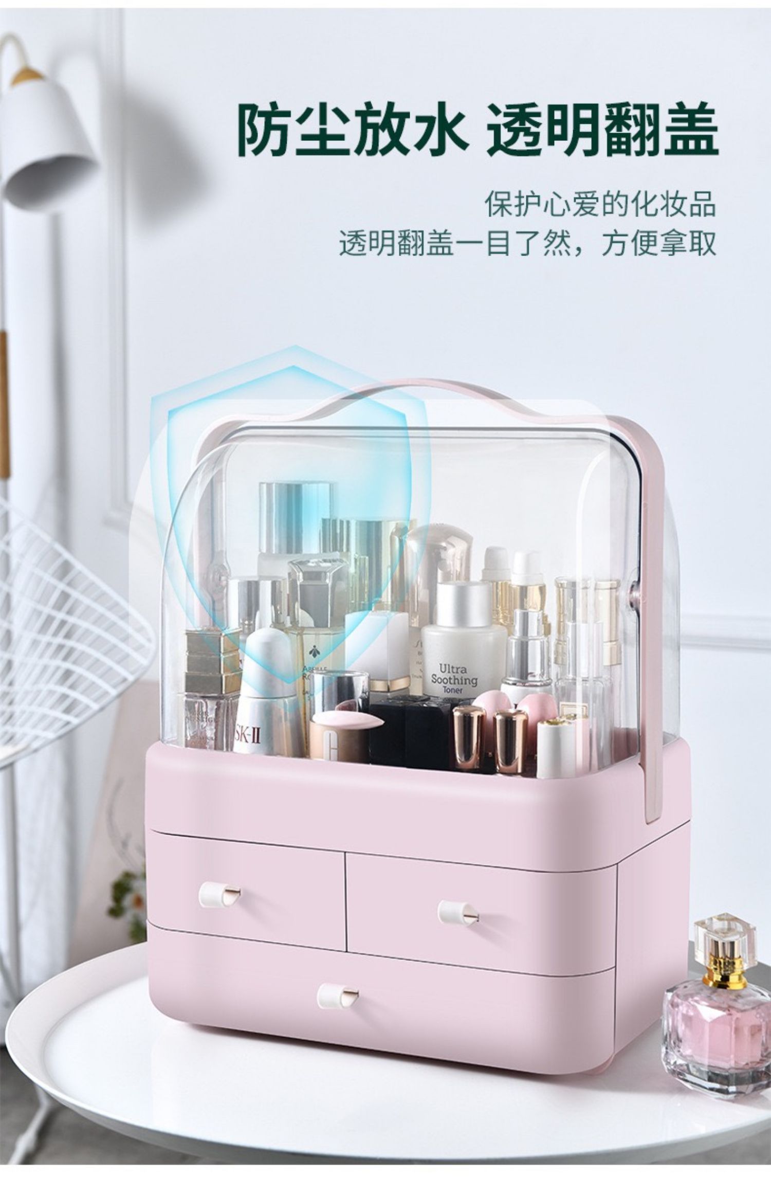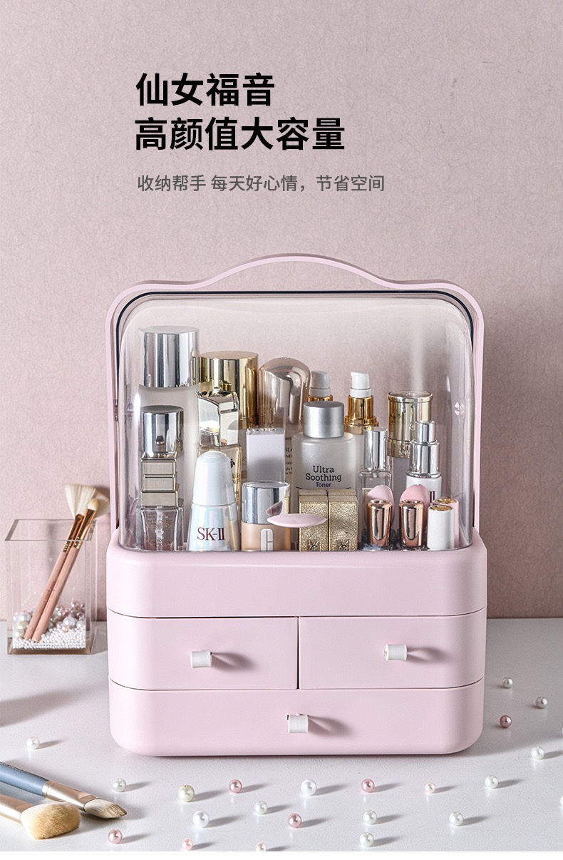 网红防尘化妆品收纳盒置物架桌面护肤品口红梳妆台手提宿舍大满和