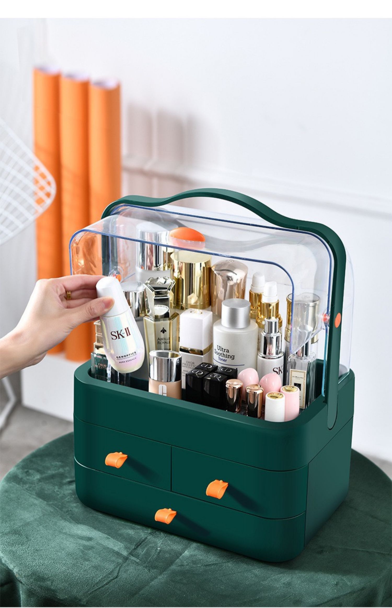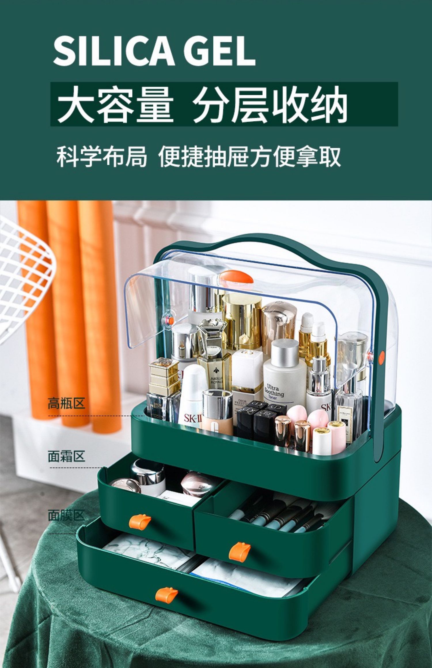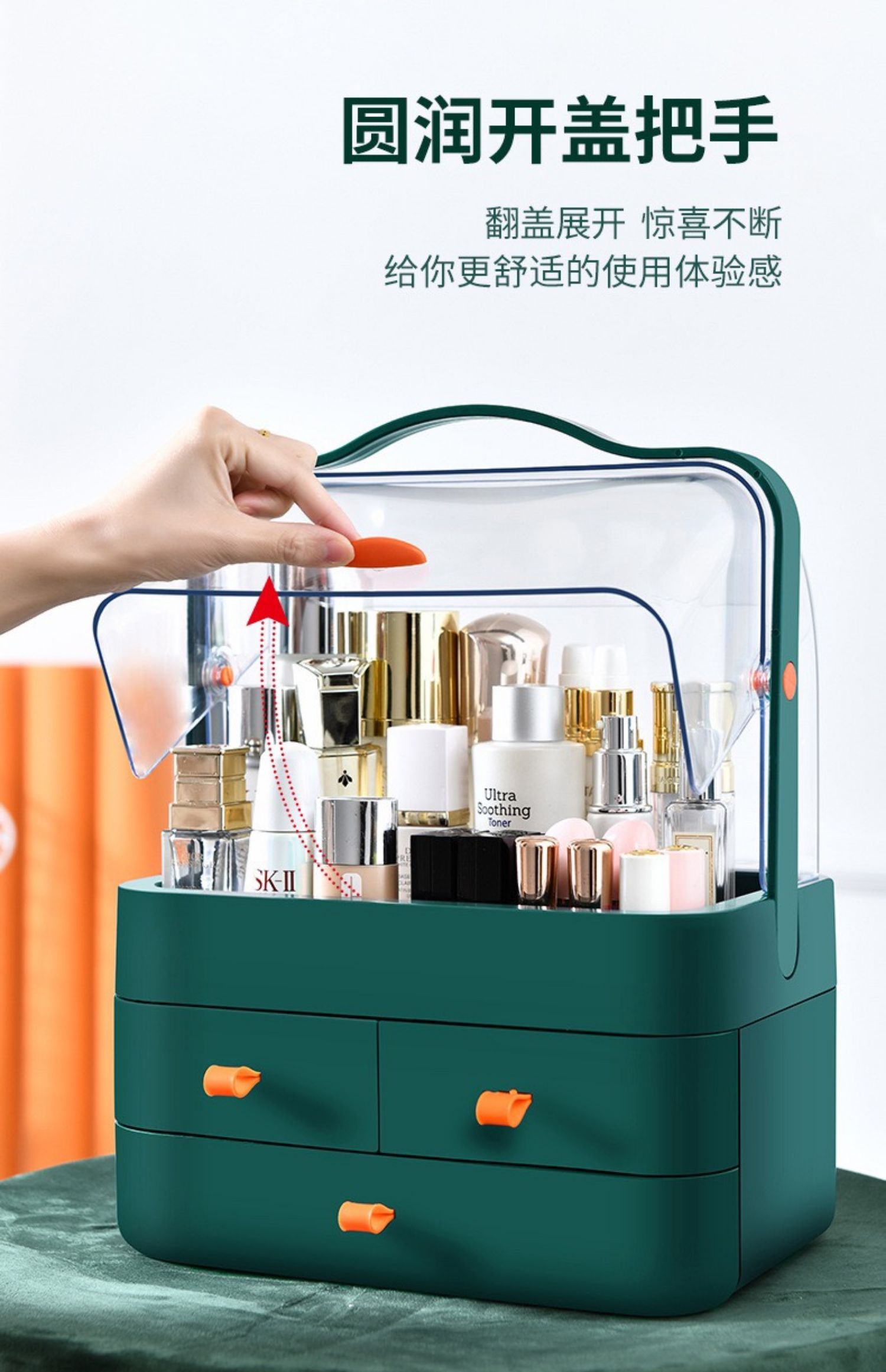 网红防尘化妆品收纳盒置物架桌面护肤品口红梳妆台手提宿舍大满和