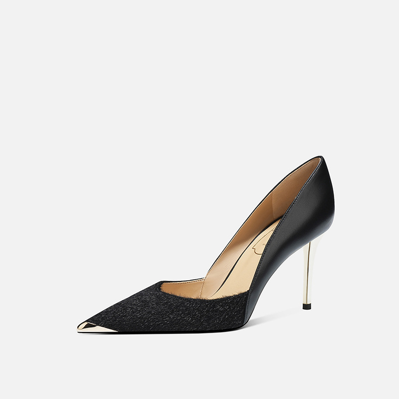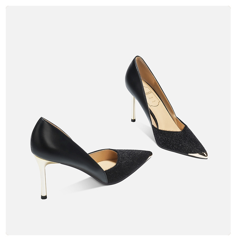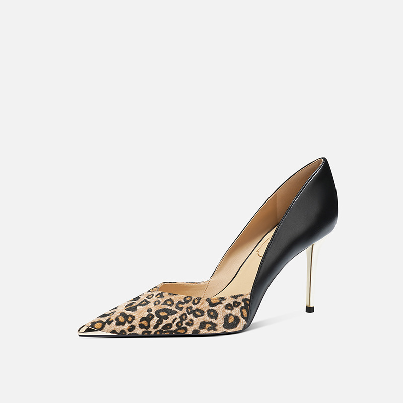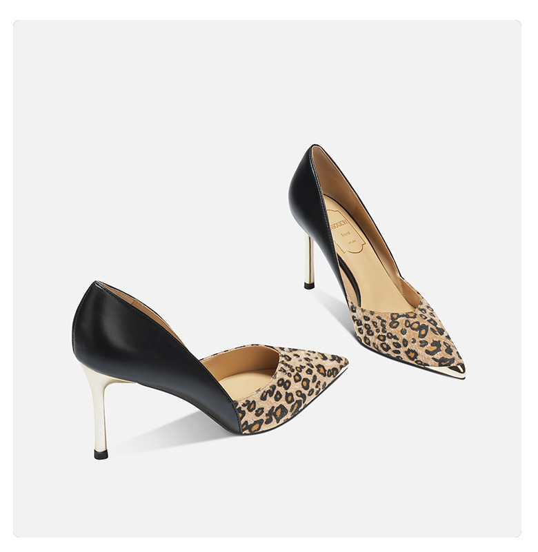 708-C70 표범 말 머리 바느질 하이힐 여성의 새로운 뾰족한 스틸레토 힐 우아한 섹시한 틈새 프랑스 싱글 신발스토어 가기