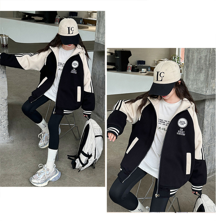소녀 코트 가을과 겨울 서양식 어린이 겨울 두꺼운 스웨터 퀼트 야구 세트 큰 어린이 코트 도매스토어 가기