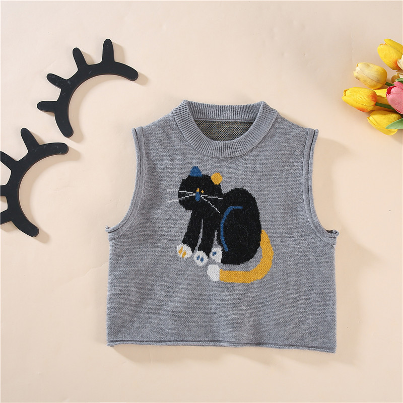• 회색 새끼 고양이 조끼 싱글 피스
