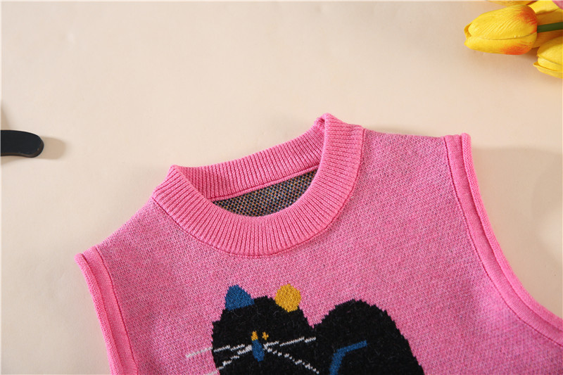 • 핑크 고양이 조끼 싱글 피스