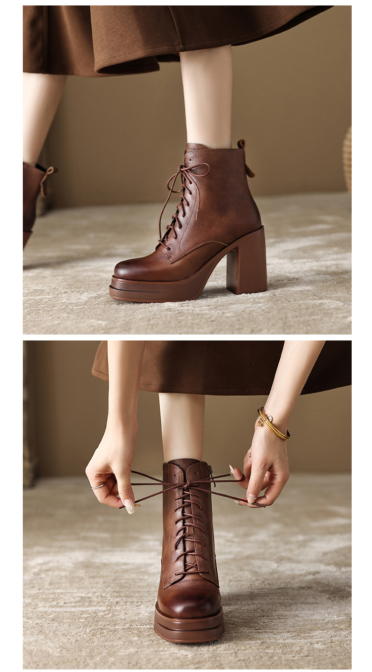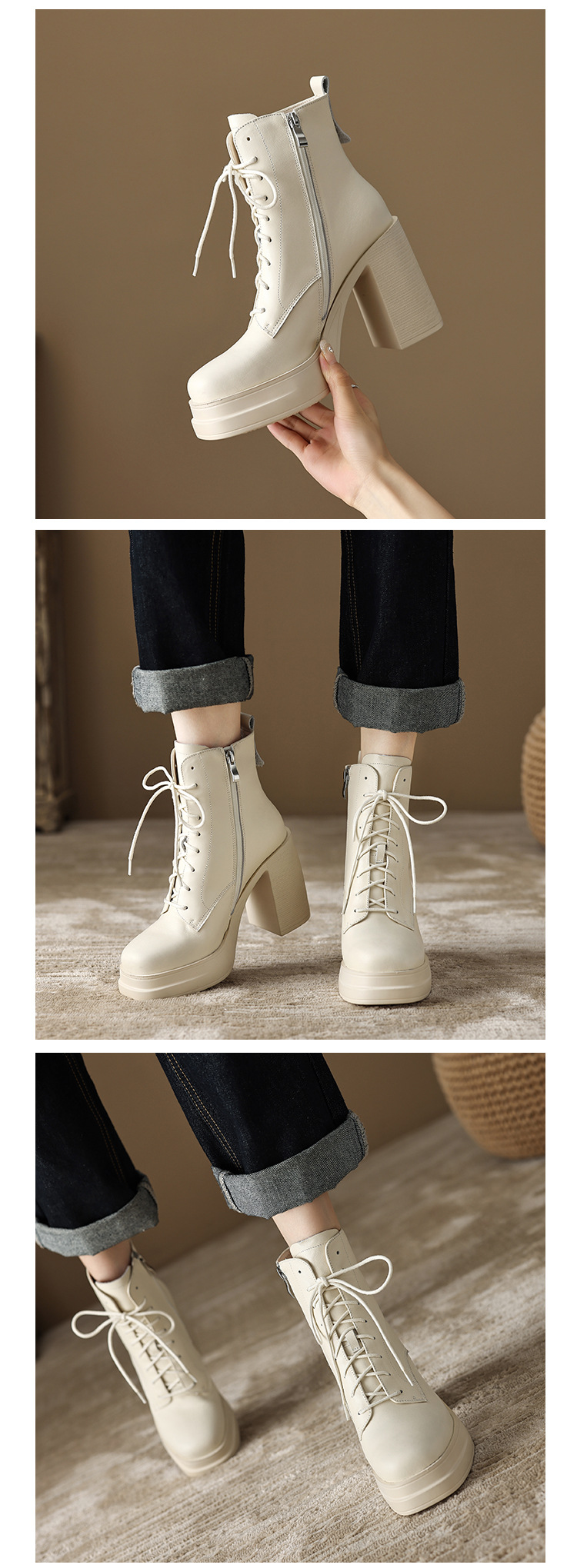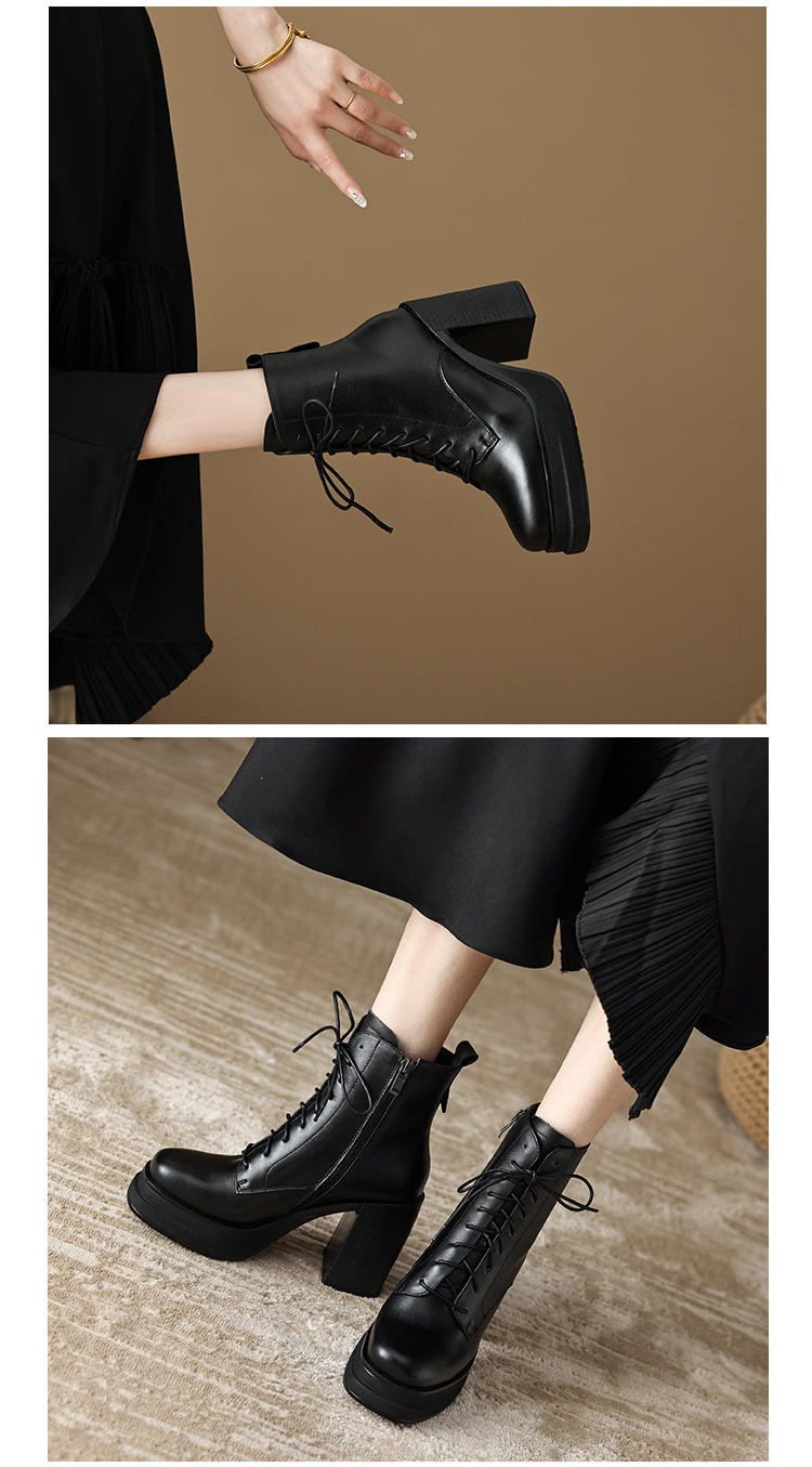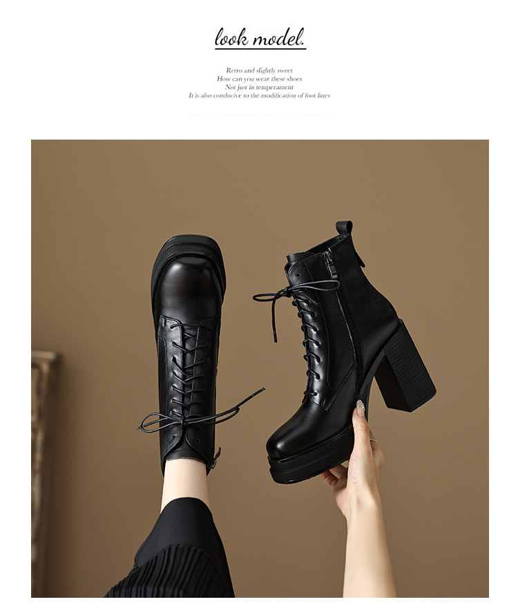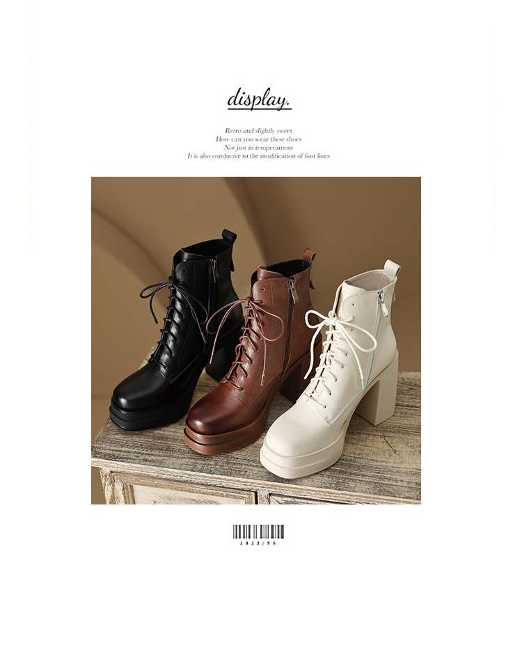 빈티지 심플한 두꺼운 굽 두꺼운 레이스 업 마틴 부츠 2024 새로운 스타일 라이트 성숙한 스타일 슈퍼 하이힐 올 매치 발목 부츠스토어 가기
