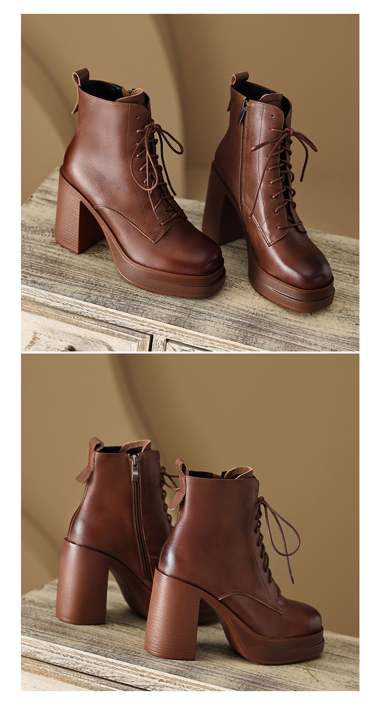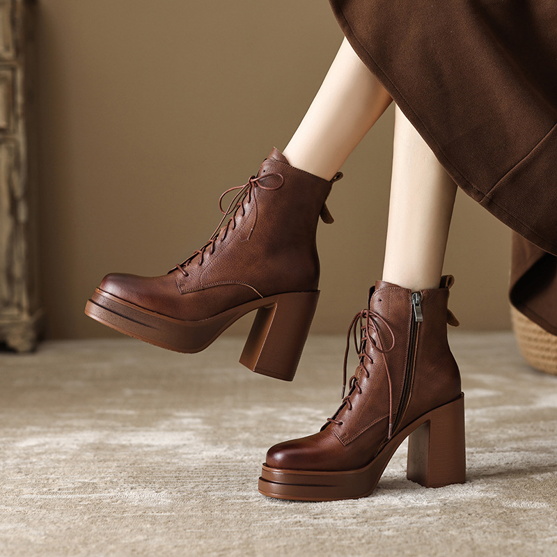 빈티지 심플한 두꺼운 굽 두꺼운 레이스 업 마틴 부츠 2024 새로운 스타일 라이트 성숙한 스타일 슈퍼 하이힐 올 매치 발목 부츠