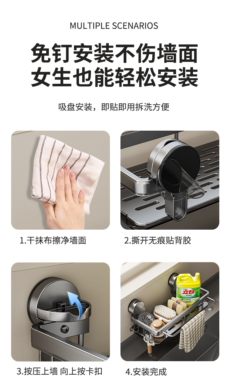 (2)安装请注意,墙面需平整坚固的玻璃瓷砖等。不可用在粉刷墙,墙纸,石灰墙等不平整不坚固的墙面上。