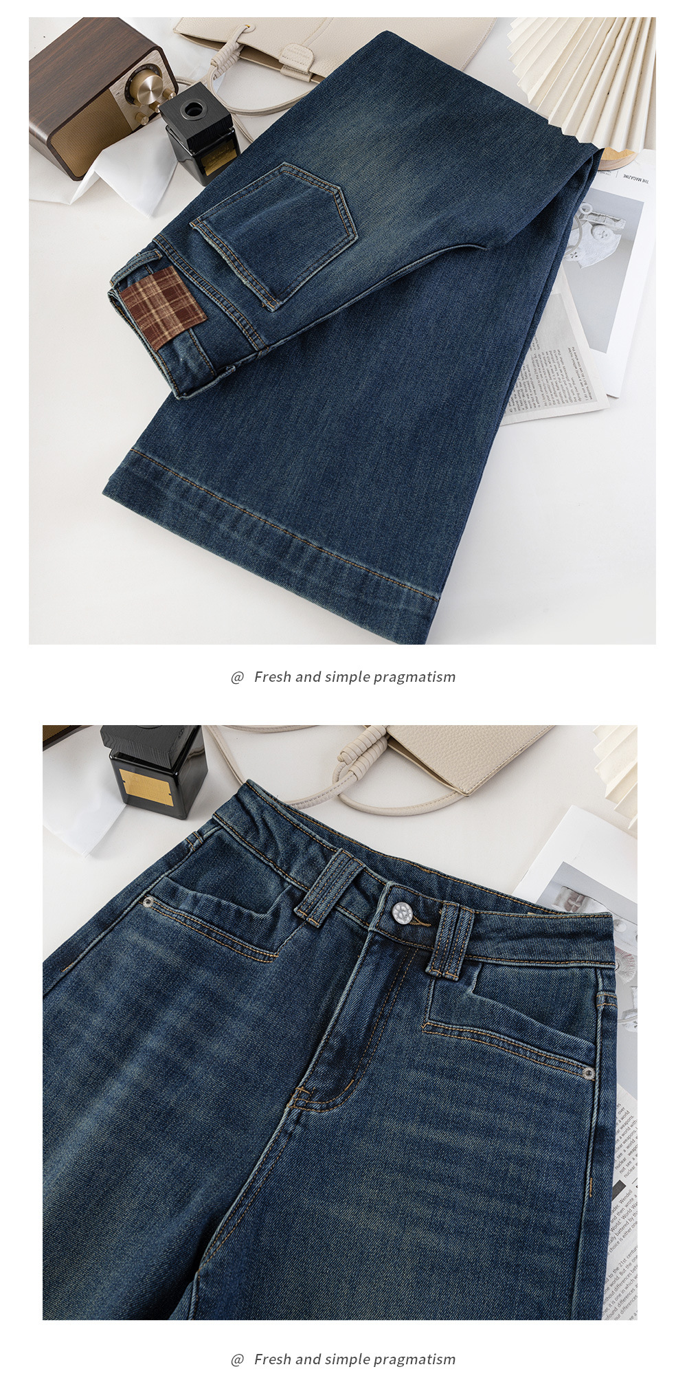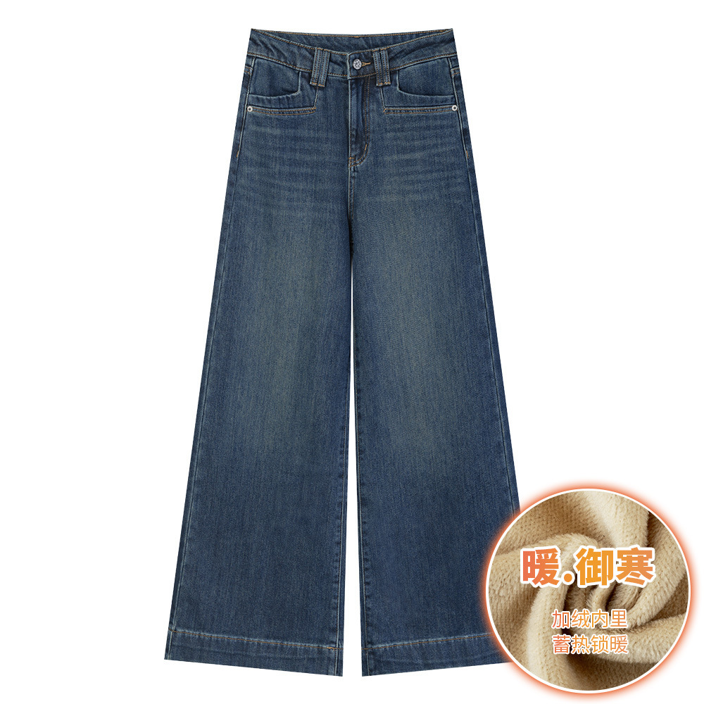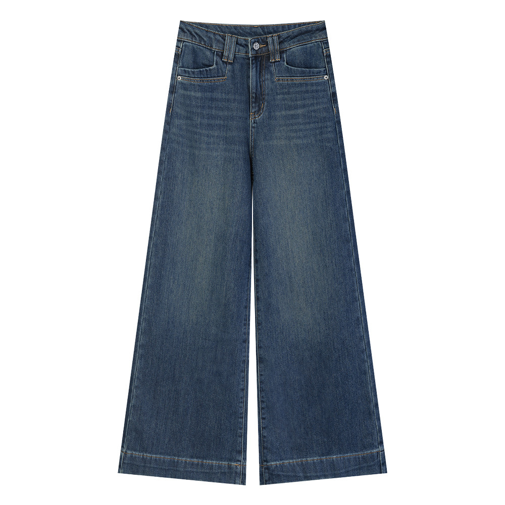 928 아메리칸 스타일 레트로 높은 허리 넓은 다리 청바지 여성의 2024 가을 및 겨울 드래그 바지스토어 가기