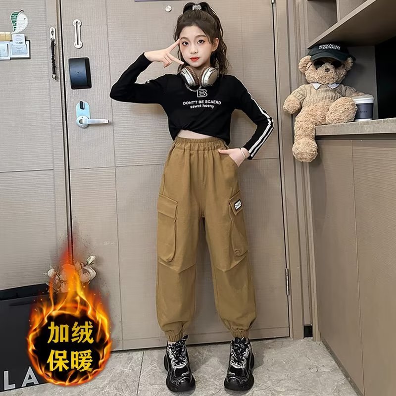 소녀 바지 가을과 겨울 캐주얼 바지 2024 새로운 어린이 가을 쿠션 바지 소녀 느슨한 바지