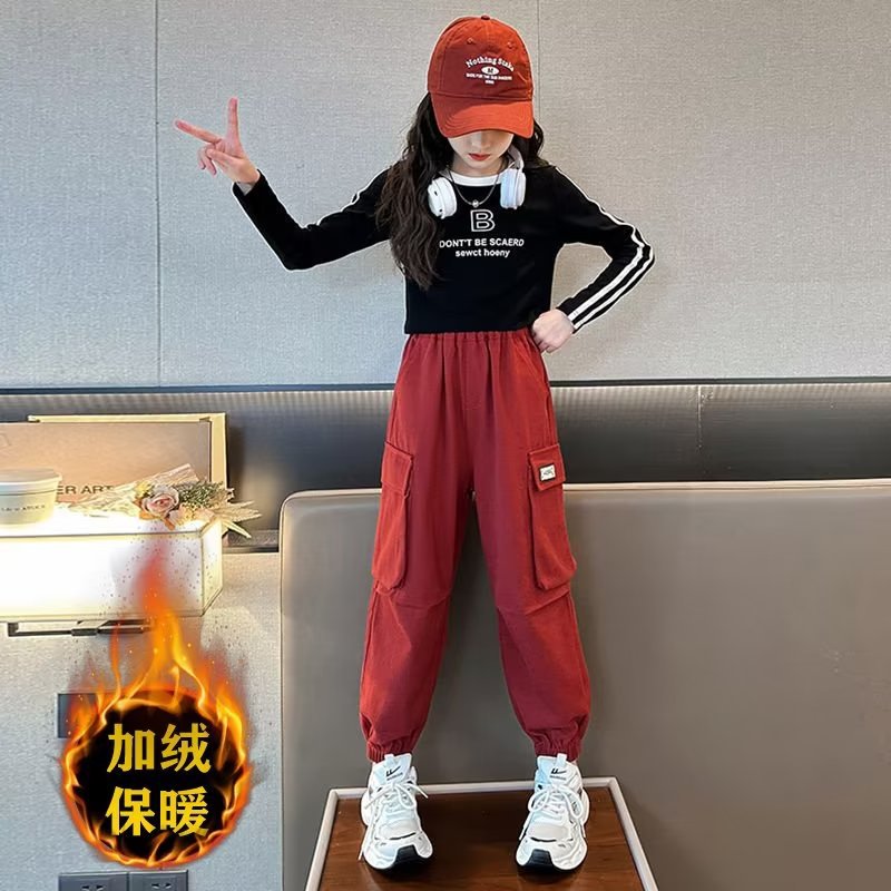 소녀 바지 가을과 겨울 캐주얼 바지 2024 새로운 어린이 가을 쿠션 바지 소녀 느슨한 바지스토어 가기