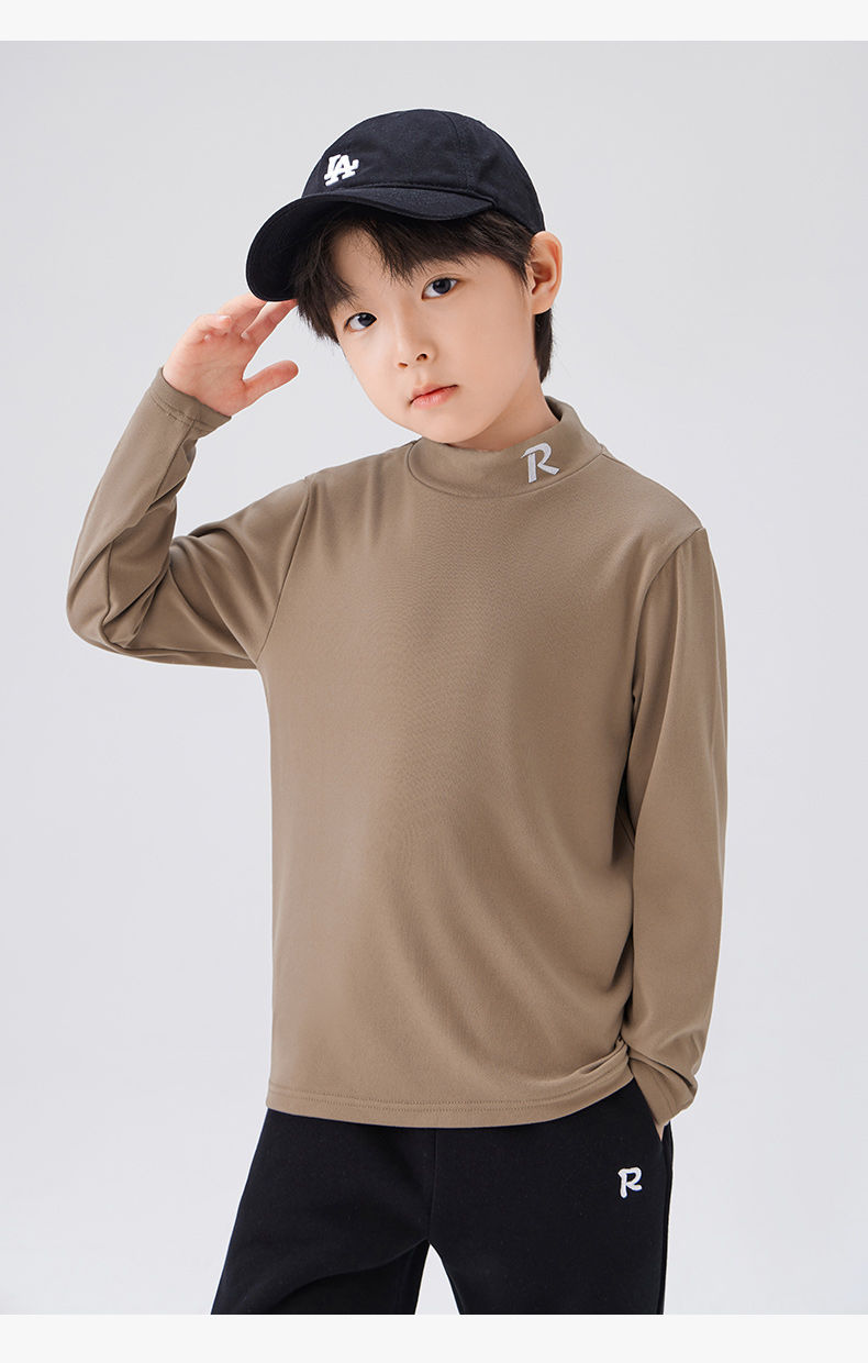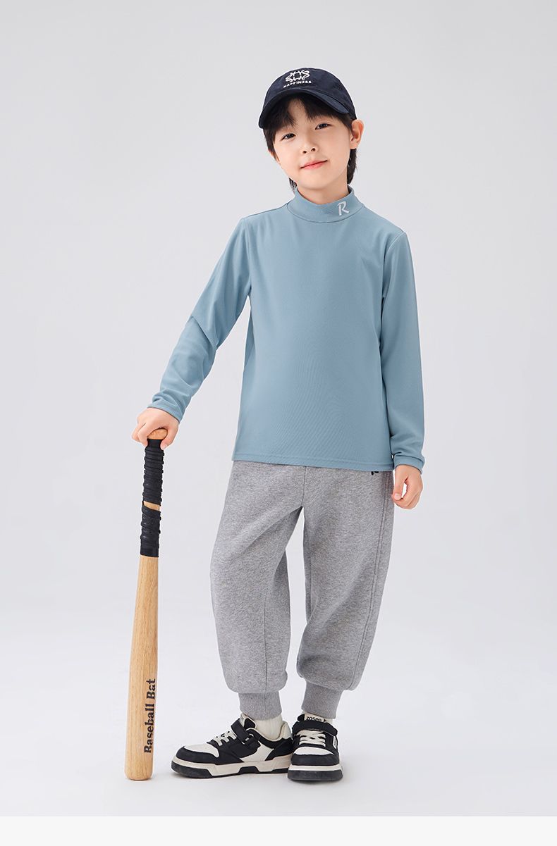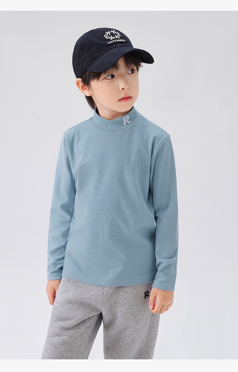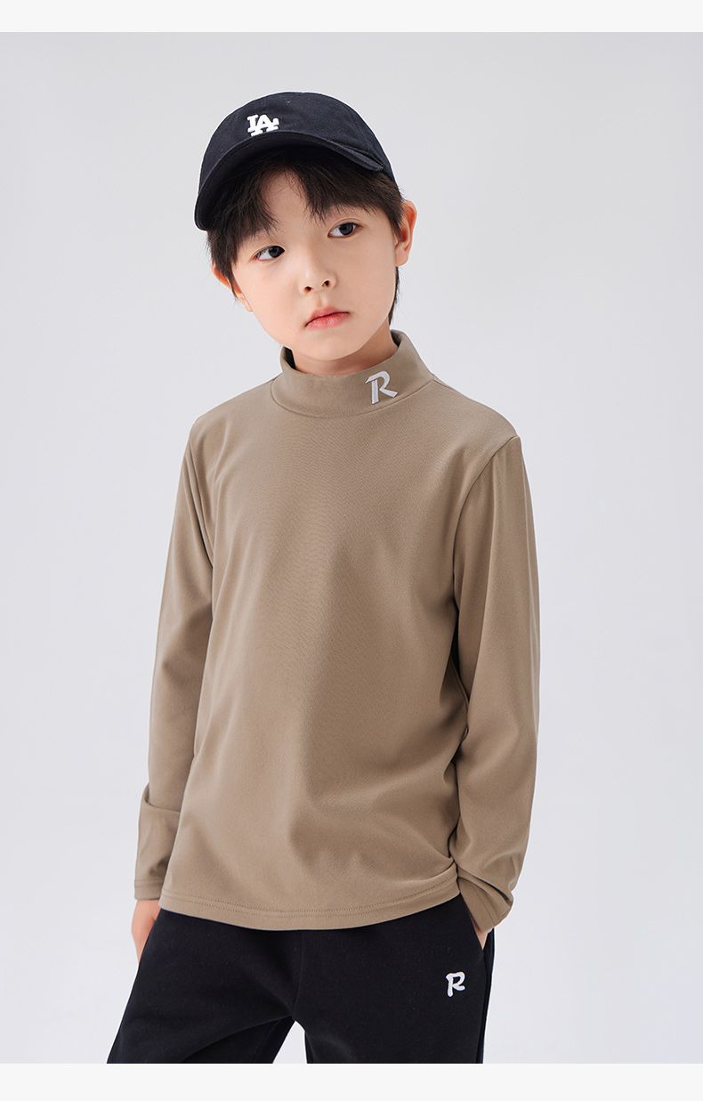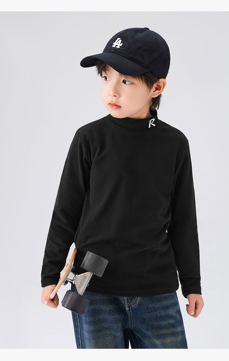 Zuoxi 아동복 소년 하이 칼라 베이스 어린이 겨울복 2024 새로운 항균 소년 가을과 겨울 긴 소매 티셔츠