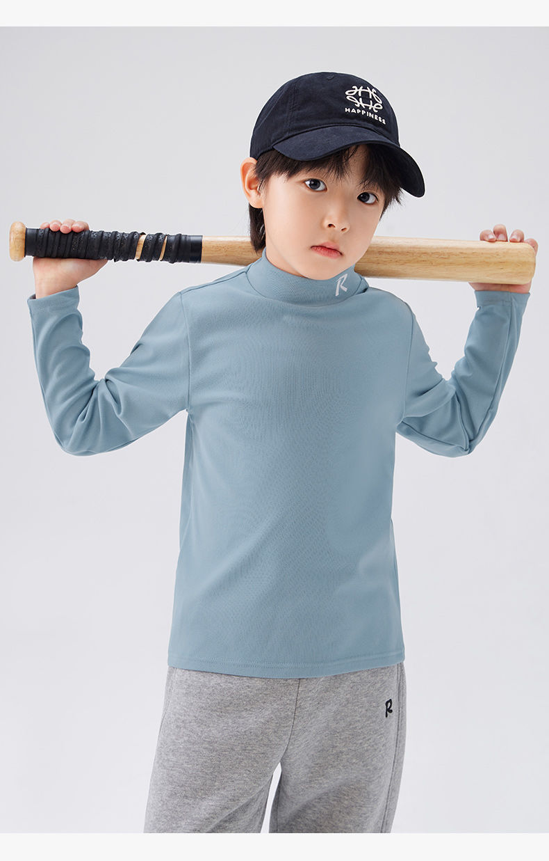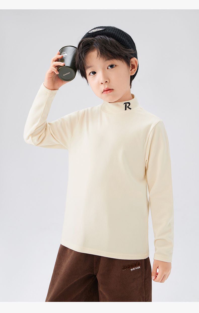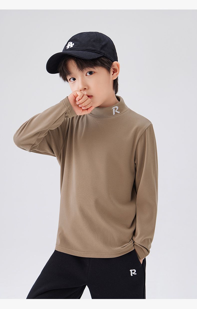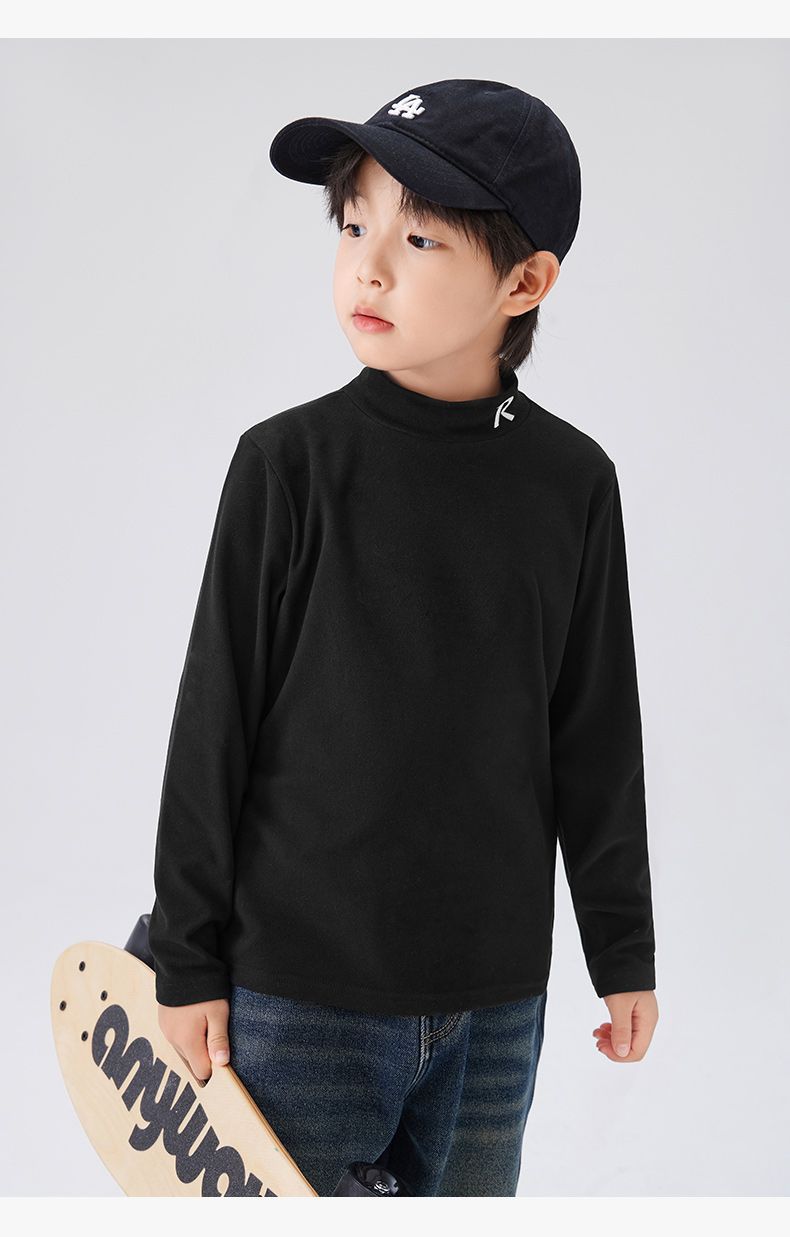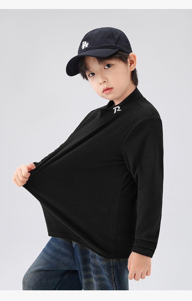 Zuoxi 아동복 소년 하이 칼라 베이스 어린이 겨울복 2024 새로운 항균 소년 가을과 겨울 긴 소매 티셔츠