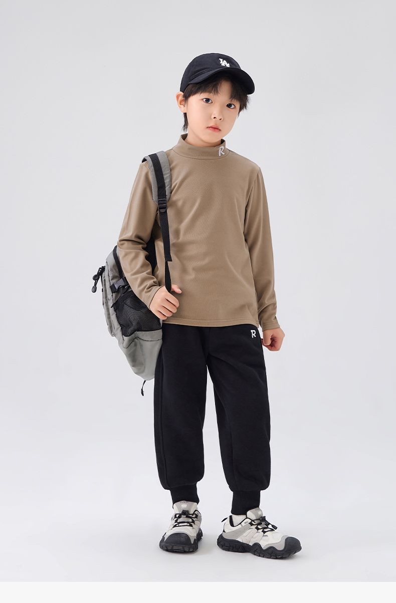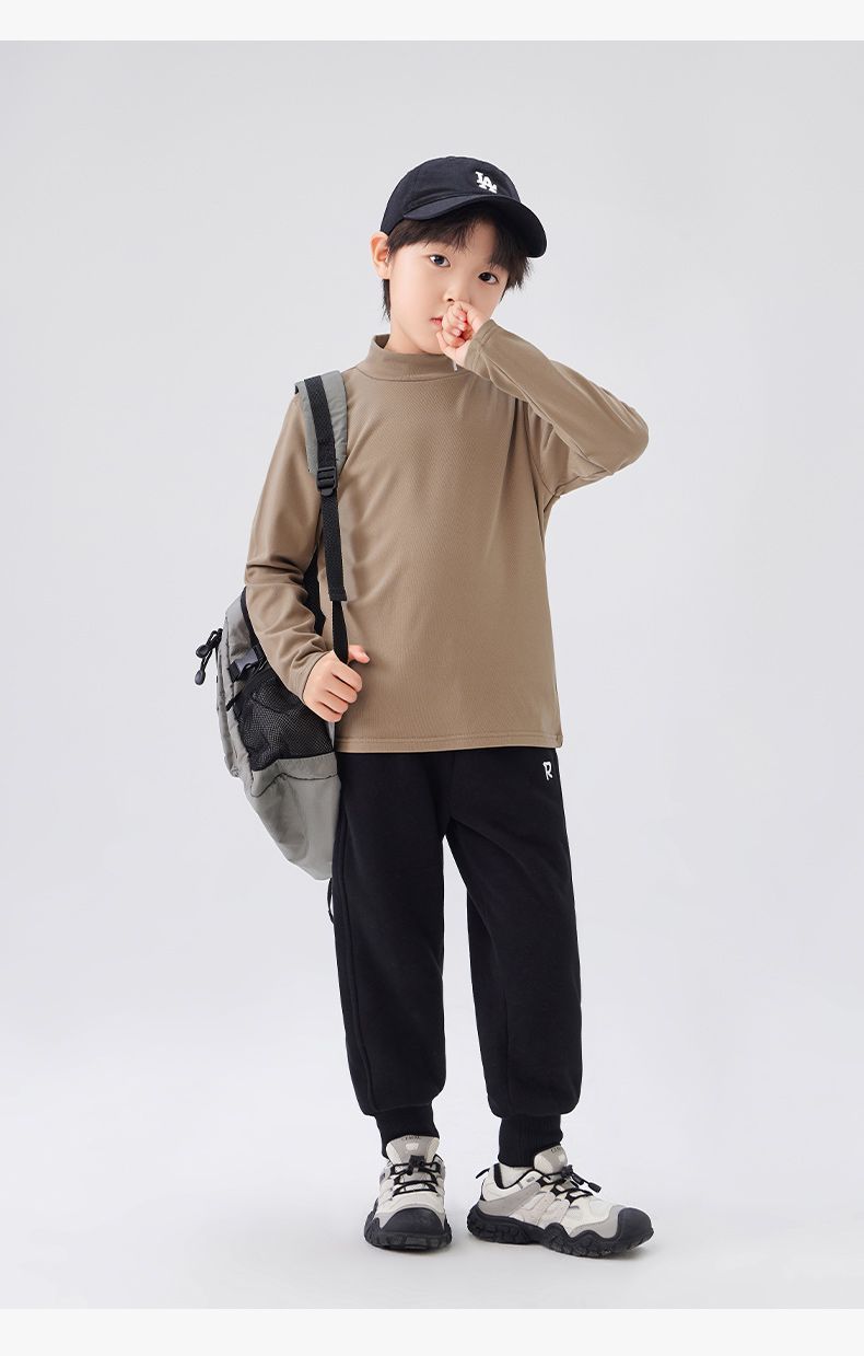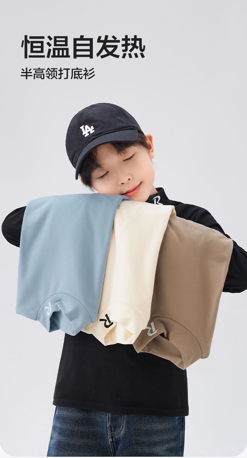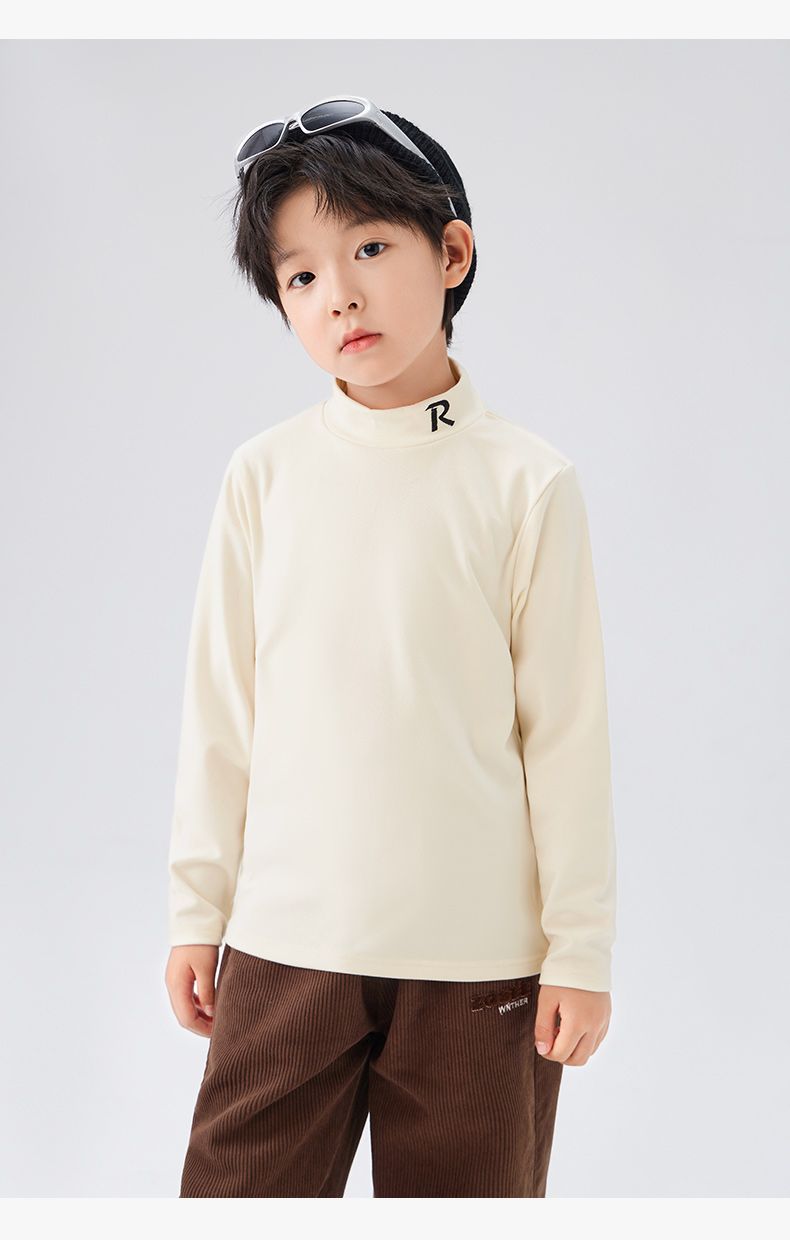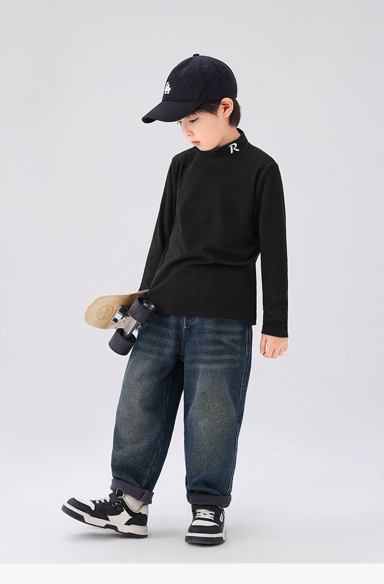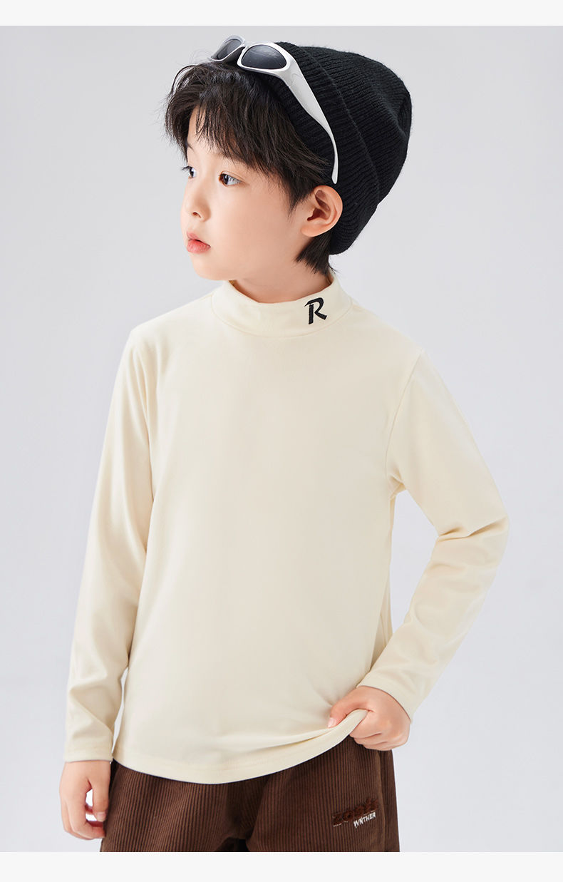 Zuoxi 아동복 소년 하이 칼라 베이스 어린이 겨울복 2024 새로운 항균 소년 가을과 겨울 긴 소매 티셔츠
