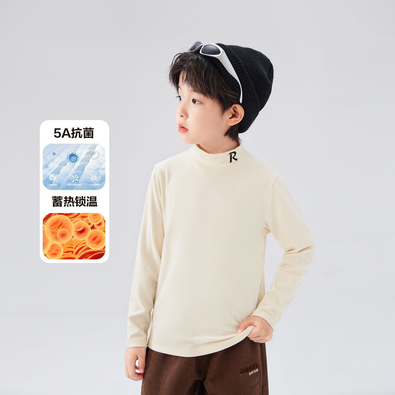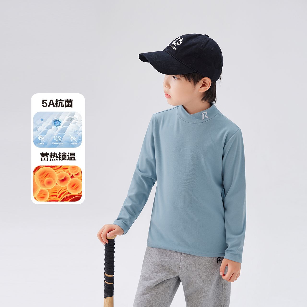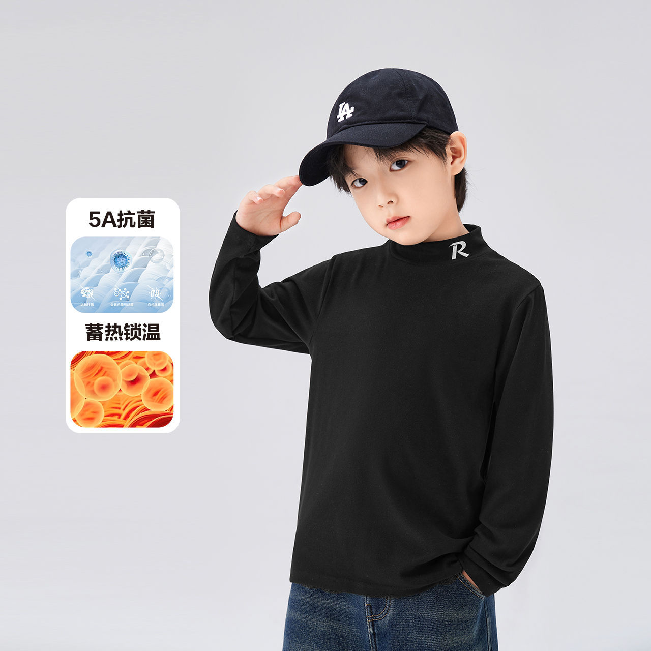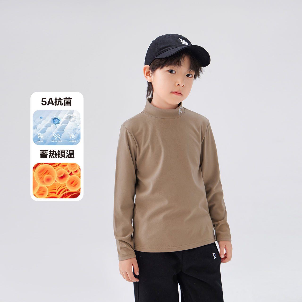 Zuoxi 아동복 소년 하이 칼라 베이스 어린이 겨울복 2024 새로운 항균 소년 가을과 겨울 긴 소매 티셔츠