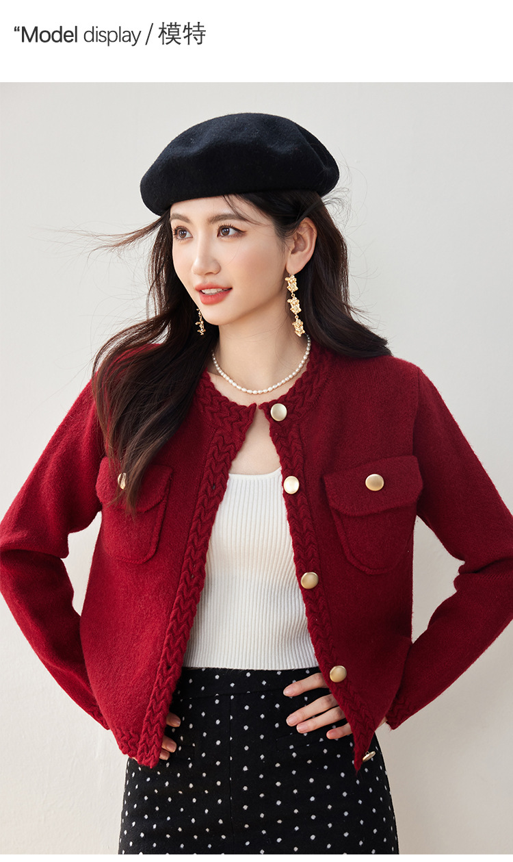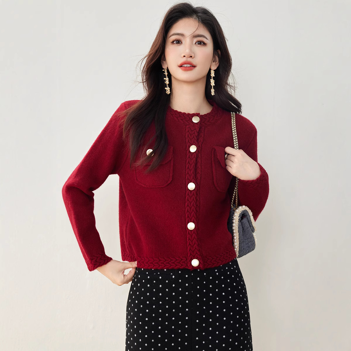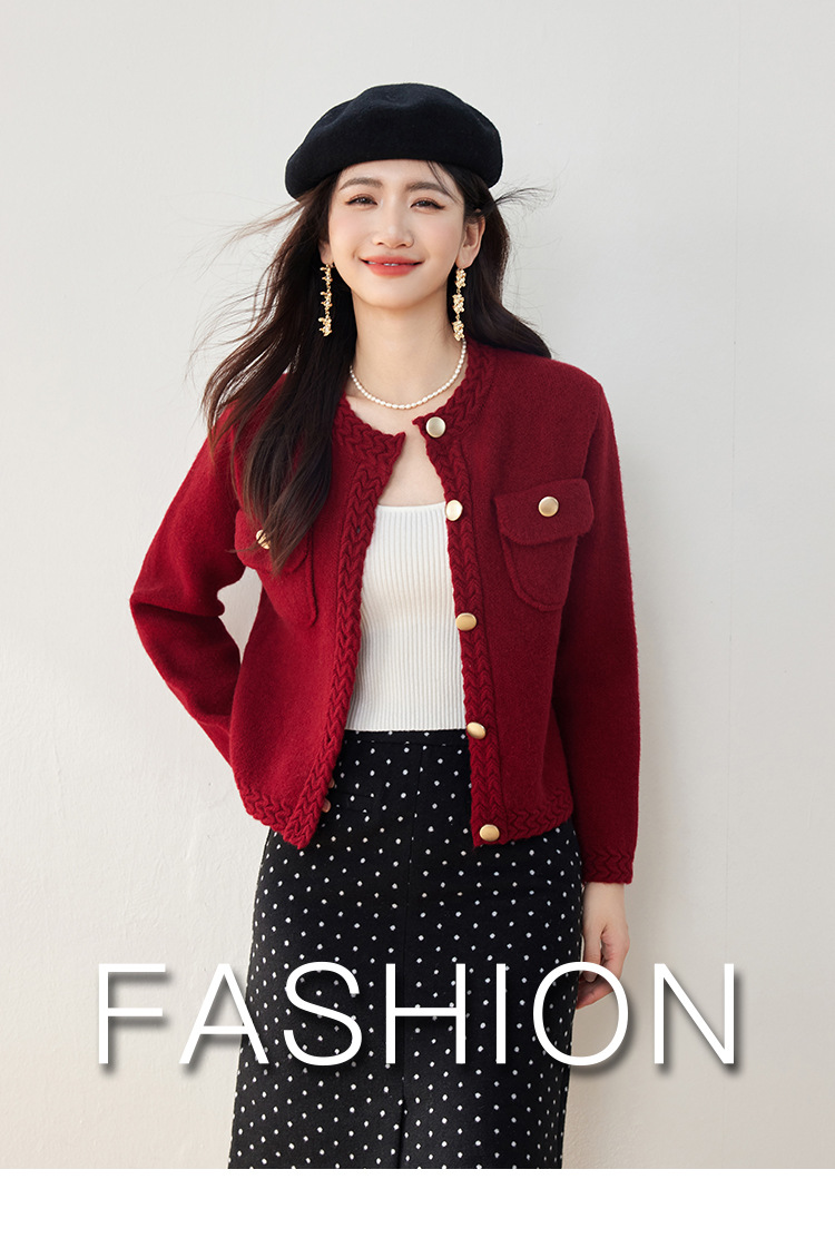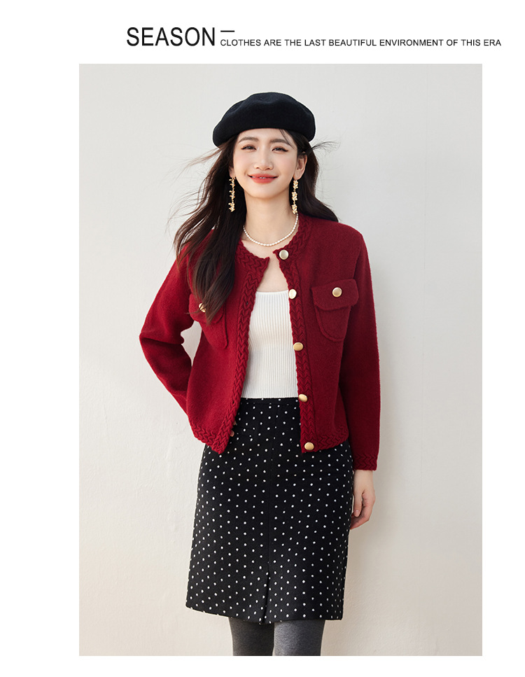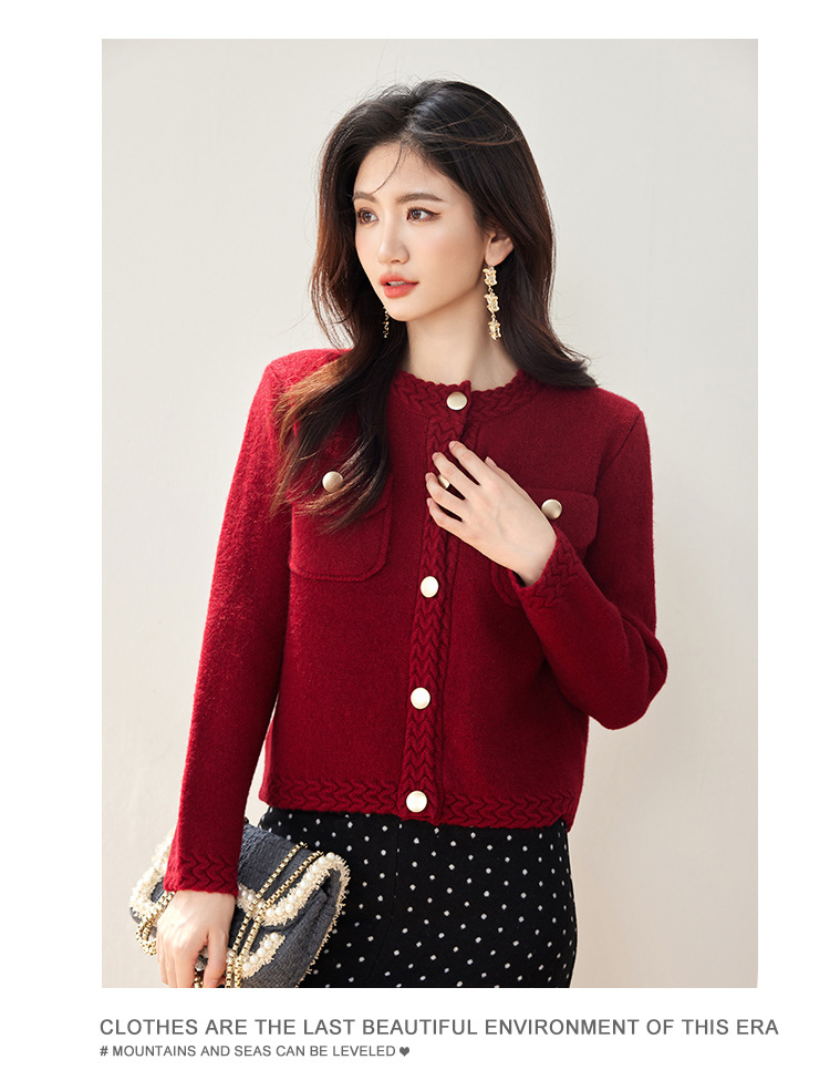 2024 겨울 새로운 프랑스 스타일 우아한 샤넬 스티칭 트위스트 스트립 라운드 넥 짧은 니트 카디건 스웨터