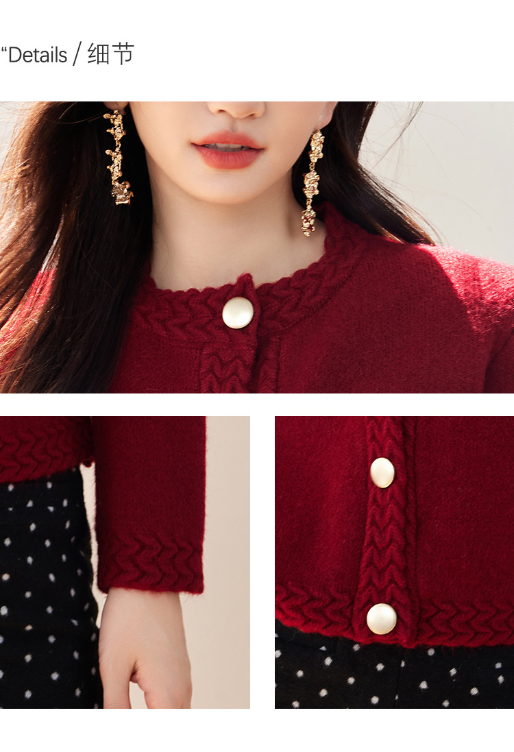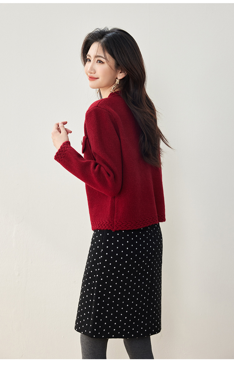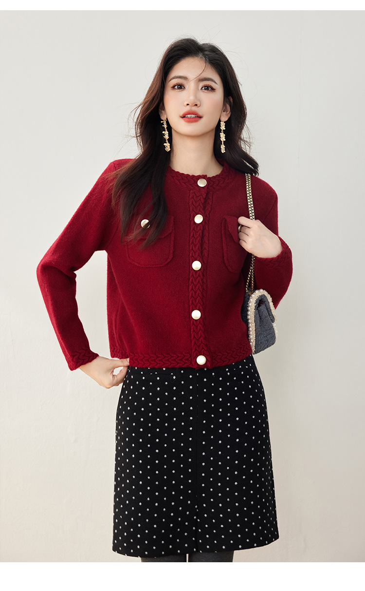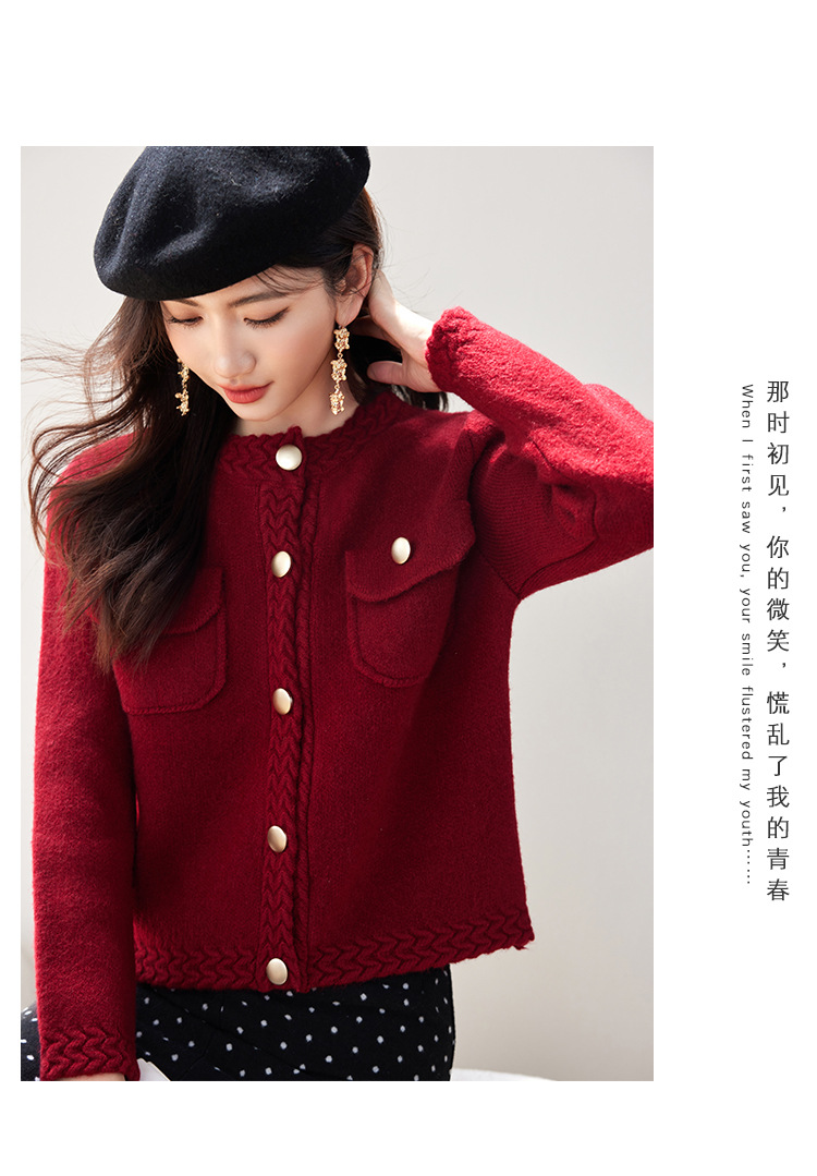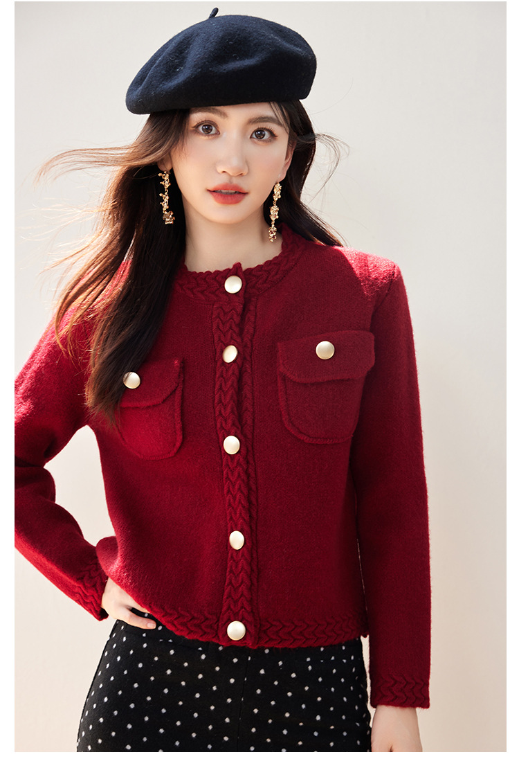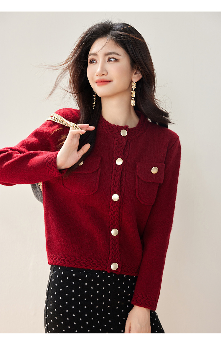 2024 겨울 새로운 프랑스 스타일 우아한 샤넬 스티칭 트위스트 스트립 라운드 넥 짧은 니트 카디건 스웨터
