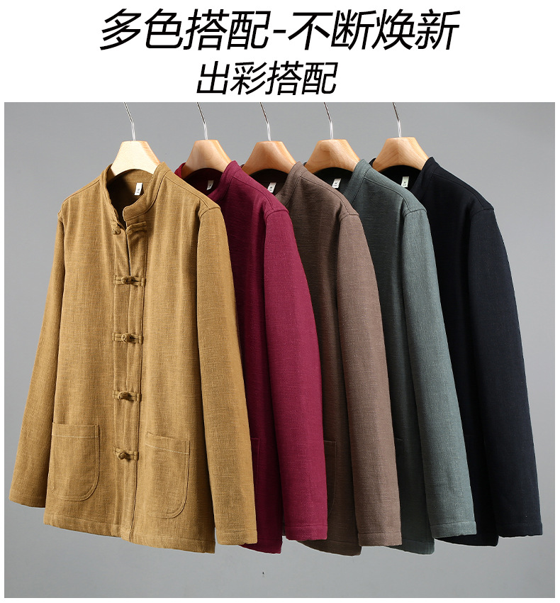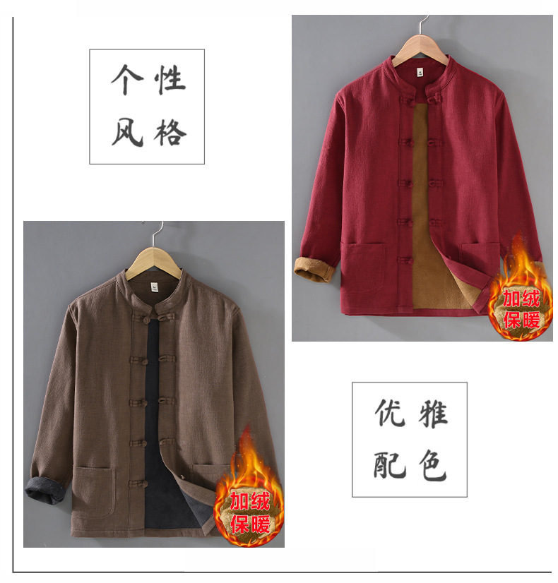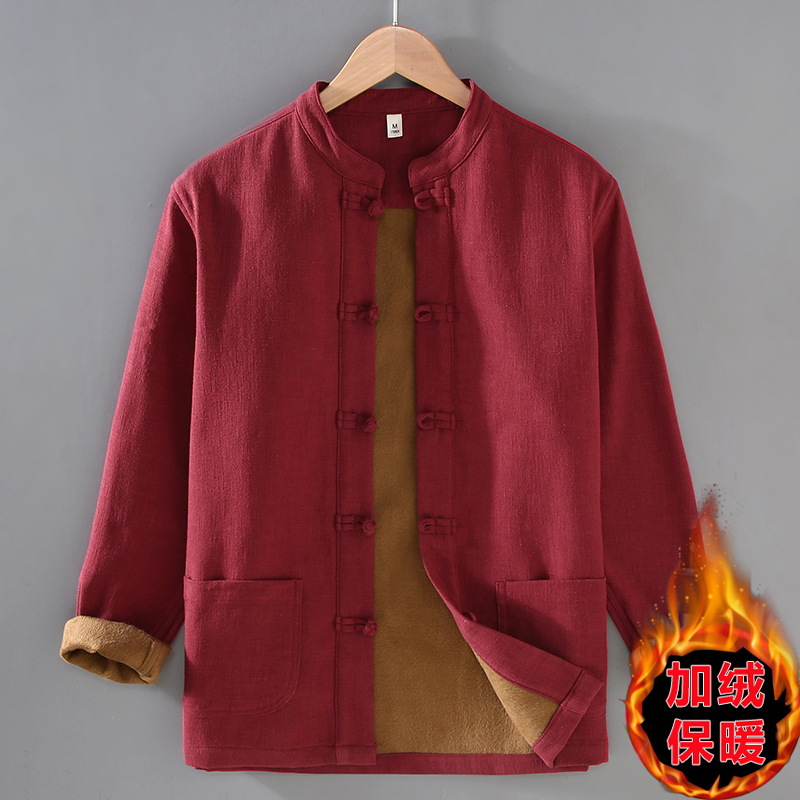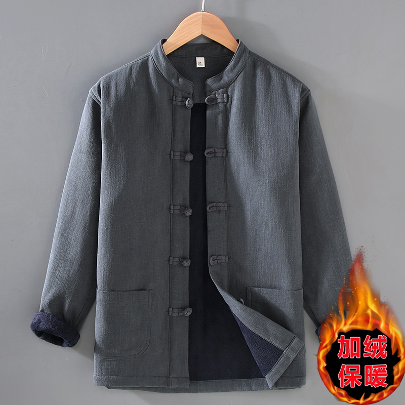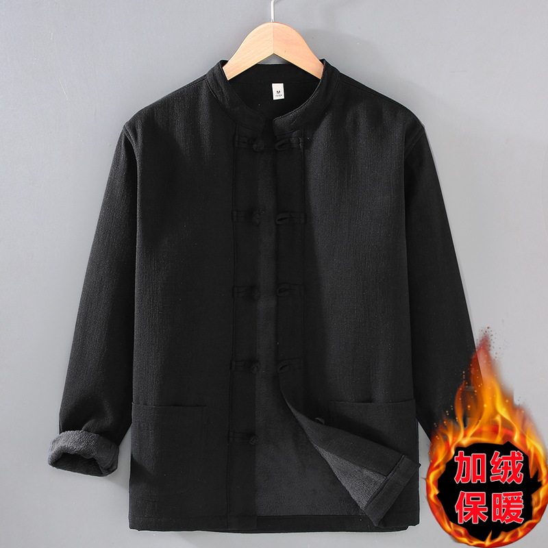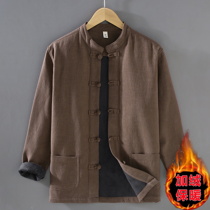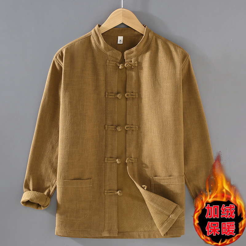2381 중국 스타일 버클 기모 라미면 캐주얼 긴 소매 보토밍 국가 패션 칼라 느슨한 대마 셔츠 재킷스토어 가기