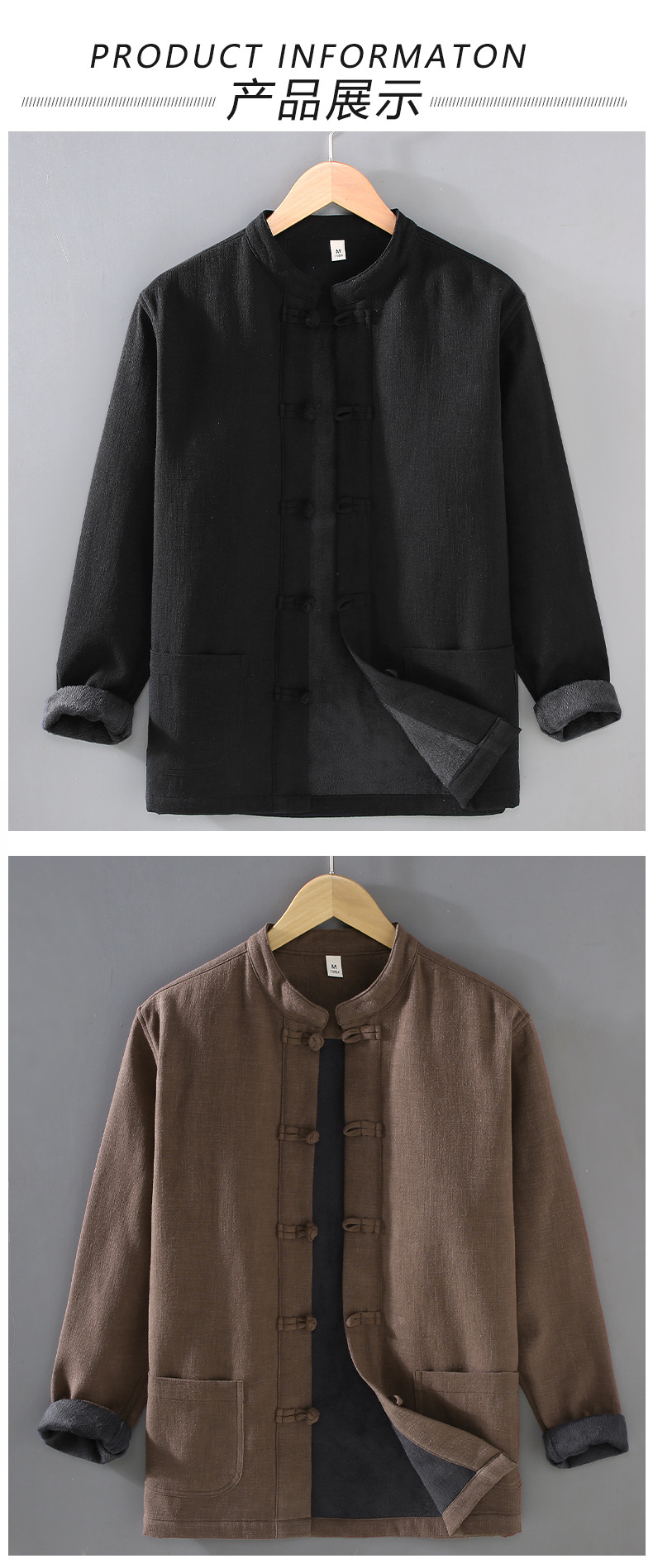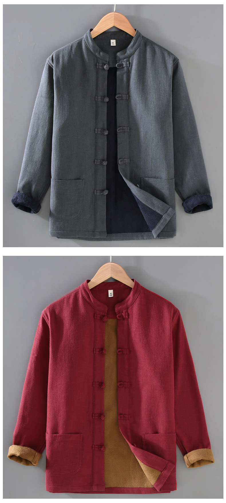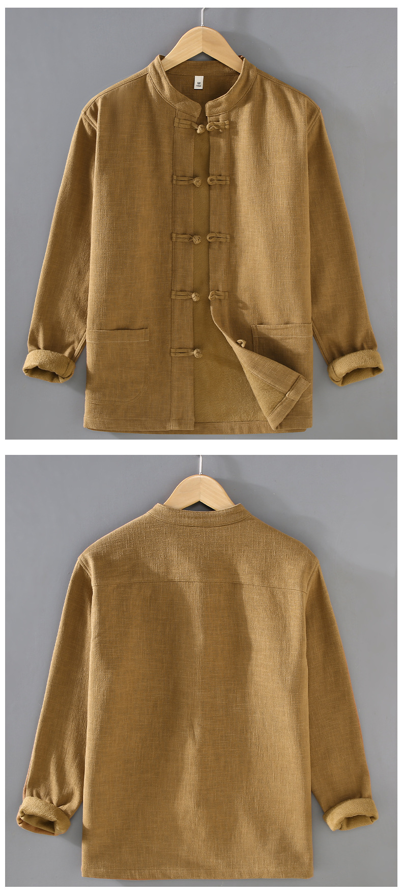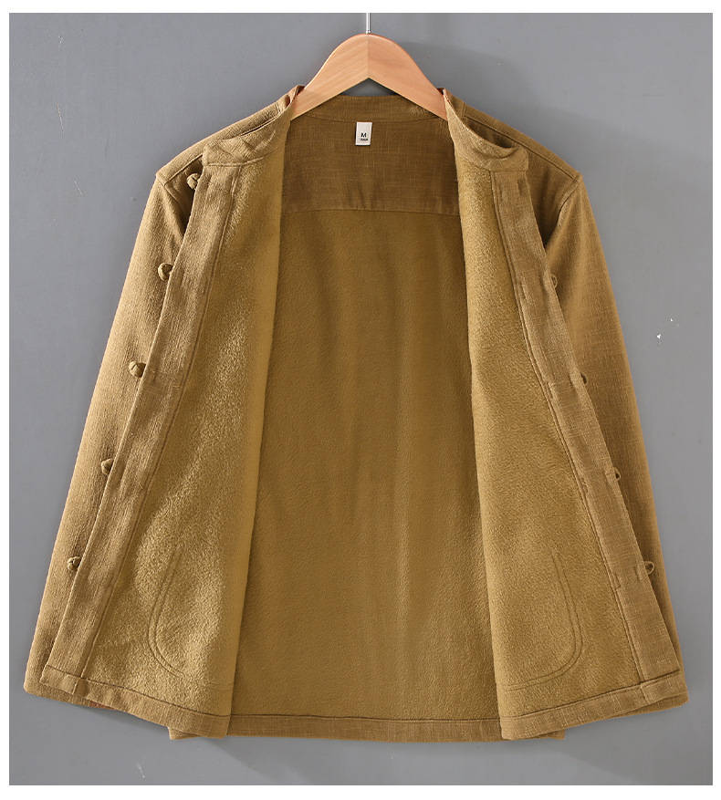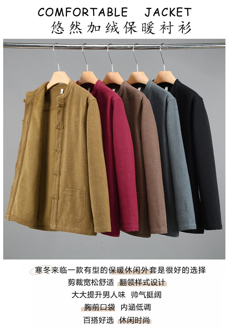 2381 중국 스타일 버클 기모 라미면 캐주얼 긴 소매 보토밍 국가 패션 칼라 느슨한 대마 셔츠 재킷스토어 가기