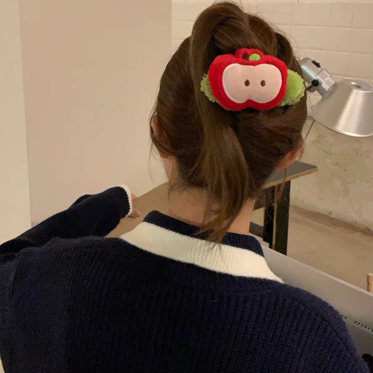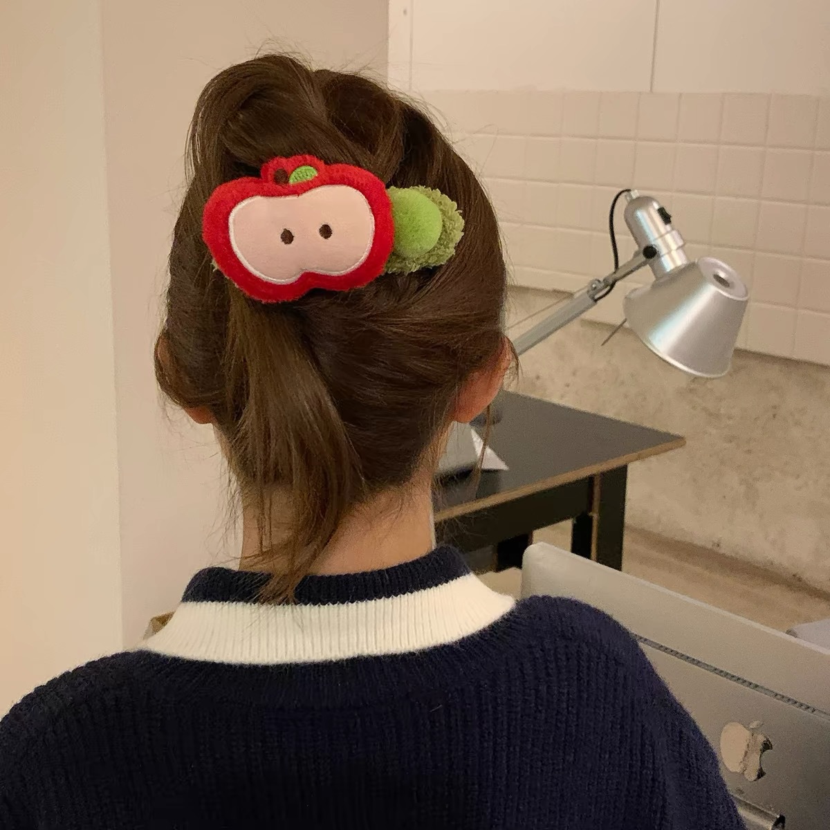 귀여운 봉제 레드 애플 헤어핀 여성의 한 단어 대형 덕빌 클립 헤드 디스크 헤어 핀 가을 및 겨울 헤어 헤어 액세서리