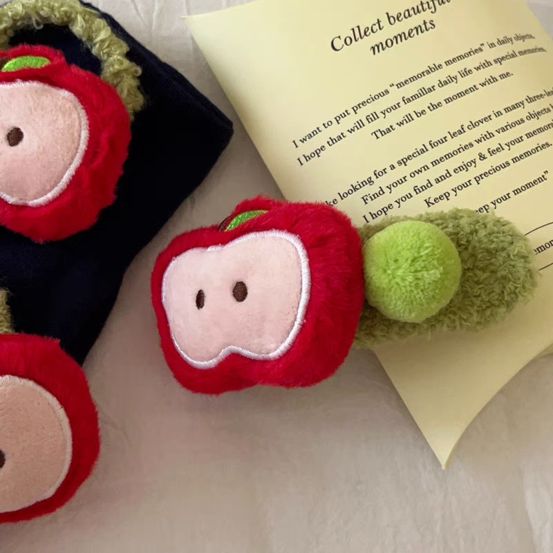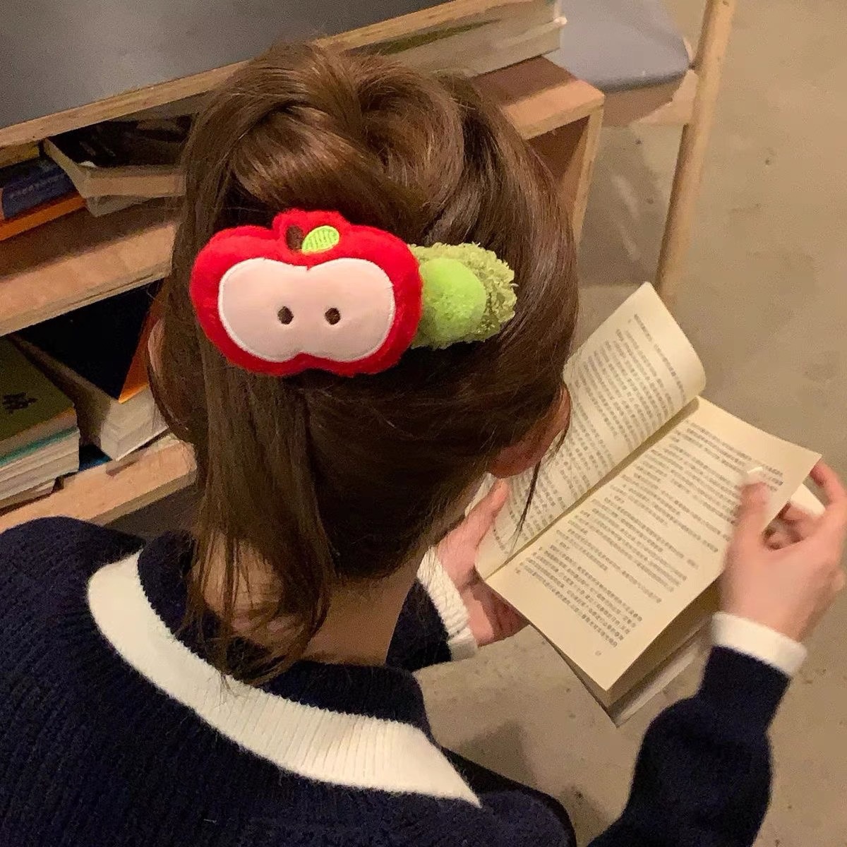 귀여운 봉제 레드 애플 헤어핀 여성의 한 단어 대형 덕빌 클립 헤드 디스크 헤어 핀 가을 및 겨울 헤어 헤어 액세서리스토어 가기