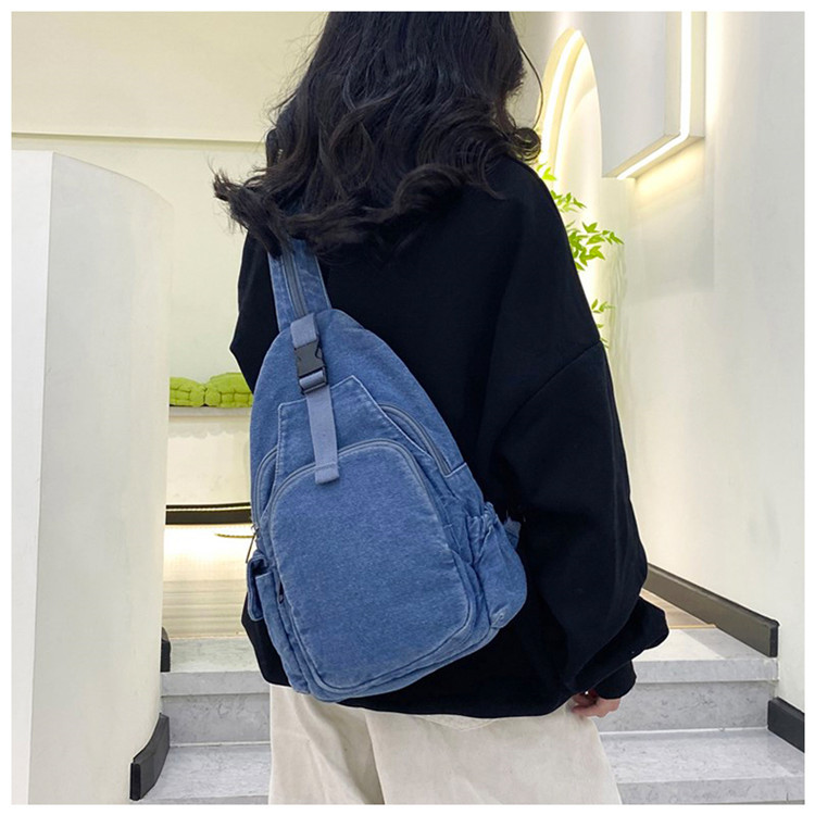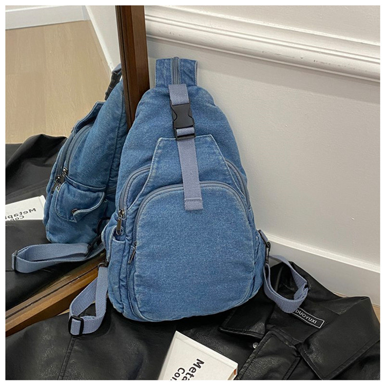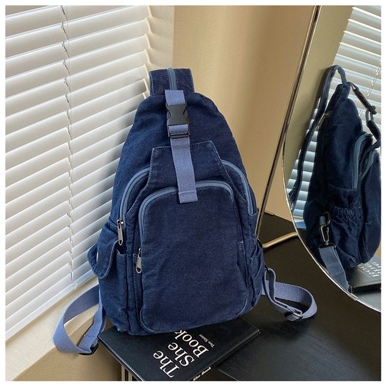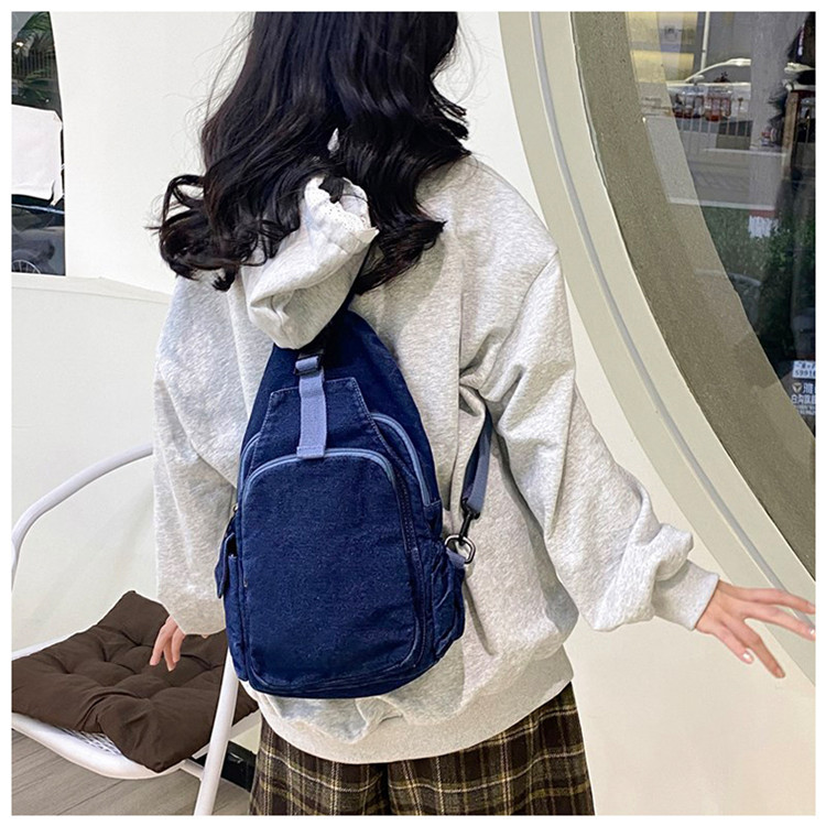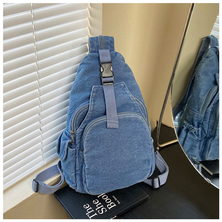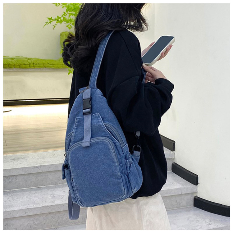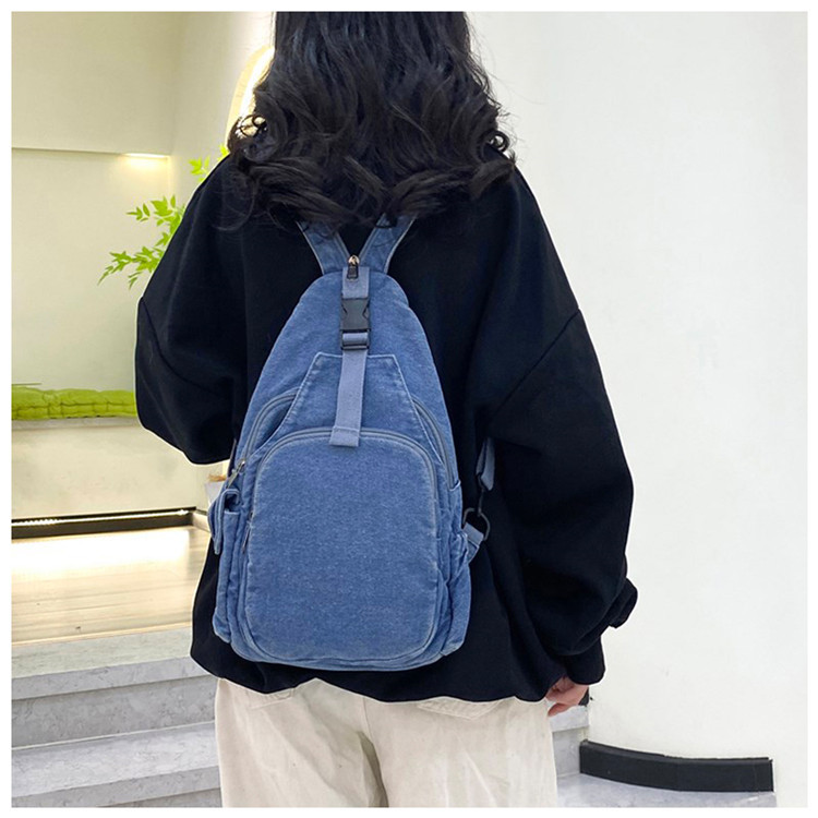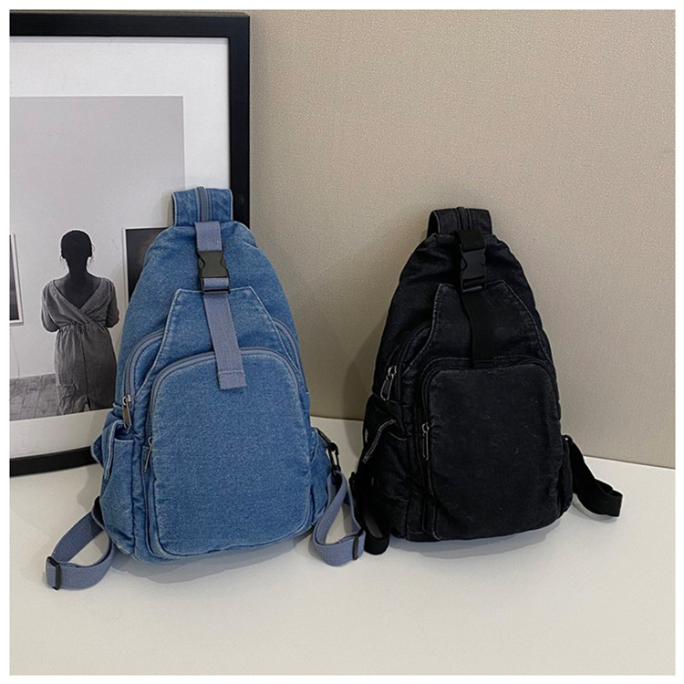 간단한 데님 가슴 가방 여성의 2024 새로운 이중 사용 가방 여성 올 매치 캐주얼 작은 배낭 캔버스 경량 새첼