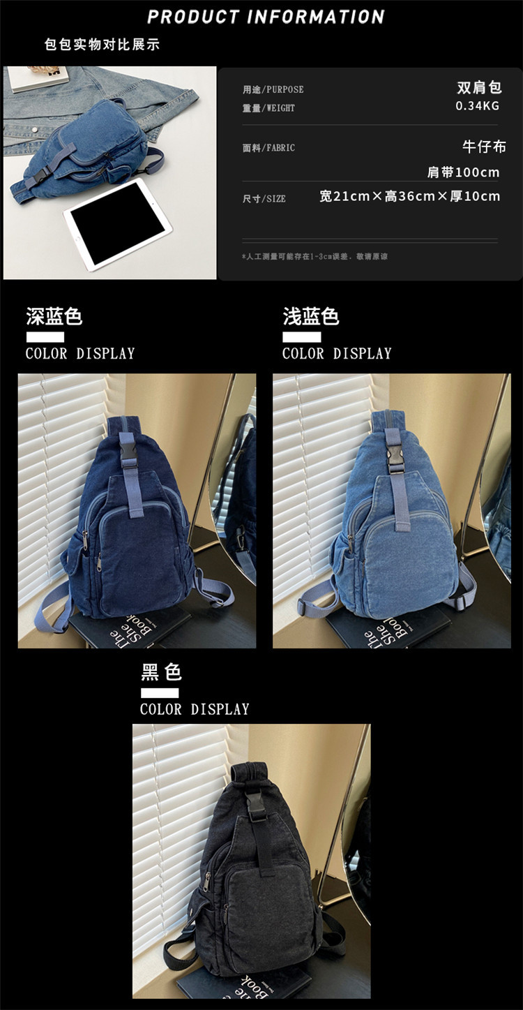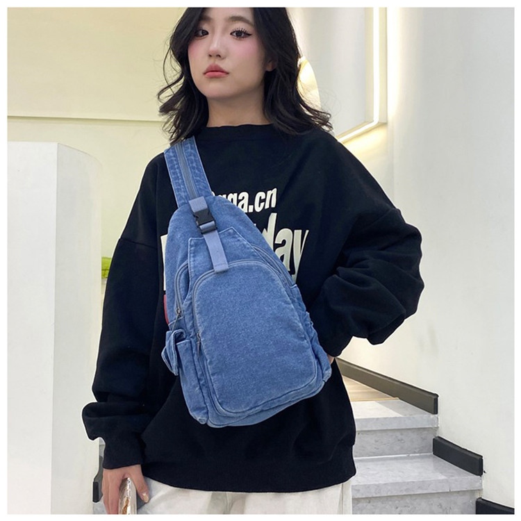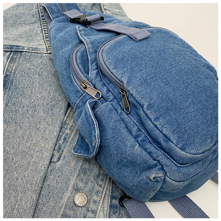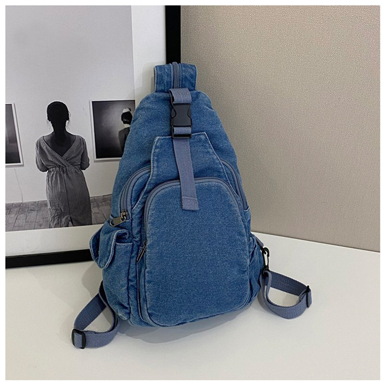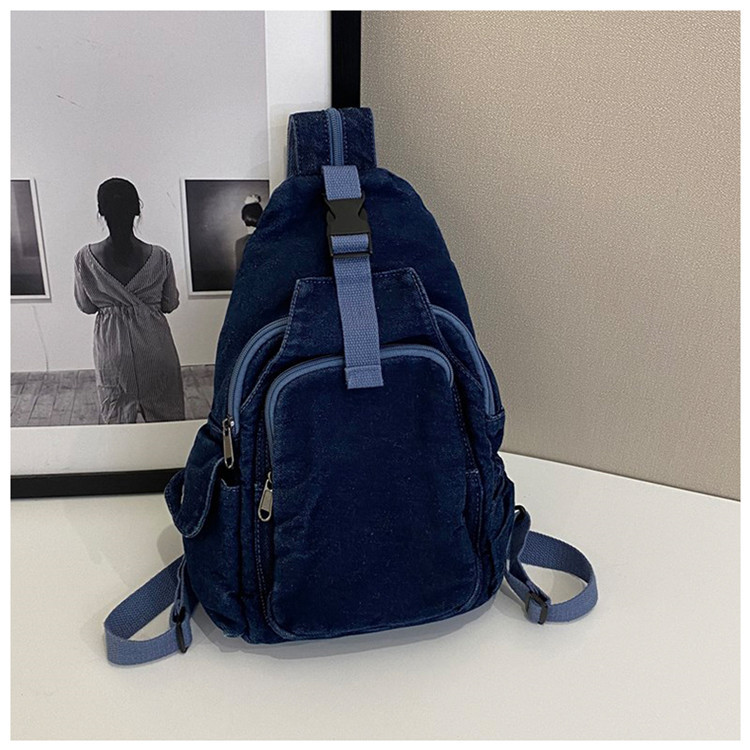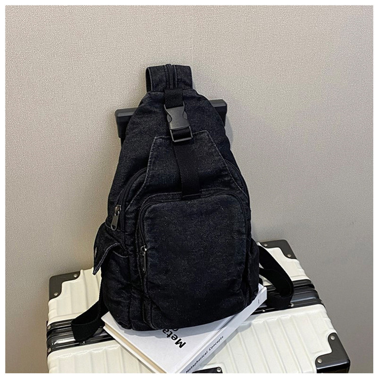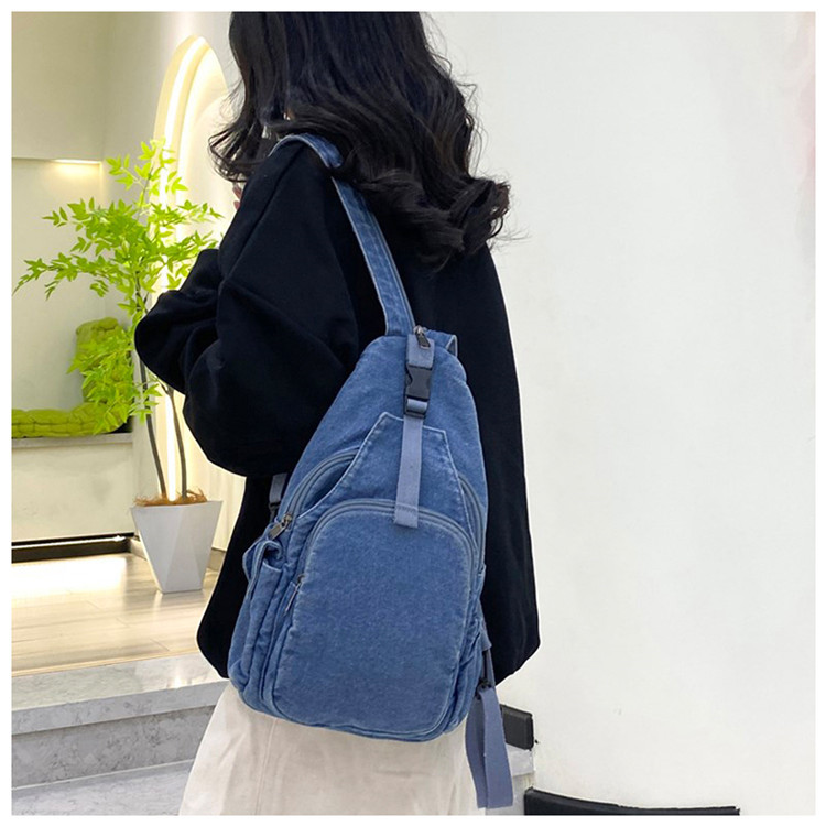 간단한 데님 가슴 가방 여성의 2024 새로운 이중 사용 가방 여성 올 매치 캐주얼 작은 배낭 캔버스 경량 새첼