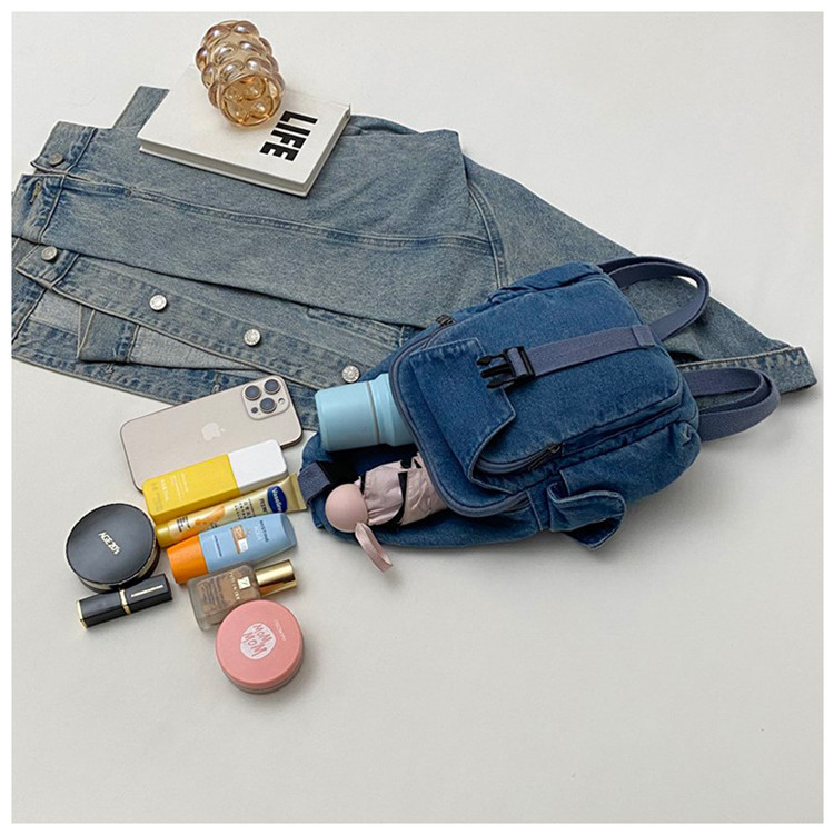 간단한 데님 가슴 가방 여성의 2024 새로운 이중 사용 가방 여성 올 매치 캐주얼 작은 배낭 캔버스 경량 새첼스토어 가기