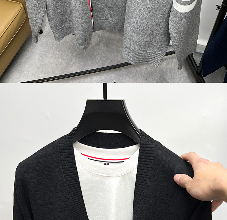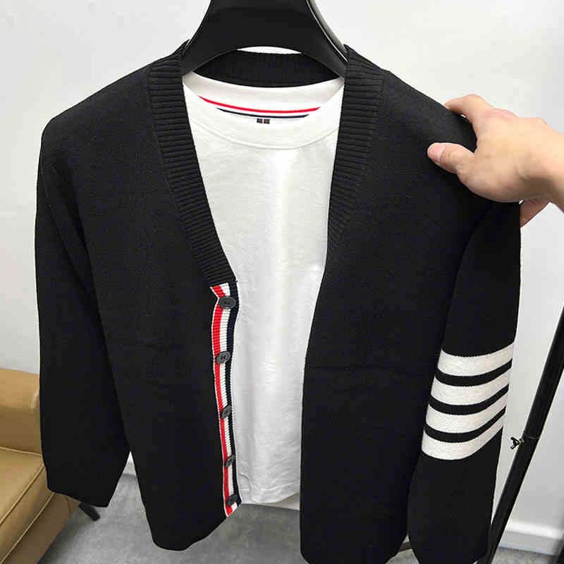클래식 브랜드 카디건 남성 스웨터 봄과 가을 v-neck 스웨터 코트 스웨터 셔츠 외부 남성용 tb-스토어 가기