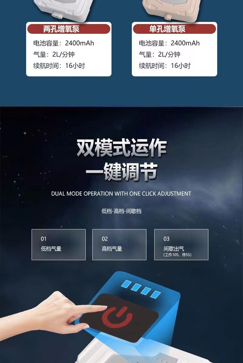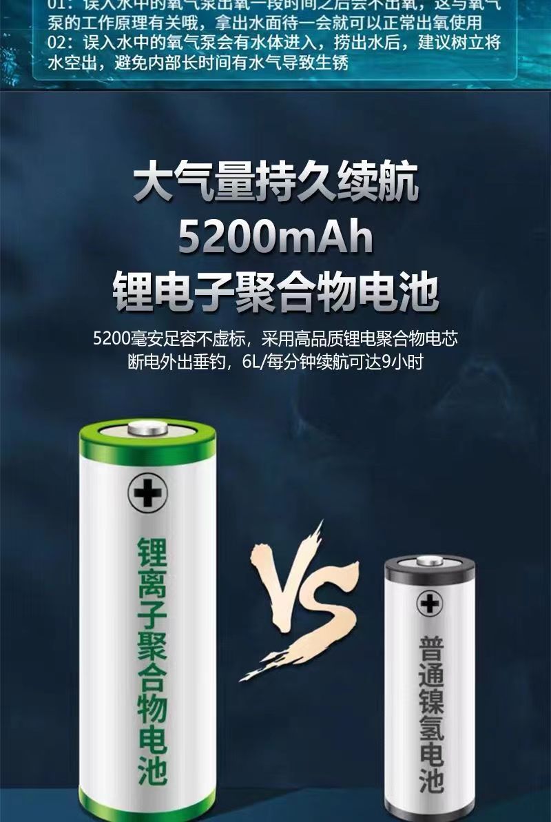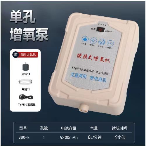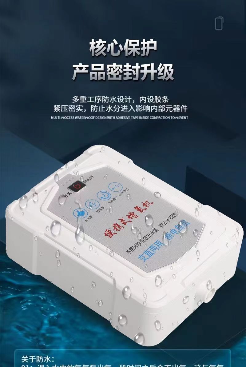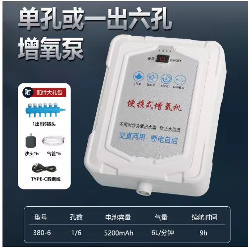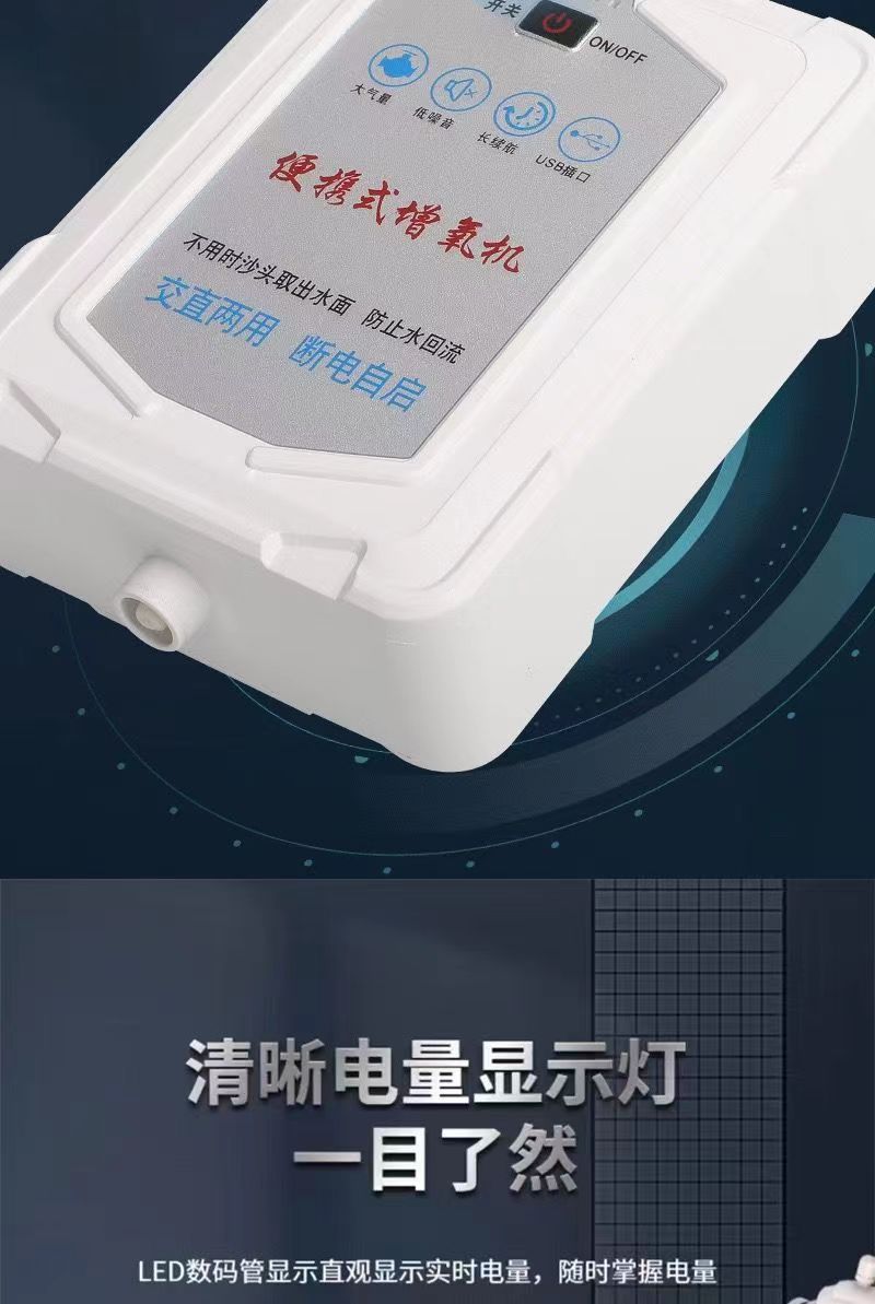 새로운 가정용 충전식 산소 펌프 어항 야외 산소 이중 목적 어기 산소 기계 낚시