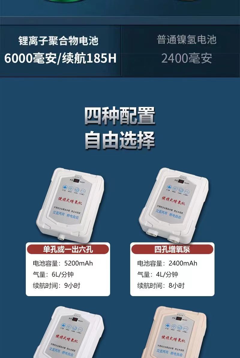 새로운 가정용 충전식 산소 펌프 어항 야외 산소 이중 목적 어기 산소 기계 낚시스토어 가기
