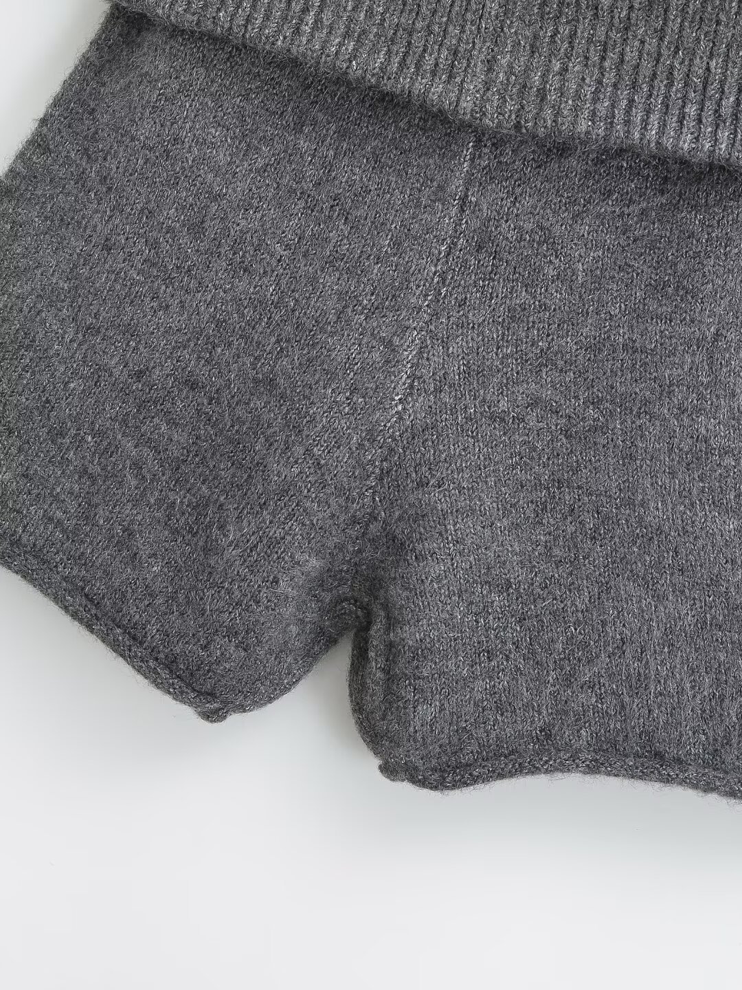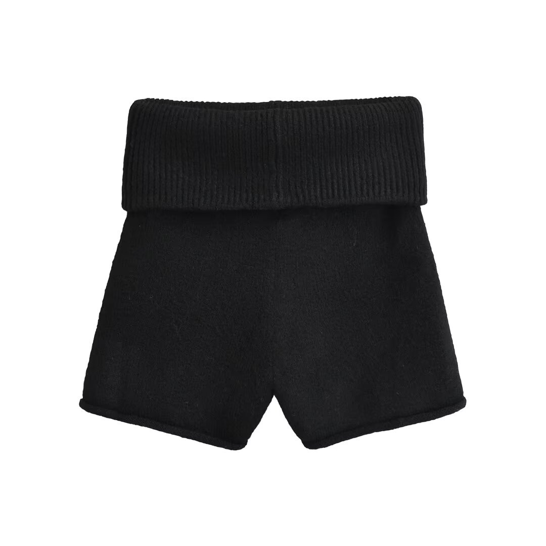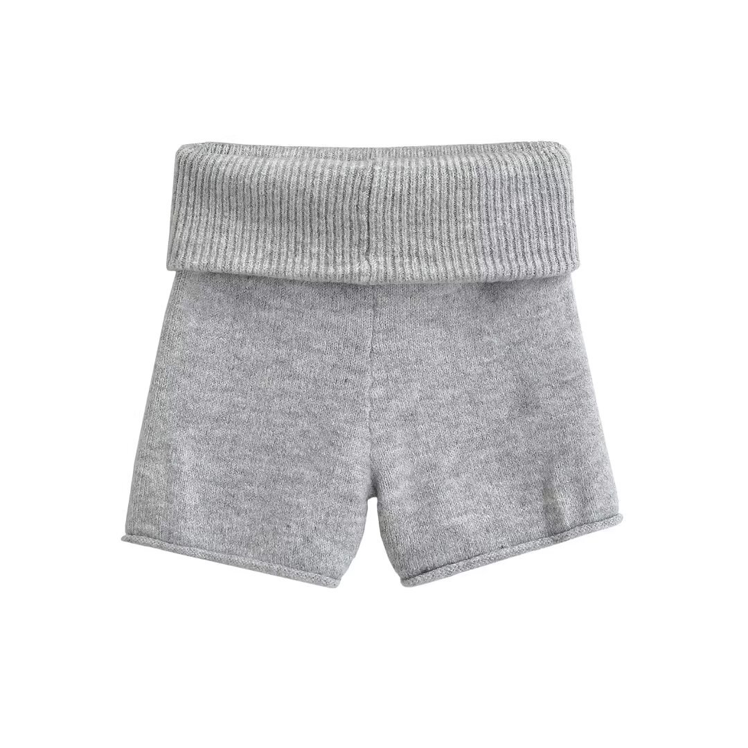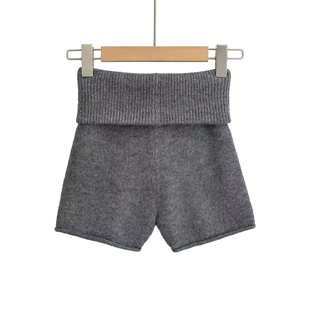 Ins Hot Girl 스타일 턴 업 니트 반바지 여성용 2024 가을 새로운 낮은 허리 구덩이 스트립 탄성 타이트 핫 바지