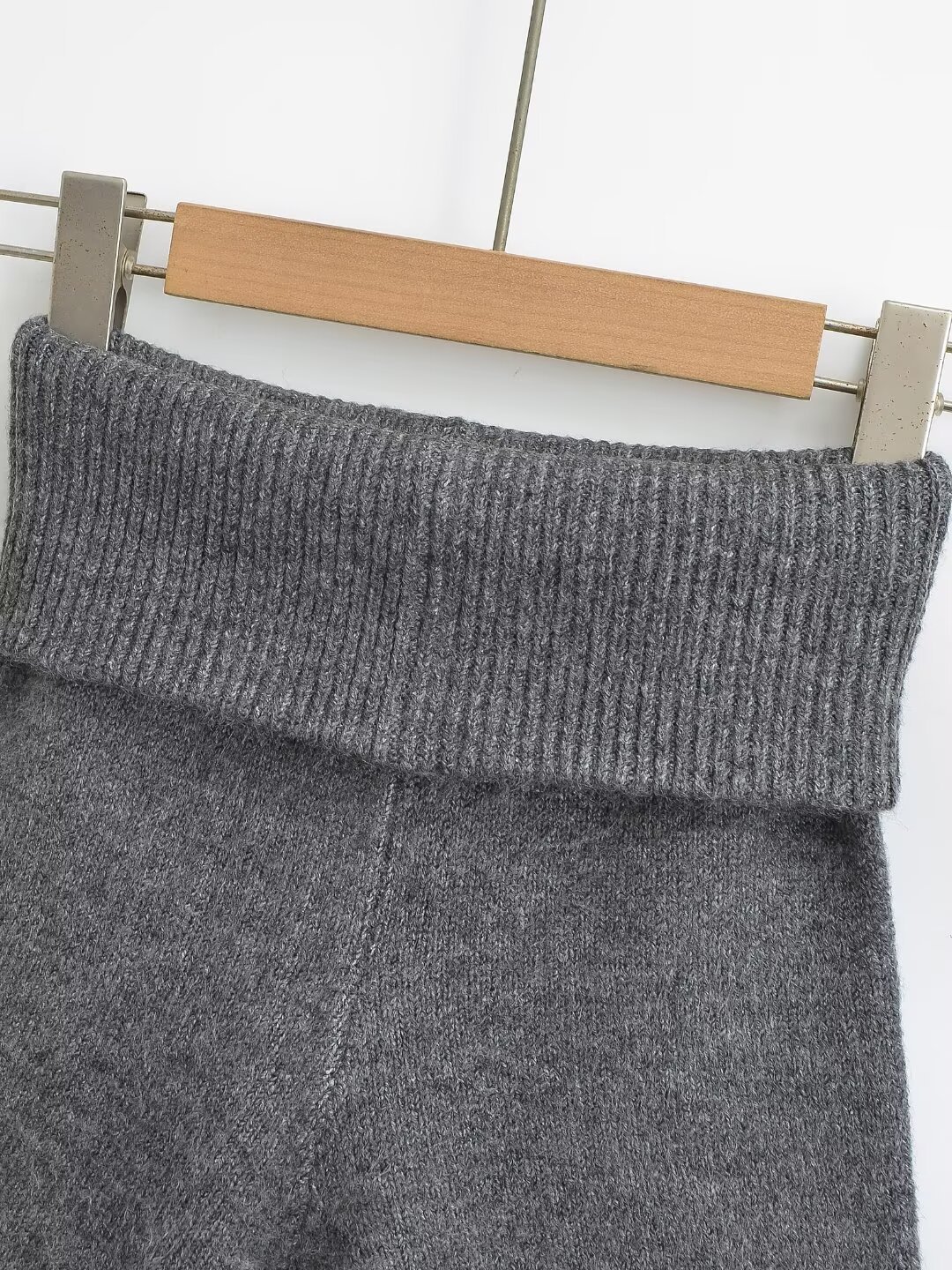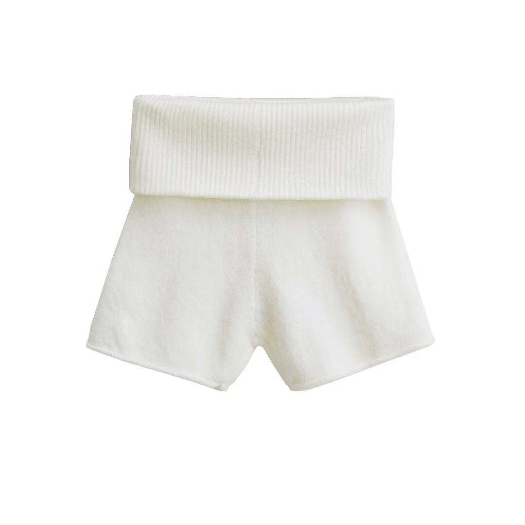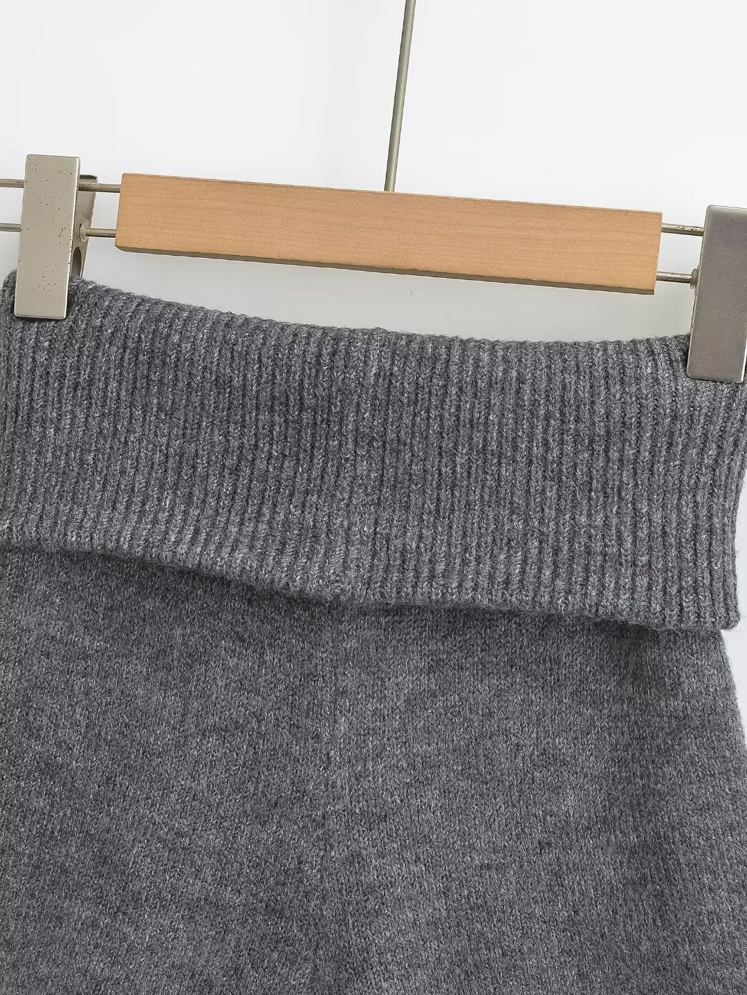 Ins Hot Girl 스타일 턴 업 니트 반바지 여성용 2024 가을 새로운 낮은 허리 구덩이 스트립 탄성 타이트 핫 바지