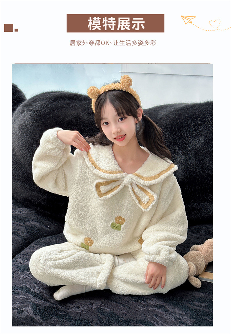 소녀 달콤한 귀여운 플란넬 잠옷 세트 2024 새로운 어린이 양면 두꺼운 따뜻한 집 옷 가을과 겨울스토어 가기
