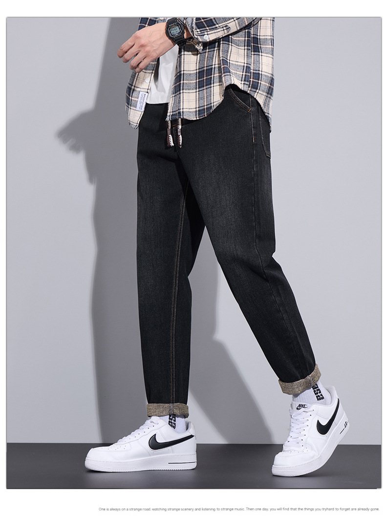 2025 새로운 메인 푸시 청바지 가을과 겨울 남자의 유행 유행 패젠 테이퍼 할란 캐주얼 바지