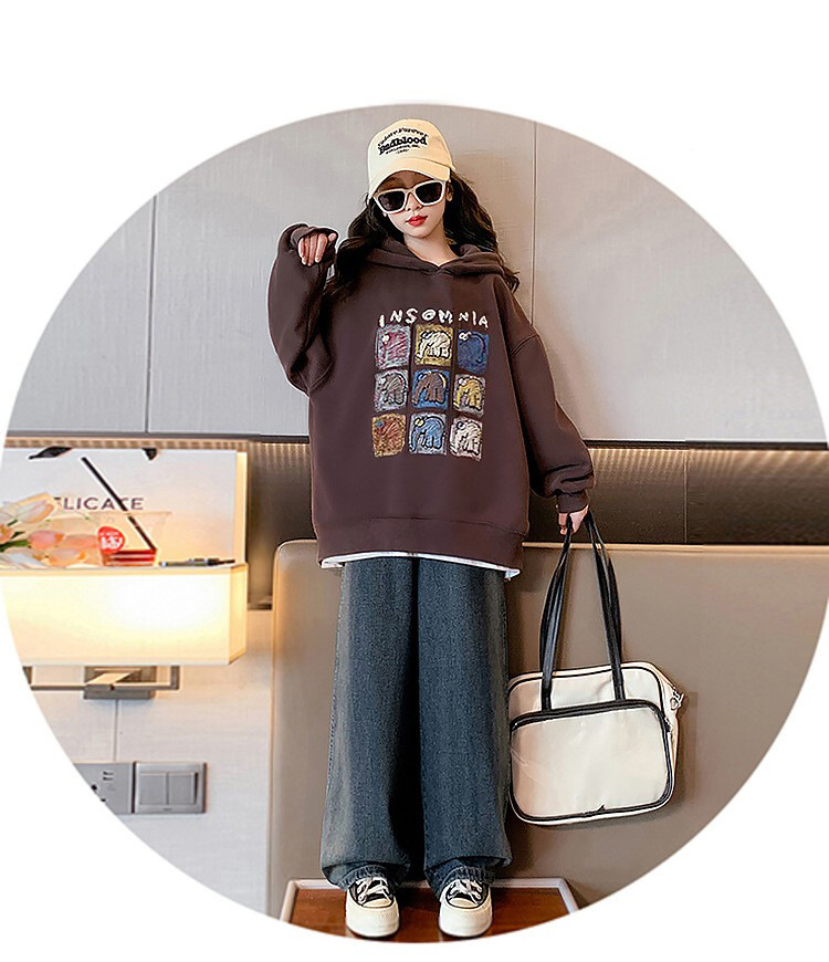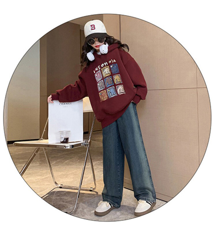 가을과 겨울 어린이 기모 두꺼운 미디 느슨한 캐주얼 후드 스웨트 큰 소녀 따뜻한 긴 소매 탑스토어 가기