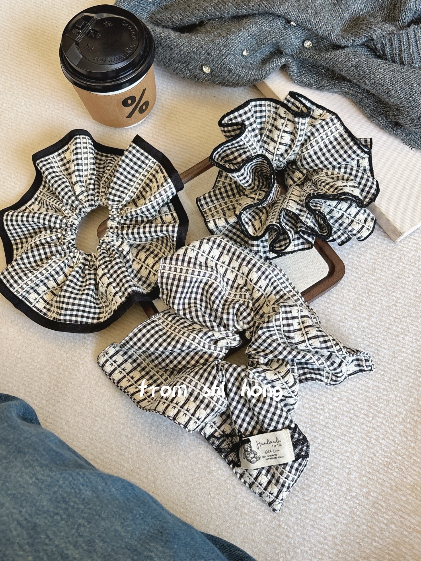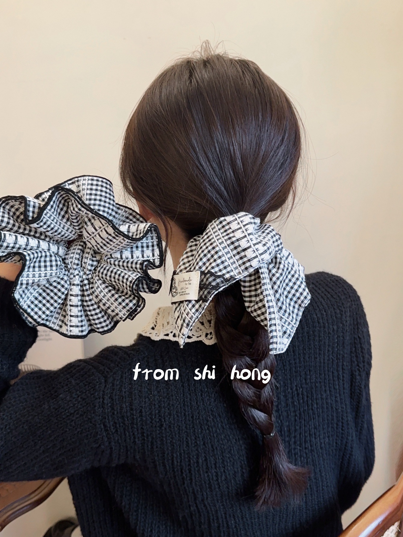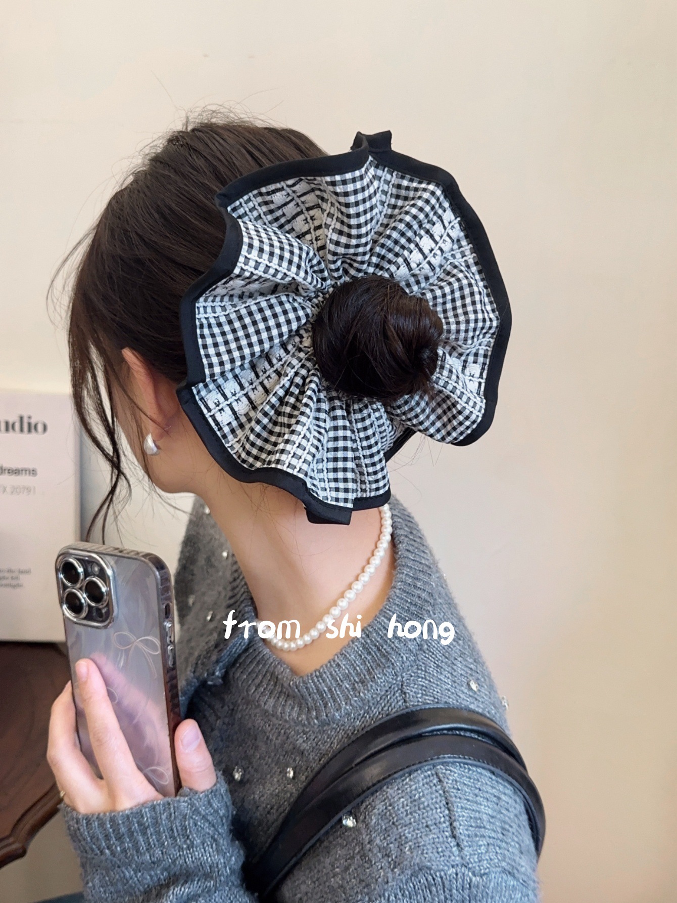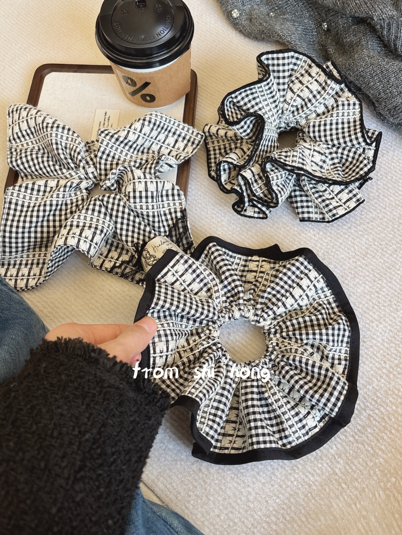 한국식 레트로 블랙과 화이트 플레이드 자수 시리즈 헤어 링 하이 레벨 센스 피치 테일 볼 헤드 타이 헤어 로프 걸스 헤어 액세서리스토어 가기