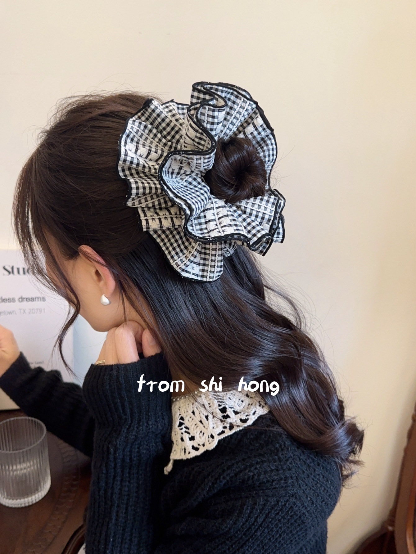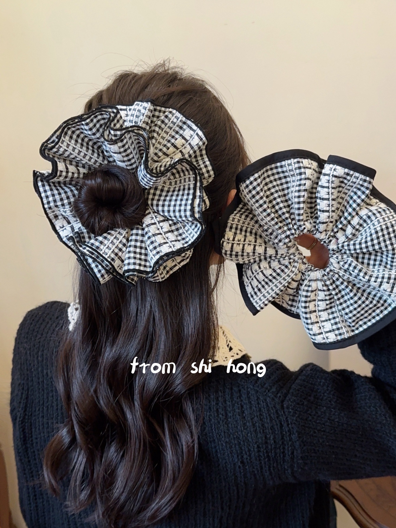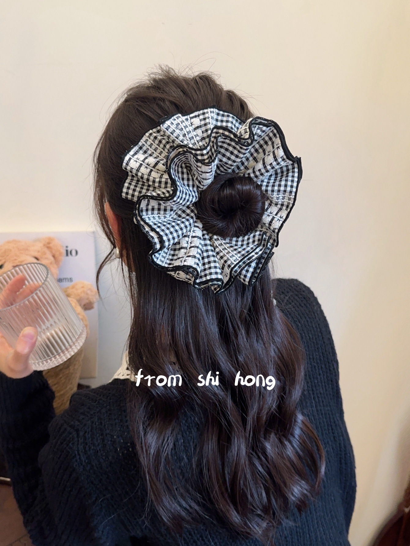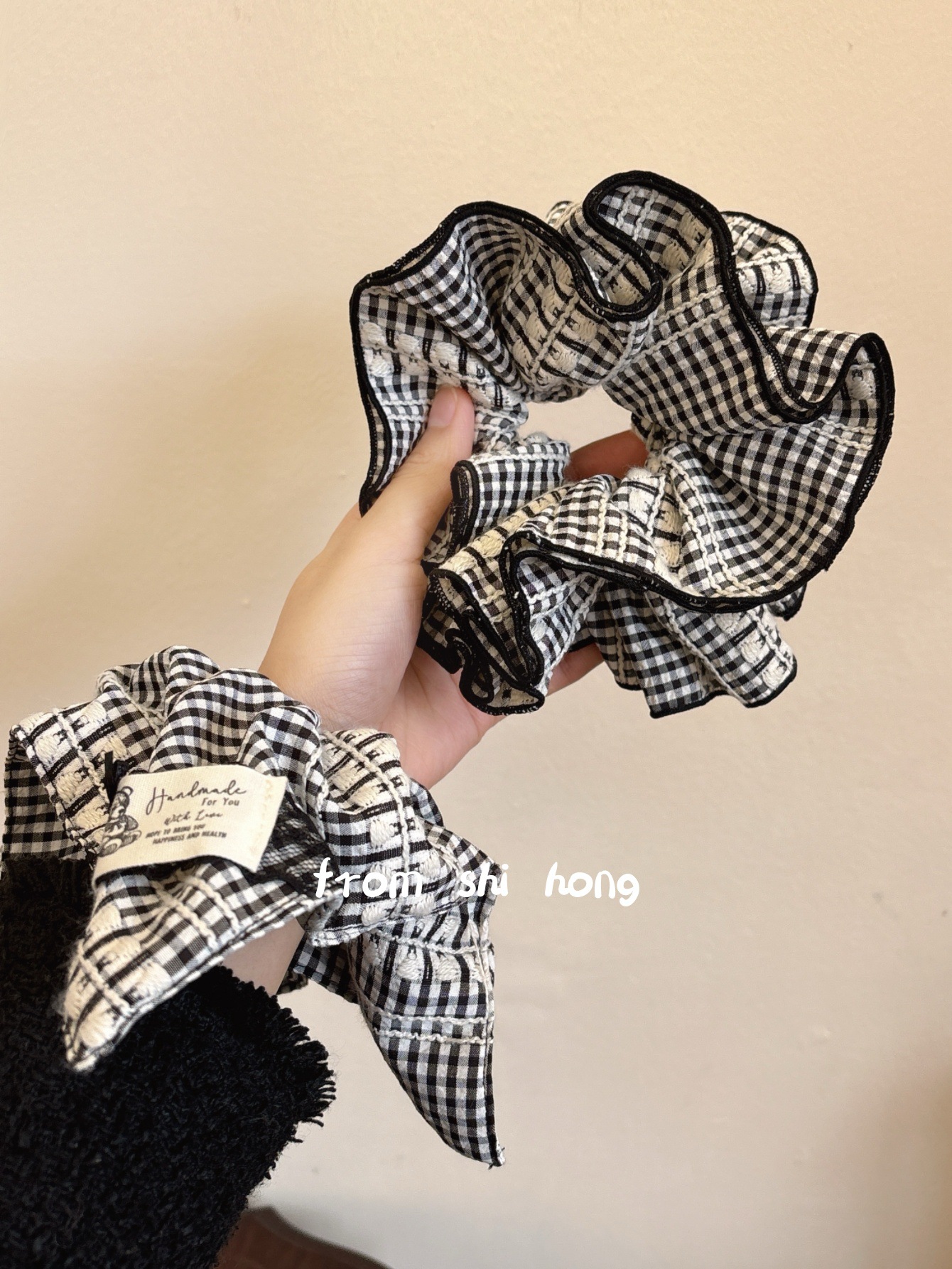 한국식 레트로 블랙과 화이트 플레이드 자수 시리즈 헤어 링 하이 레벨 센스 피치 테일 볼 헤드 타이 헤어 로프 걸스 헤어 액세서리스토어 가기