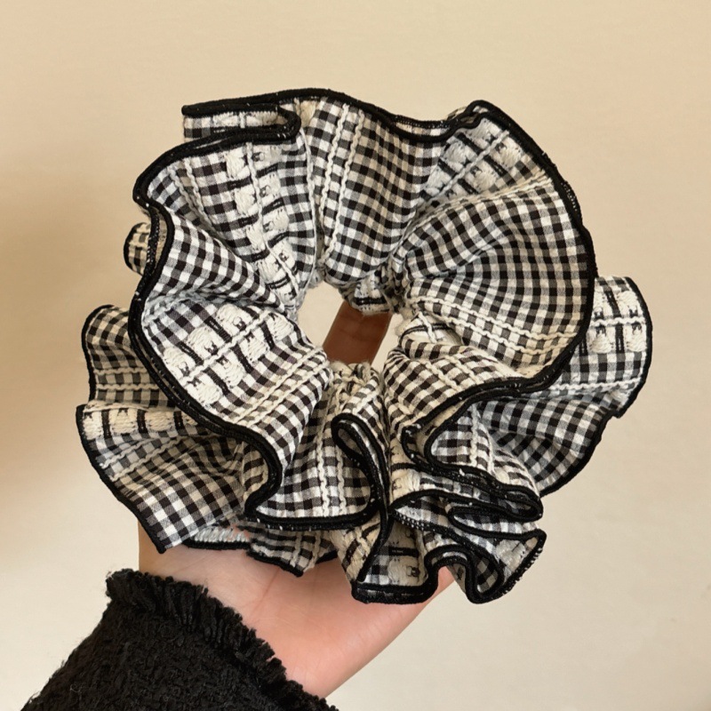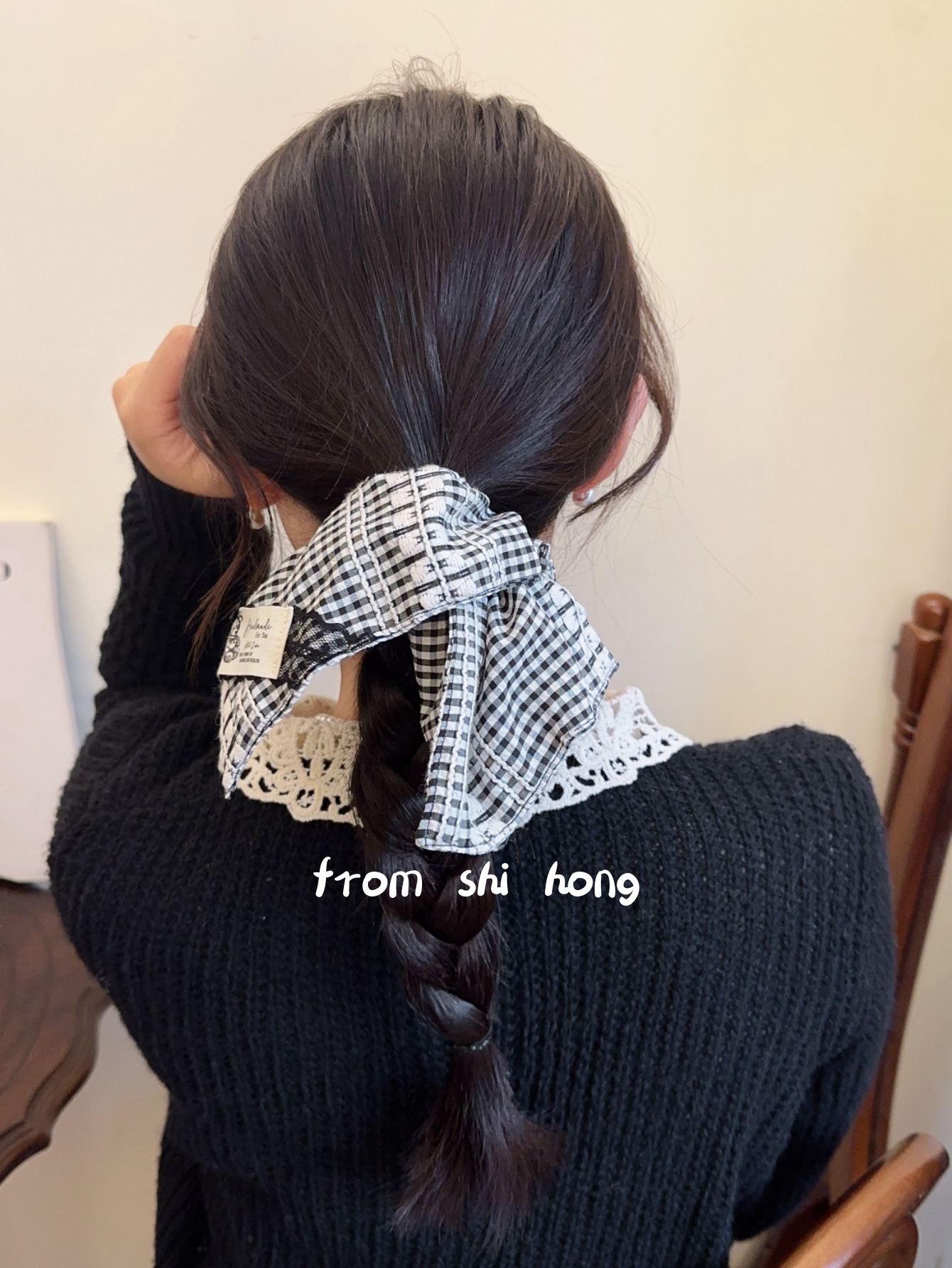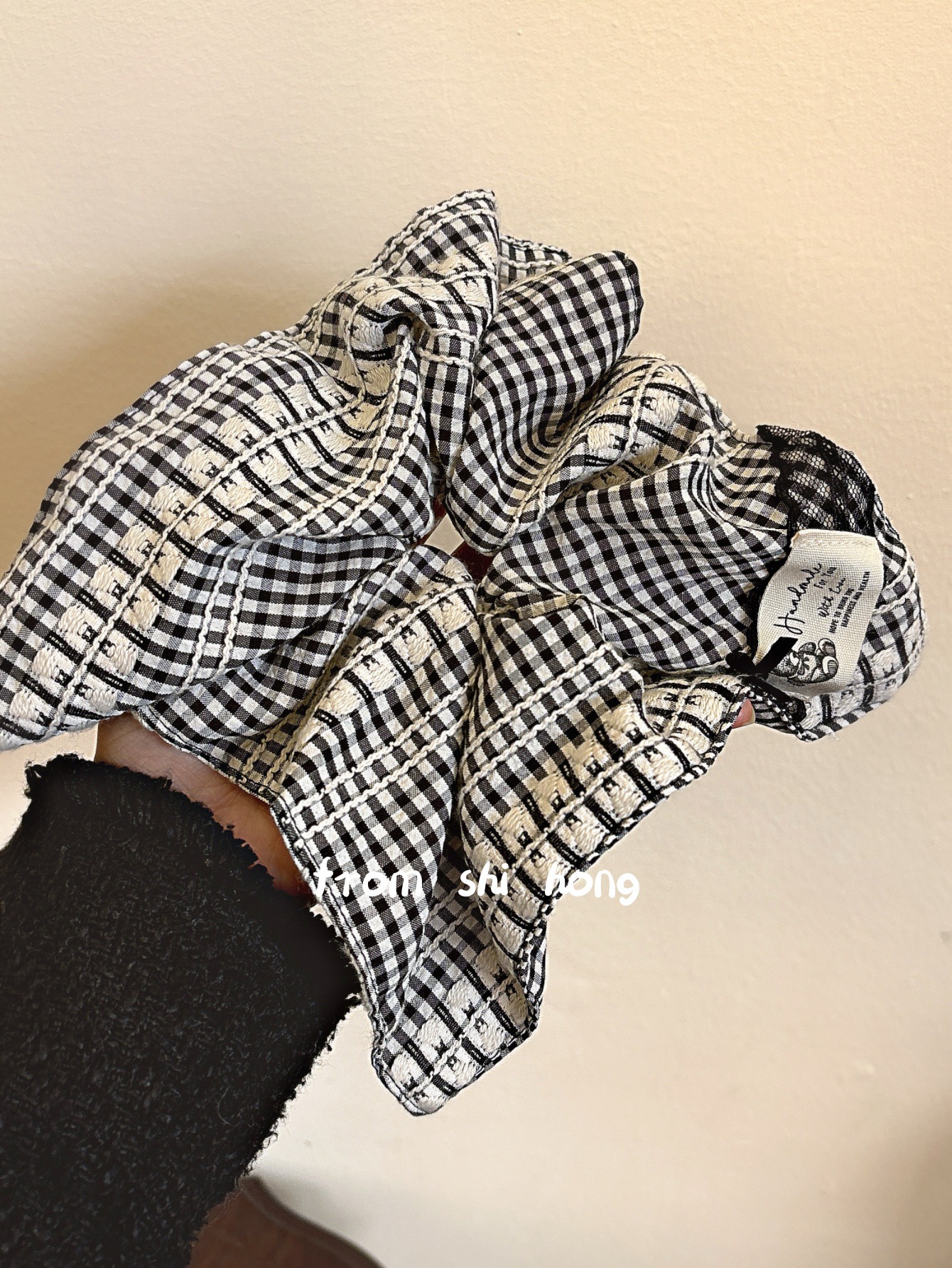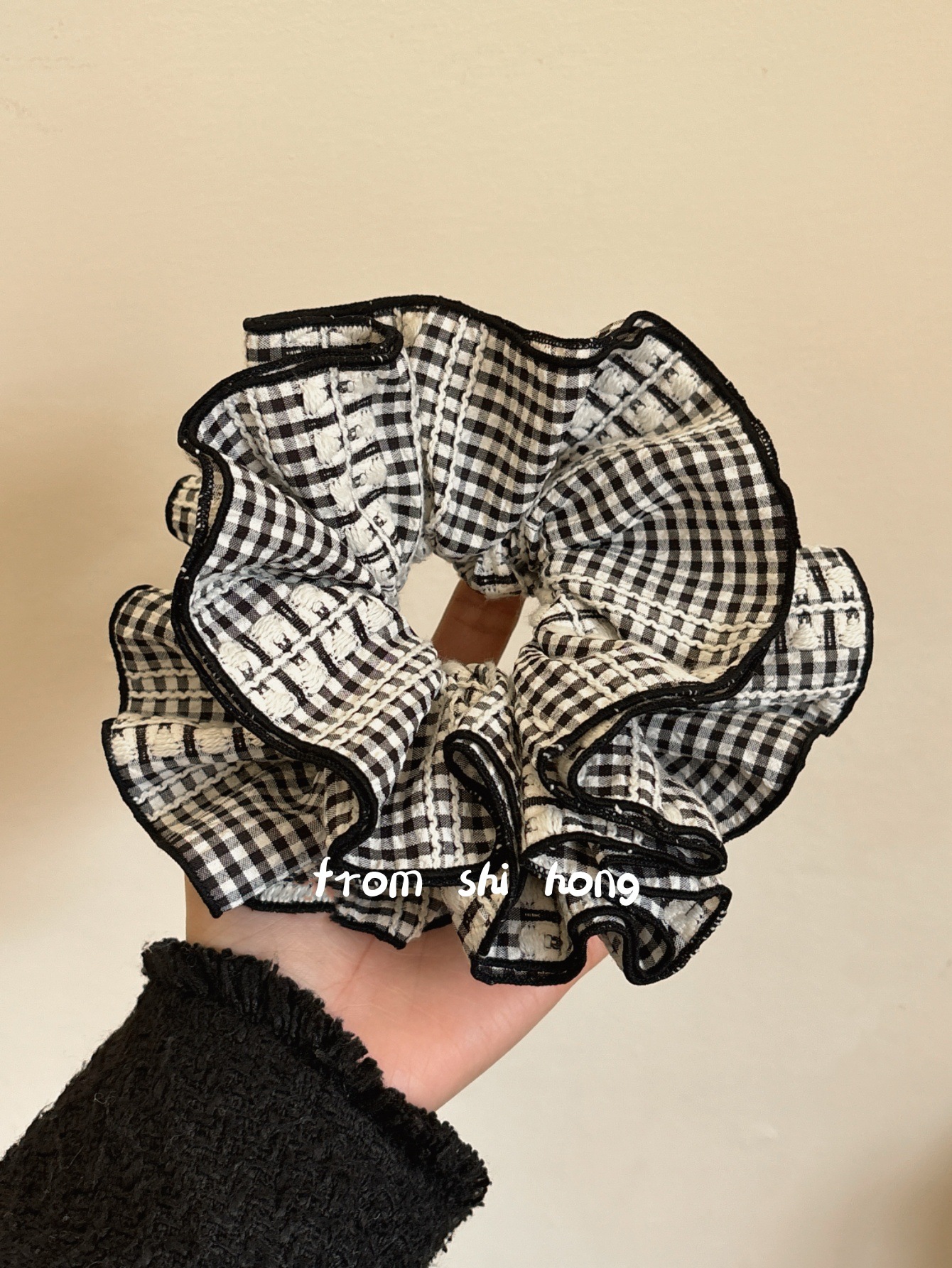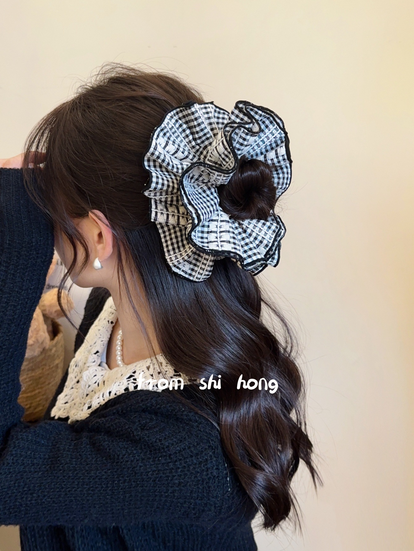 한국식 레트로 블랙과 화이트 플레이드 자수 시리즈 헤어 링 하이 레벨 센스 피치 테일 볼 헤드 타이 헤어 로프 걸스 헤어 액세서리스토어 가기