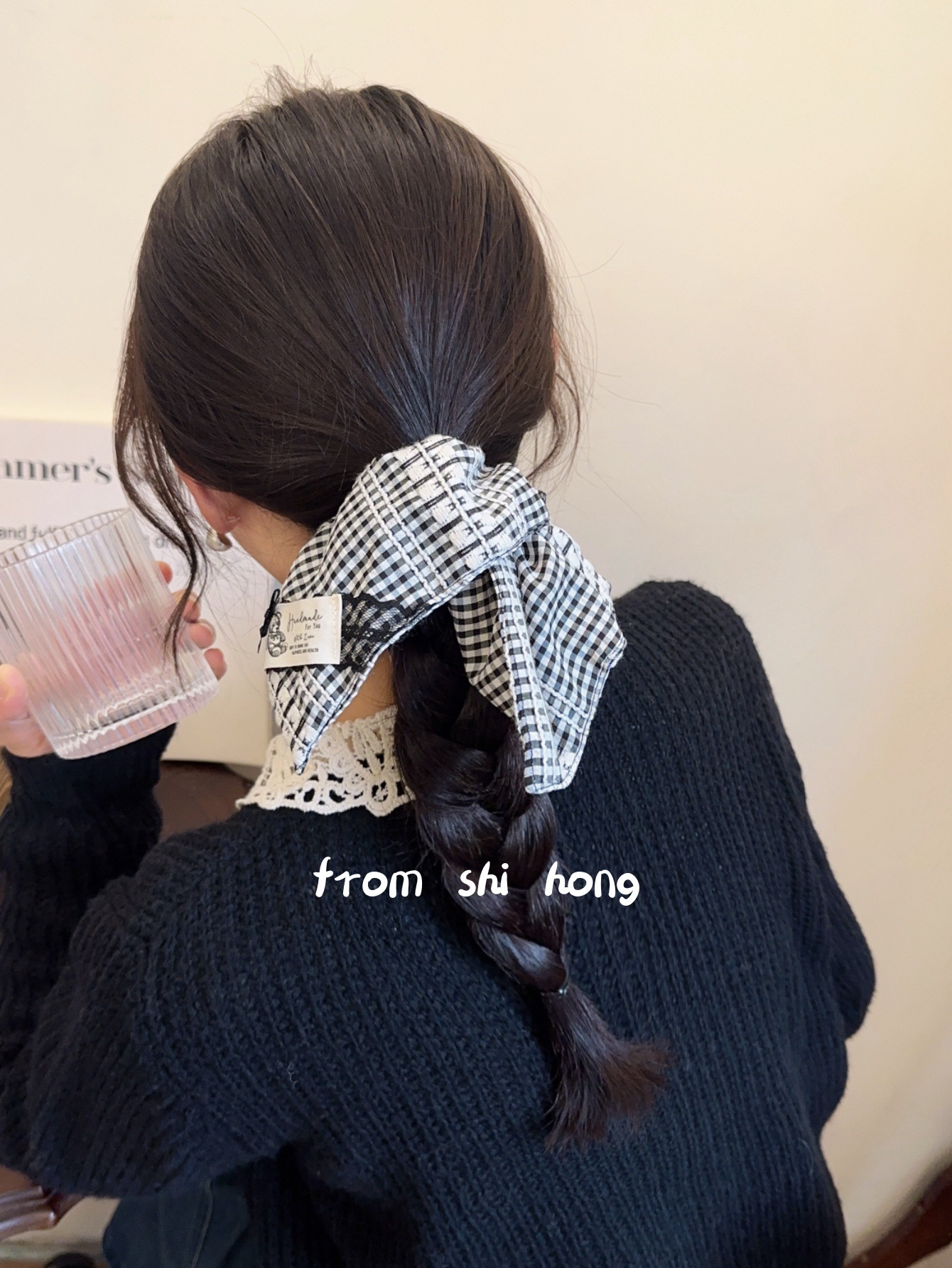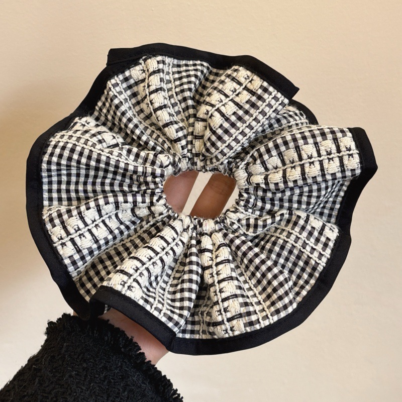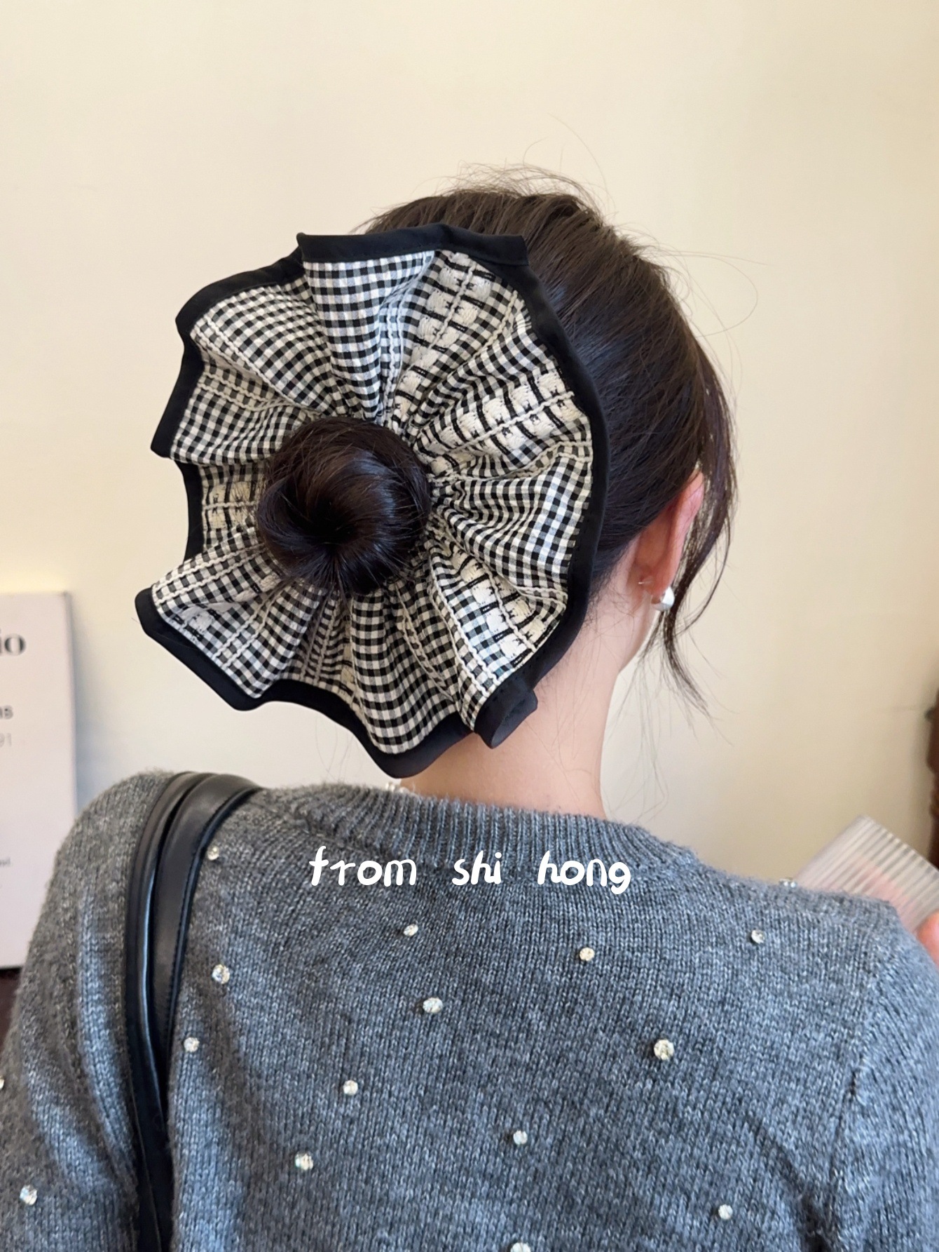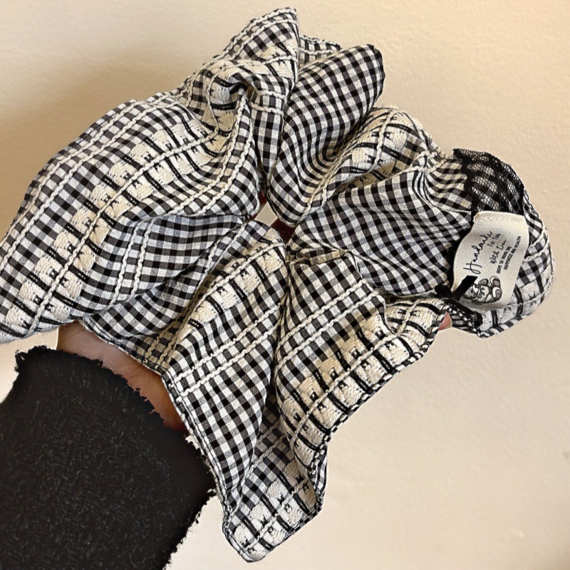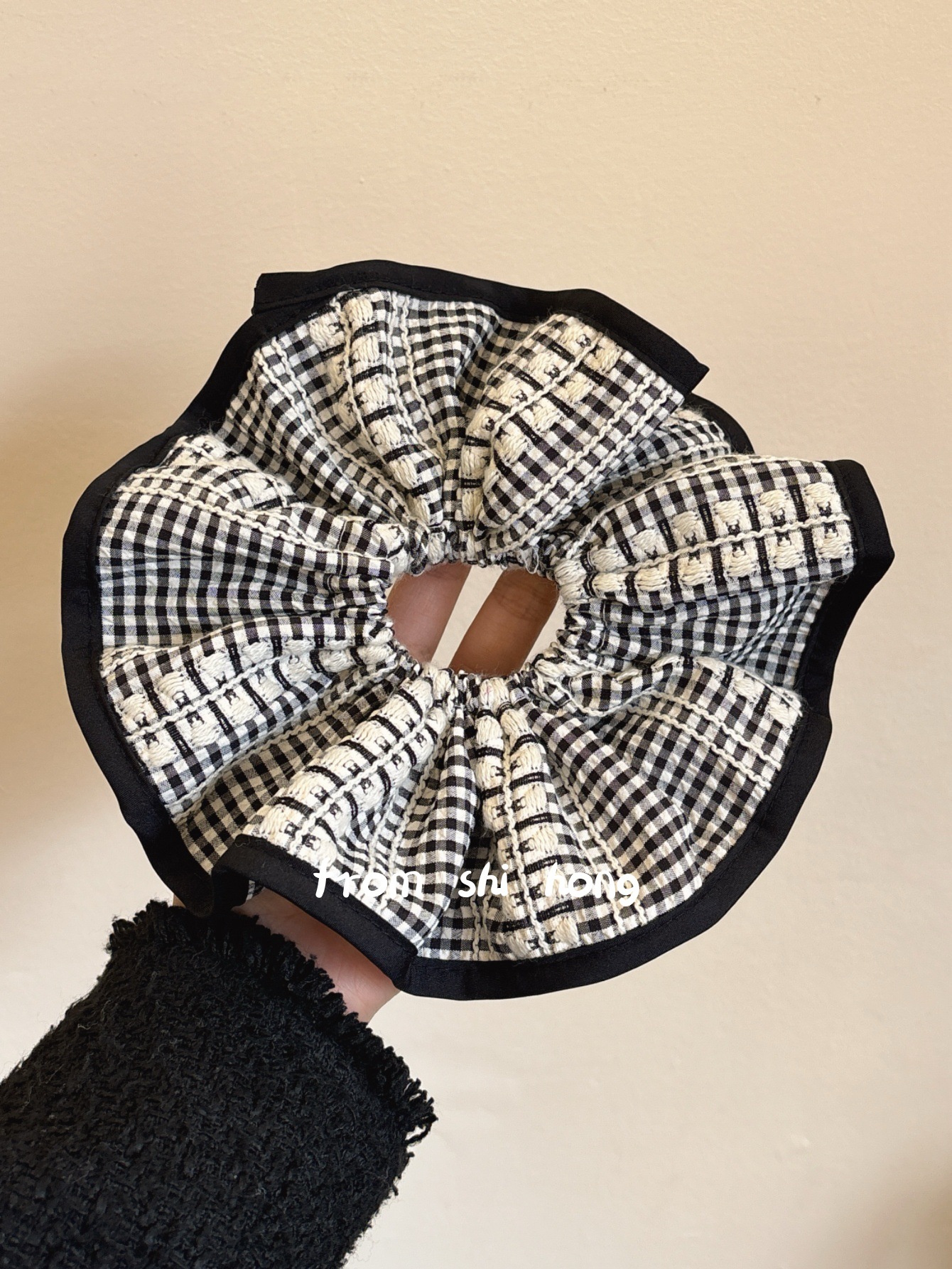 한국식 레트로 블랙과 화이트 플레이드 자수 시리즈 헤어 링 하이 레벨 센스 피치 테일 볼 헤드 타이 헤어 로프 걸스 헤어 액세서리스토어 가기